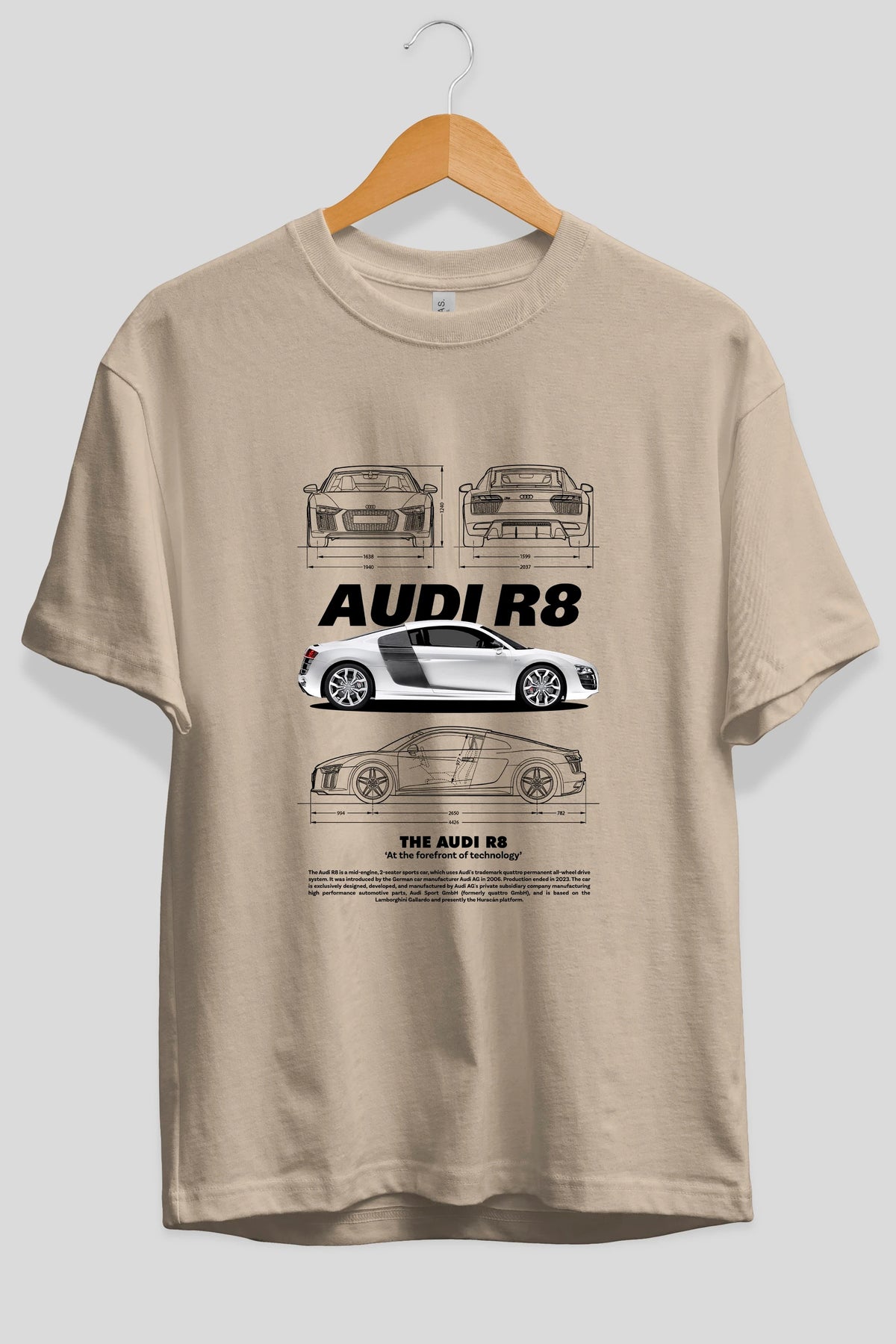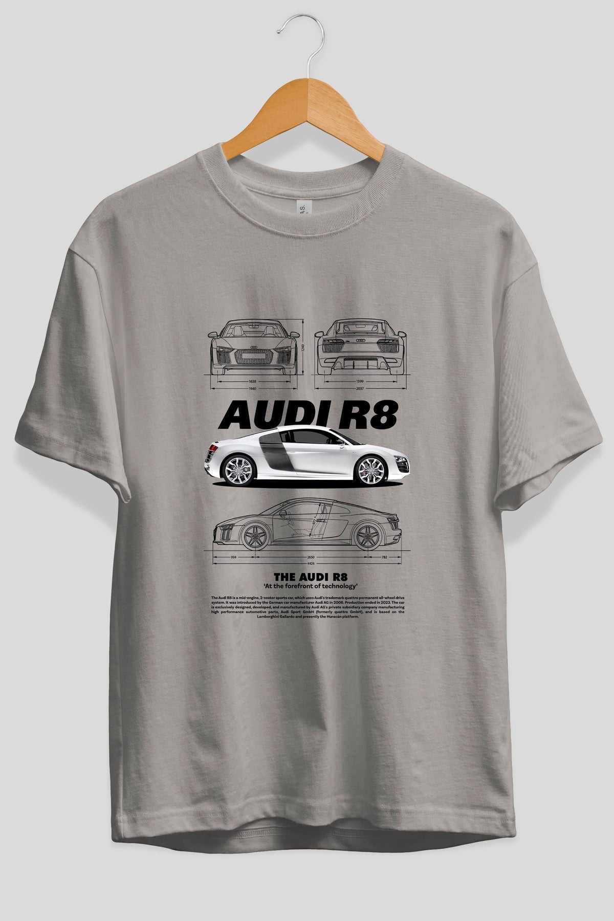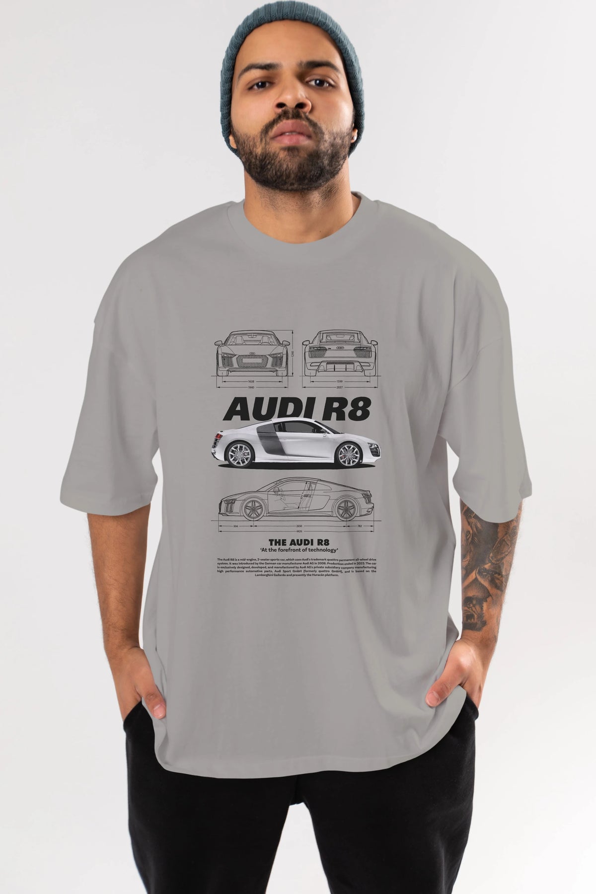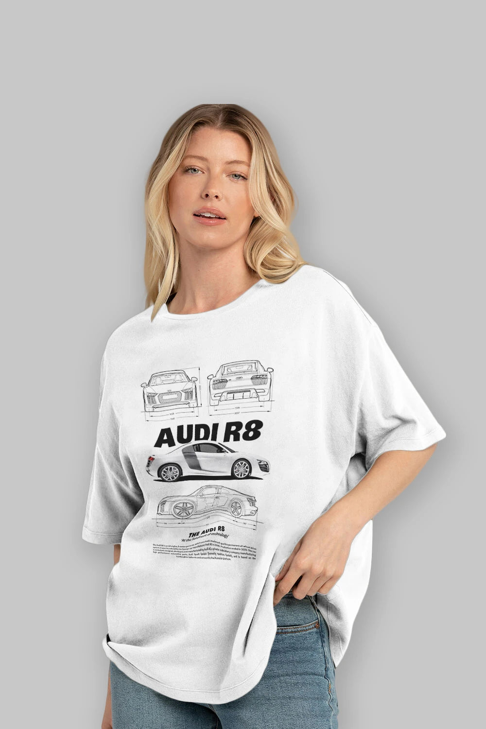 AUDI R8 Ön Baskılı Oversize t-shirt Erkek Kadın Unisex %100 Pamuk Bisiklet Yaka tişort