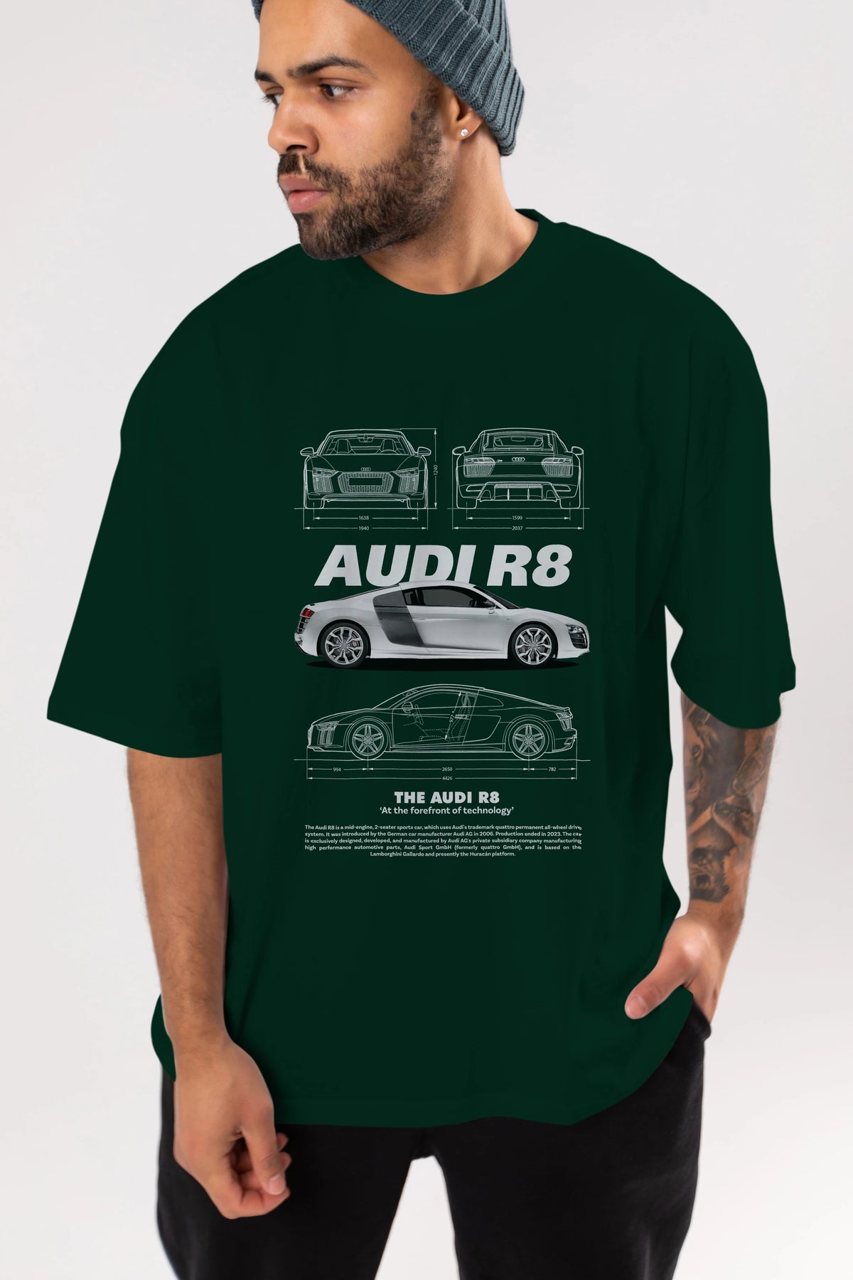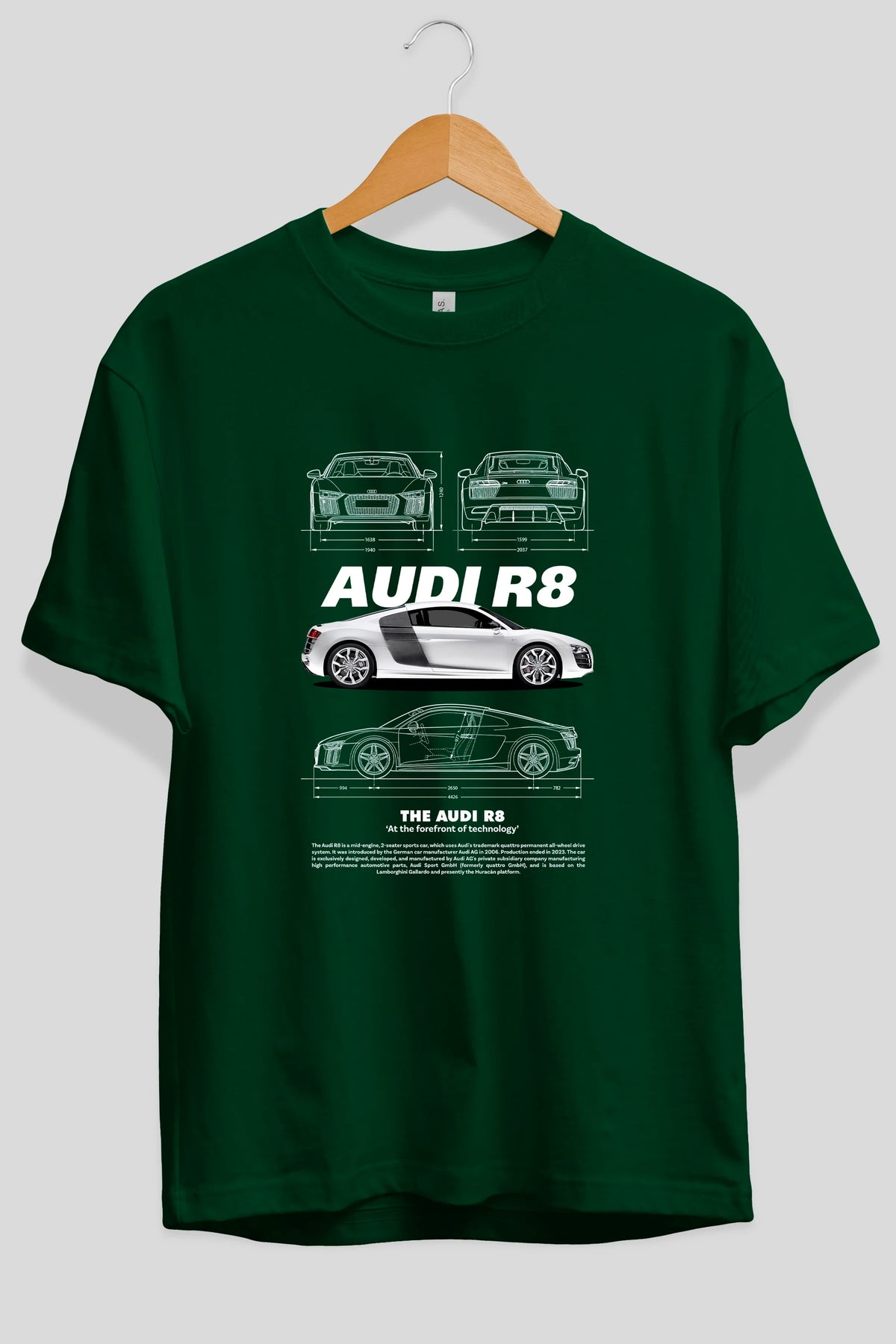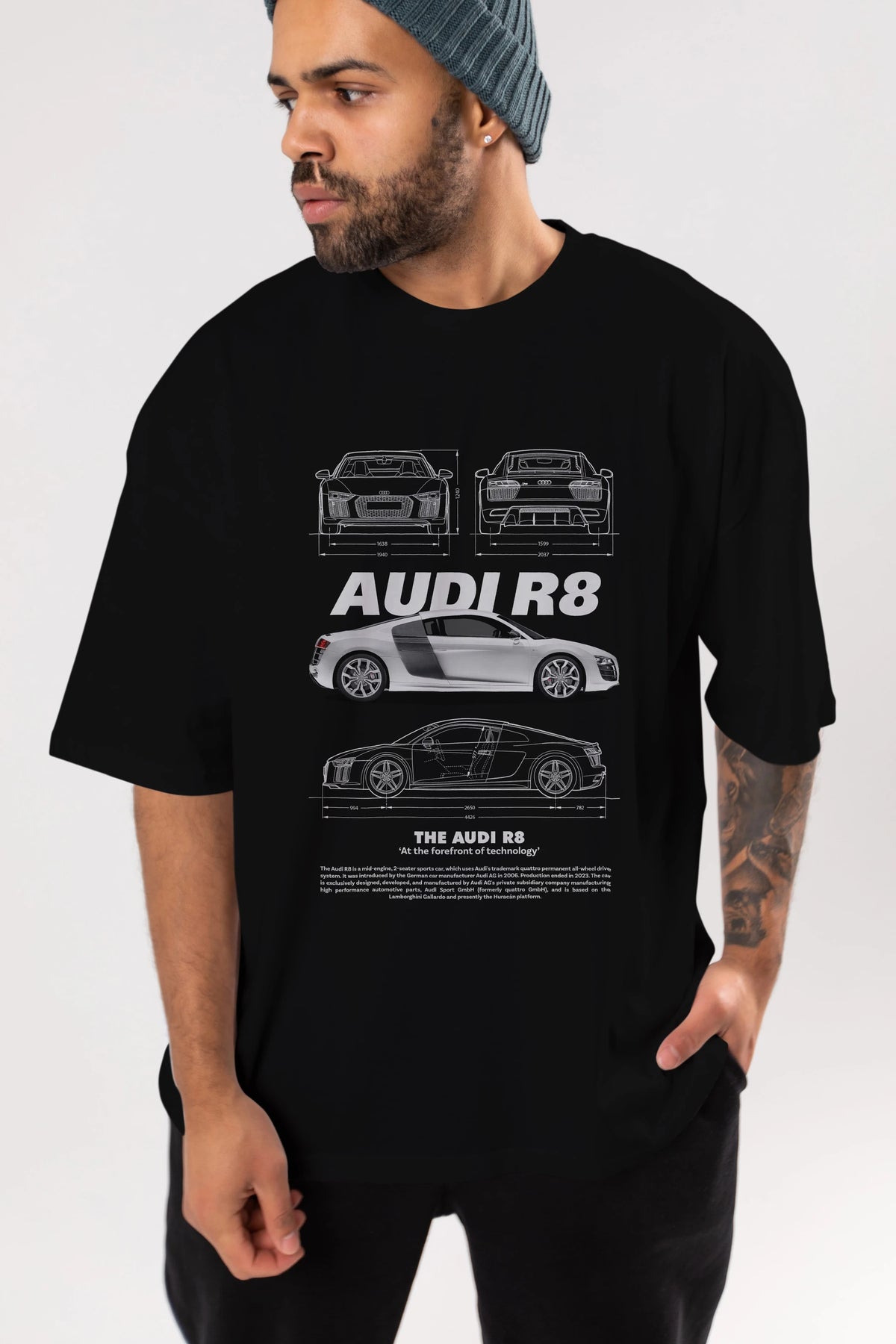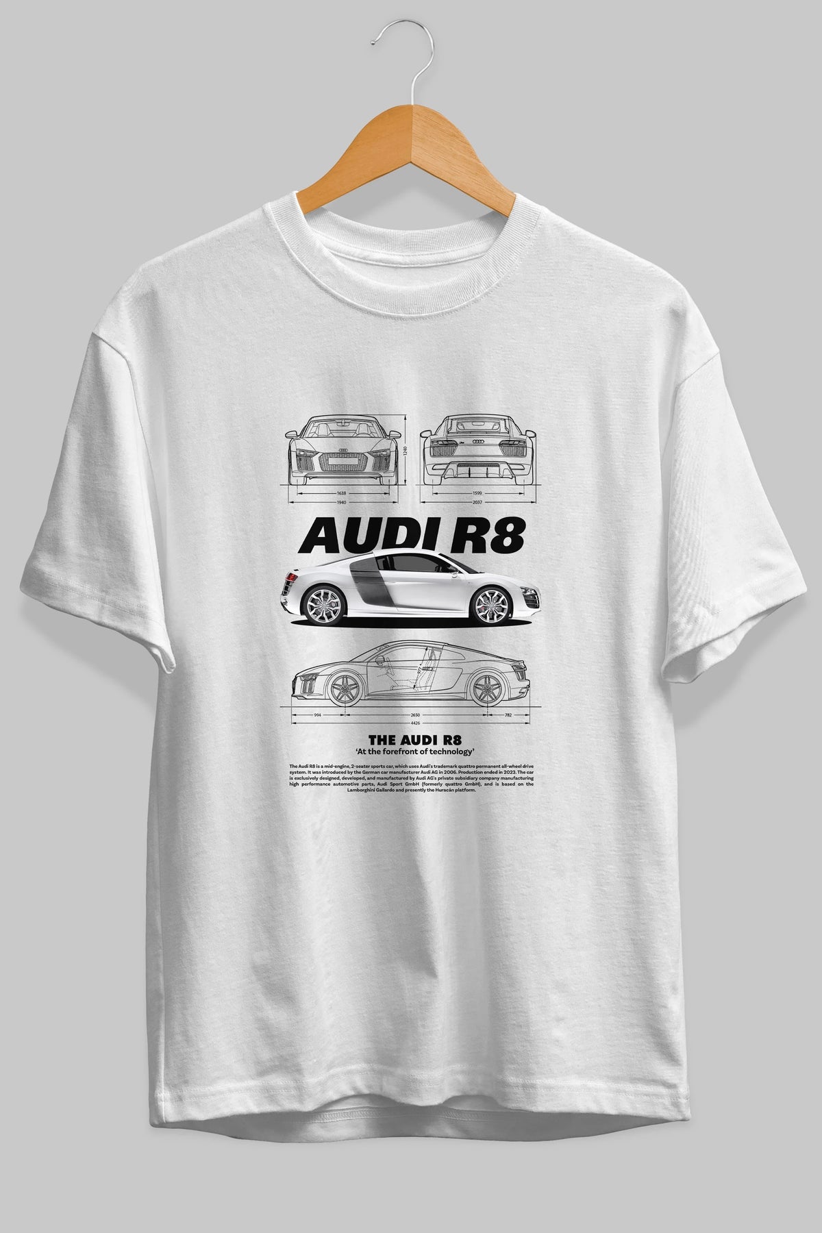 AUDI R8 Ön Baskılı Oversize t-shirt Erkek Kadın Unisex %100 Pamuk Bisiklet Yaka tişort