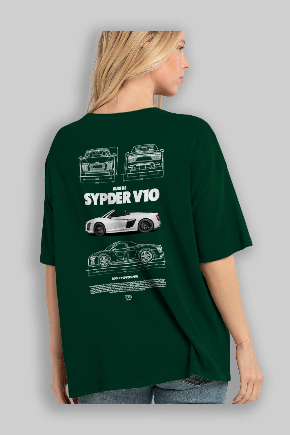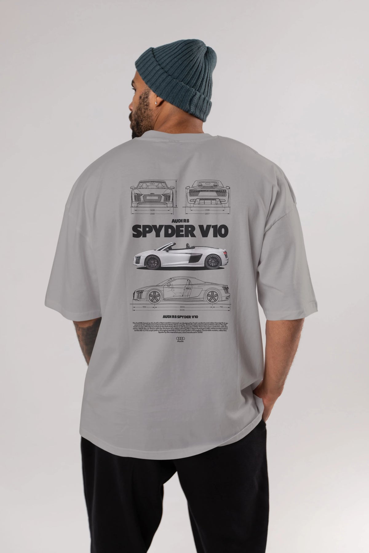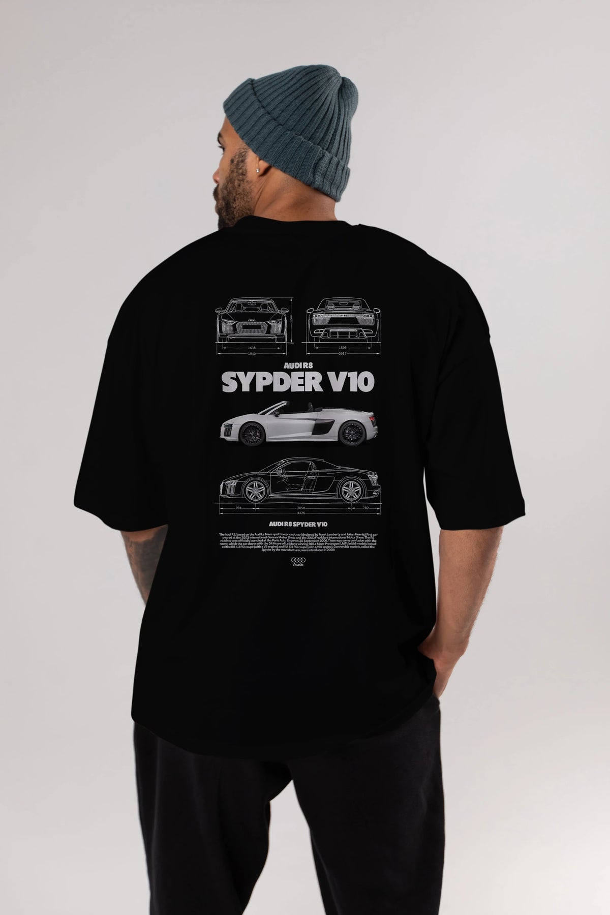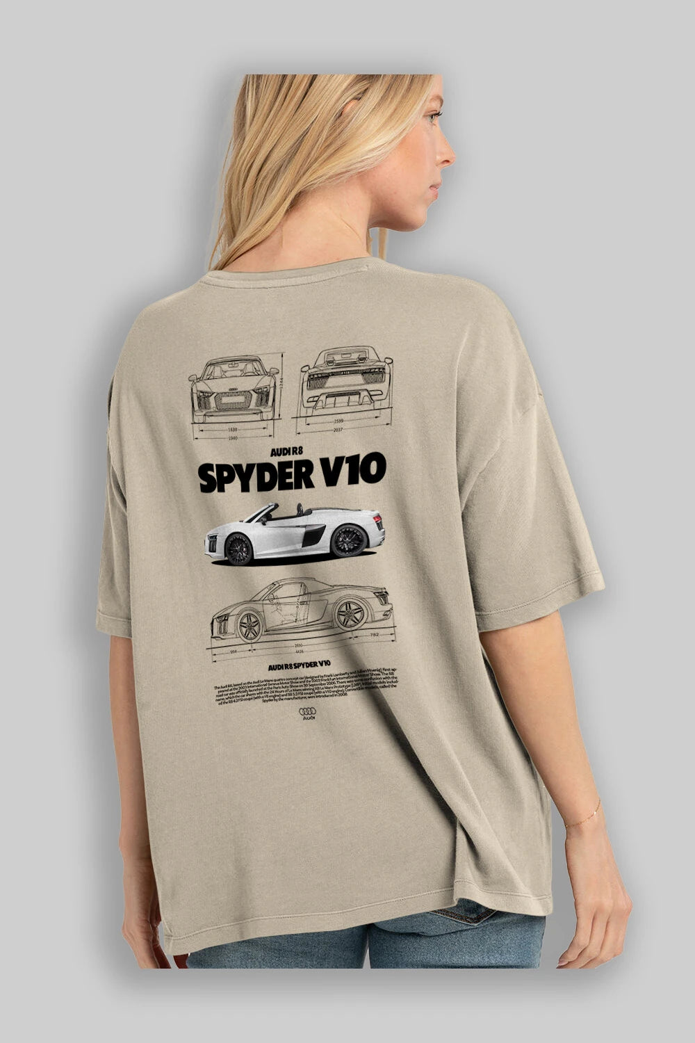 Audi R8 SPYDER Arka Baskılı Oversize t-shirt Erkek Kadın Unisex %100 Pamuk Bisiklet Yaka tişort