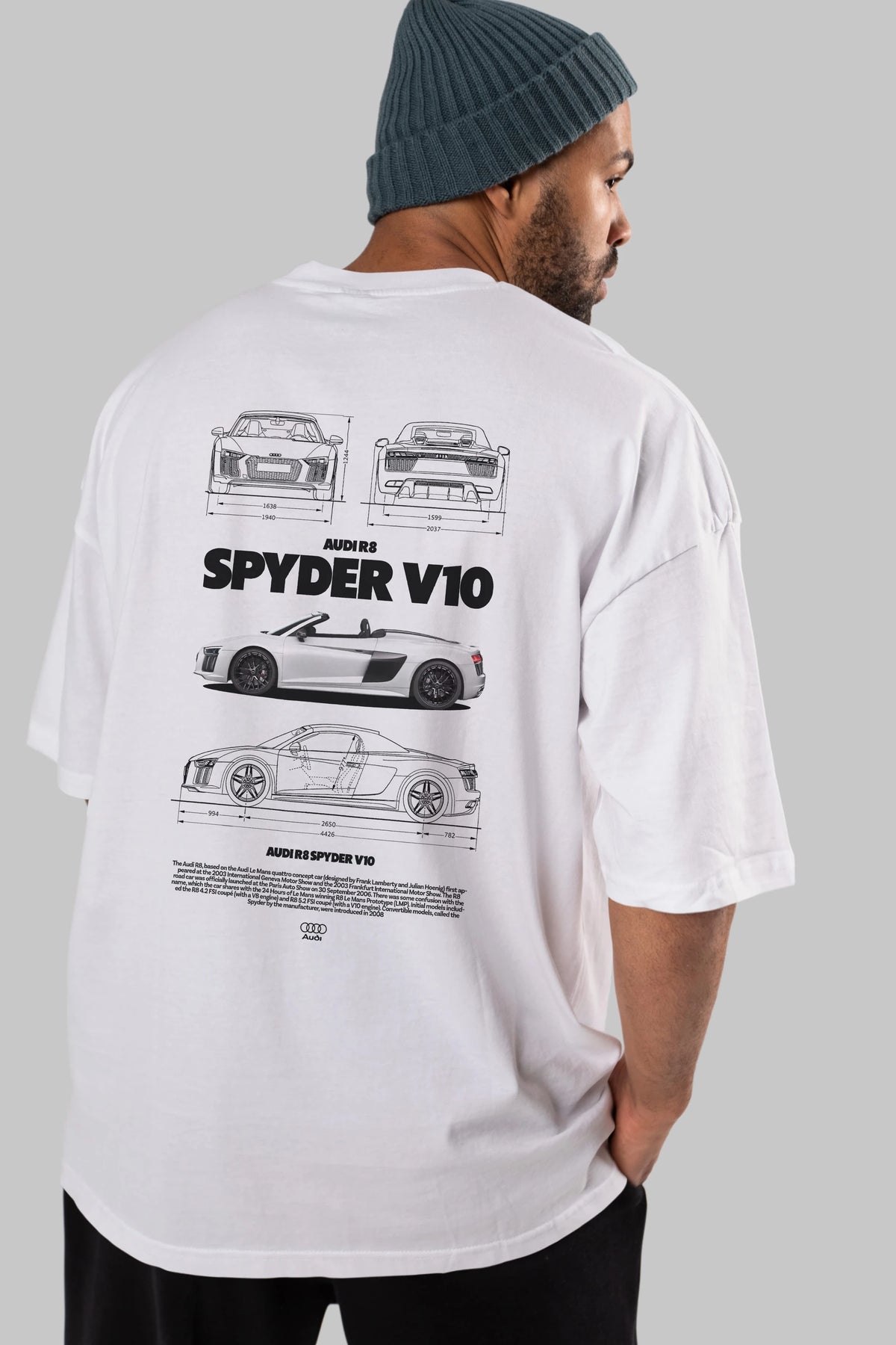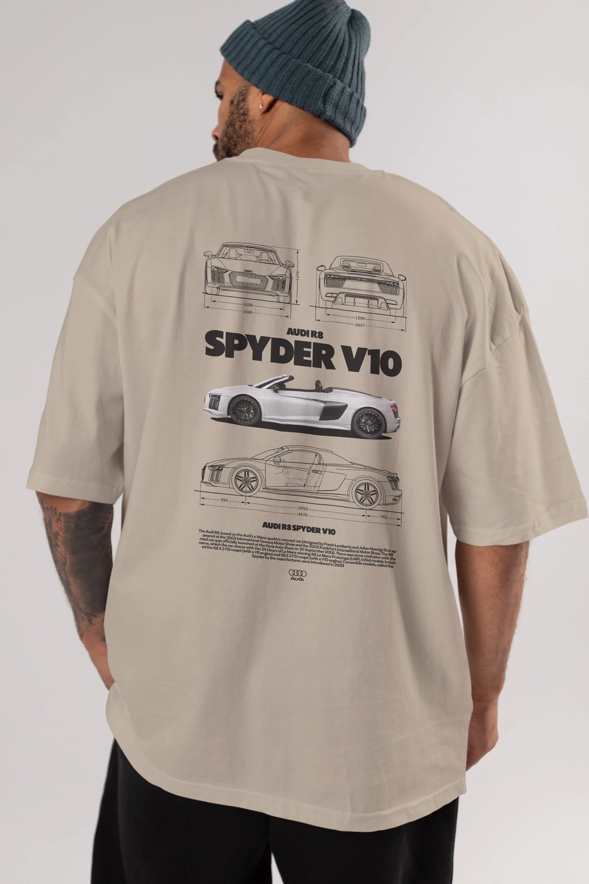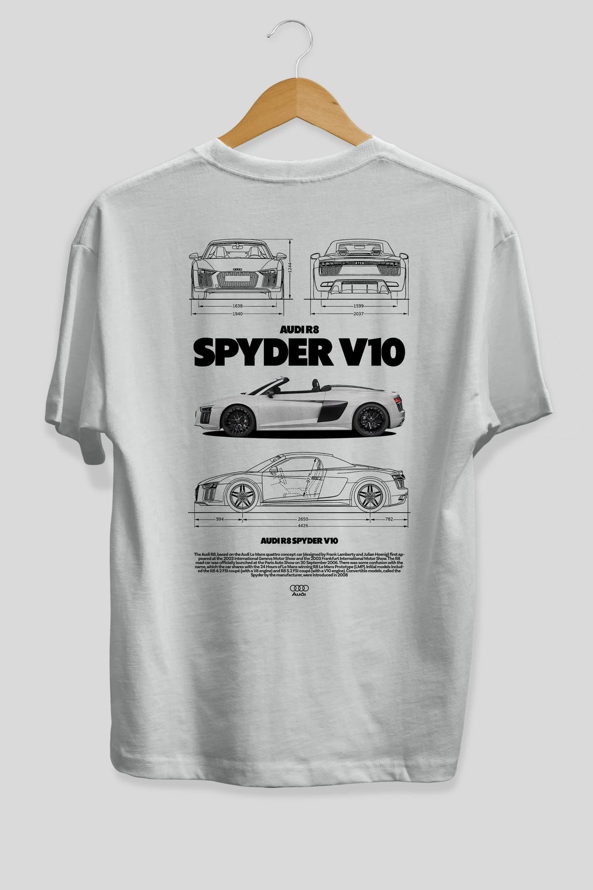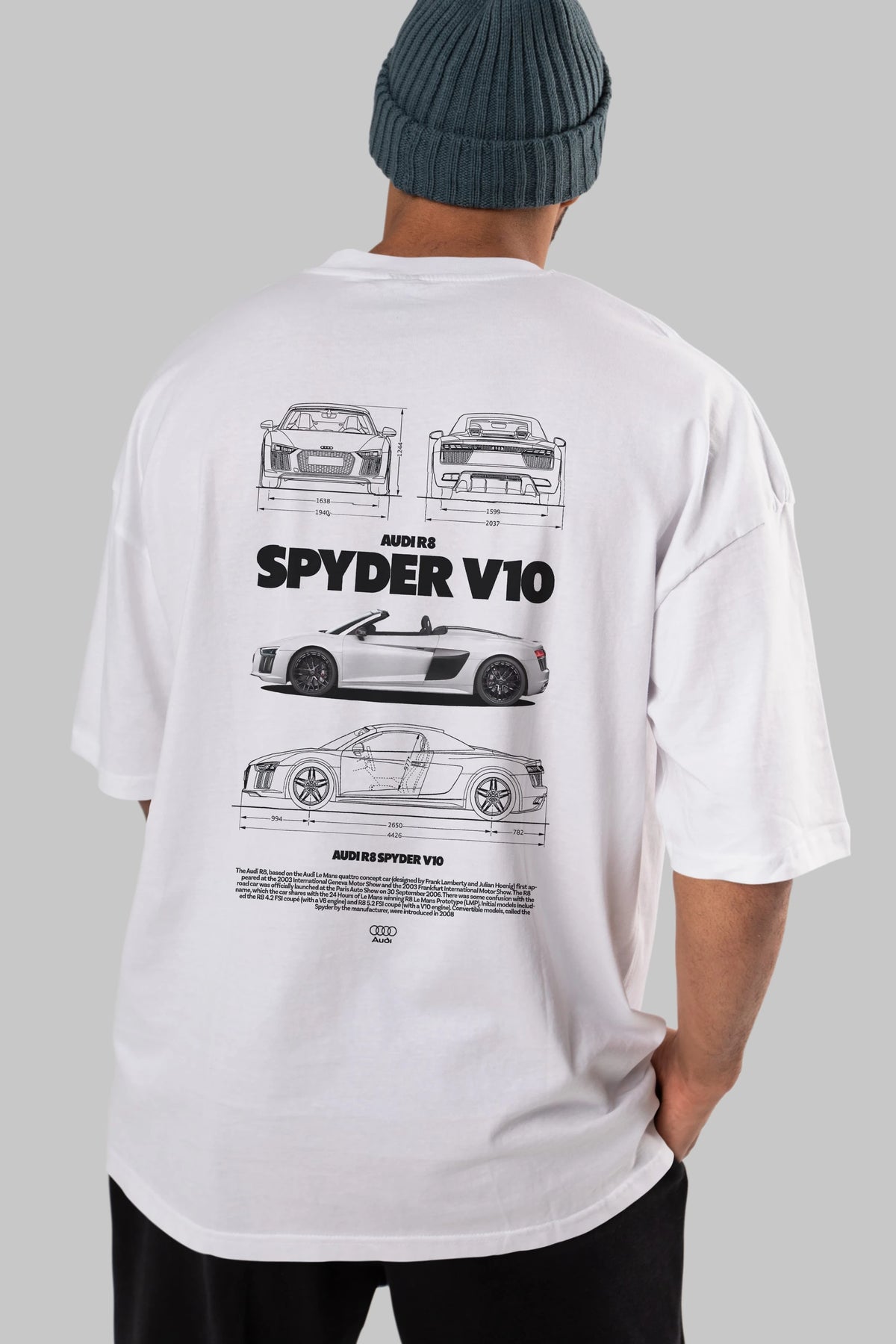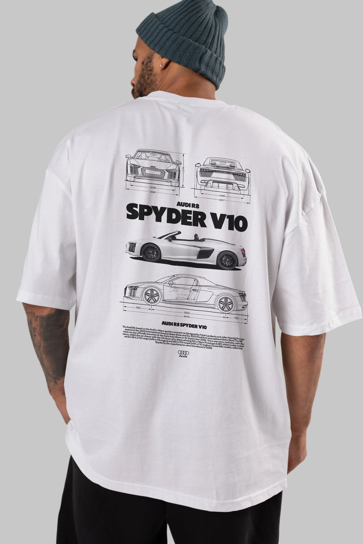 Audi R8 SPYDER Arka Baskılı Oversize t-shirt Erkek Kadın Unisex %100 Pamuk Bisiklet Yaka tişort