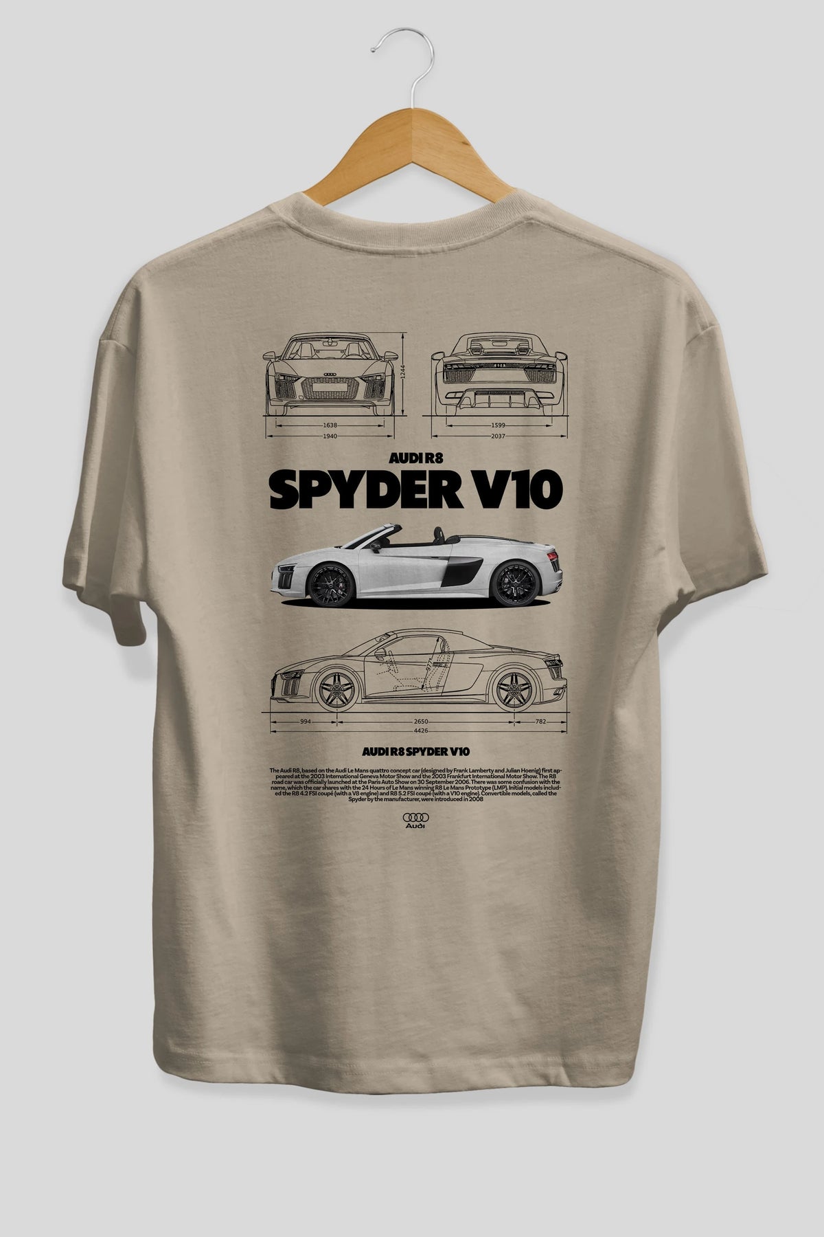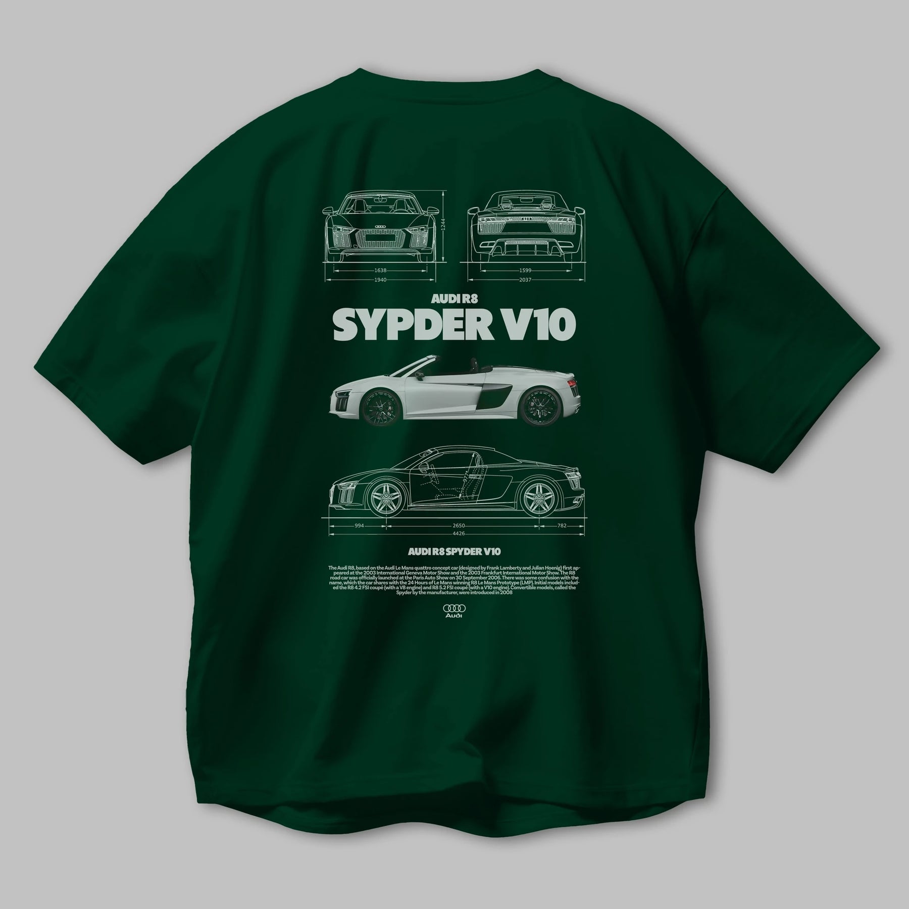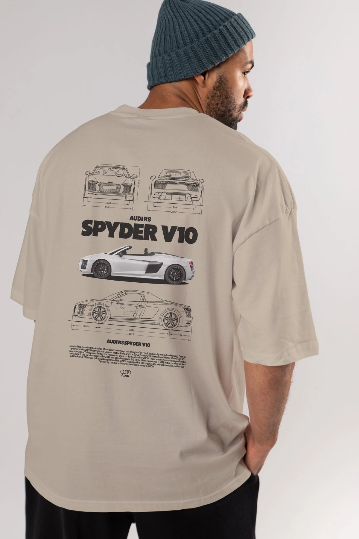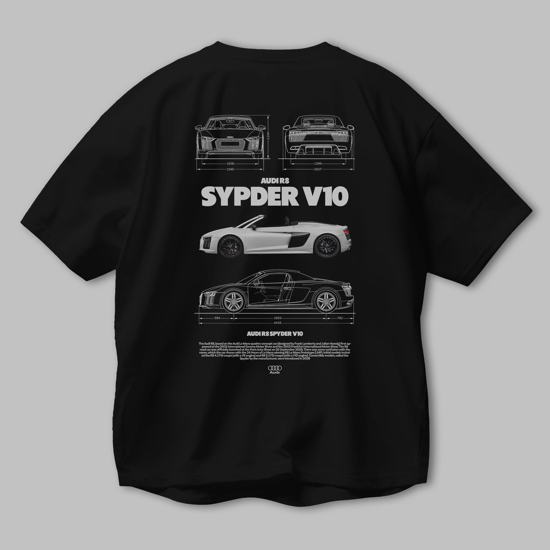 Audi R8 SPYDER Arka Baskılı Oversize t-shirt Erkek Kadın Unisex %100 Pamuk Bisiklet Yaka tişort