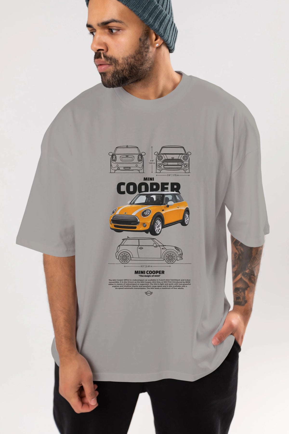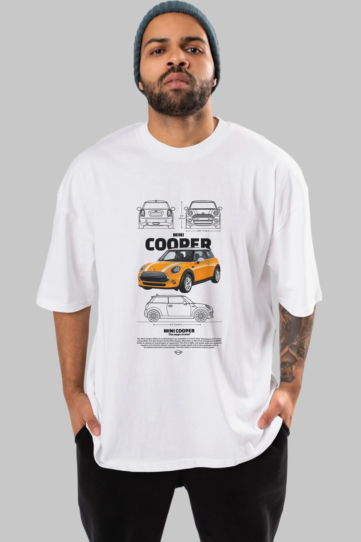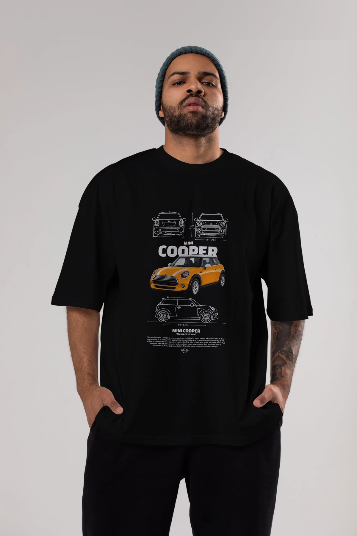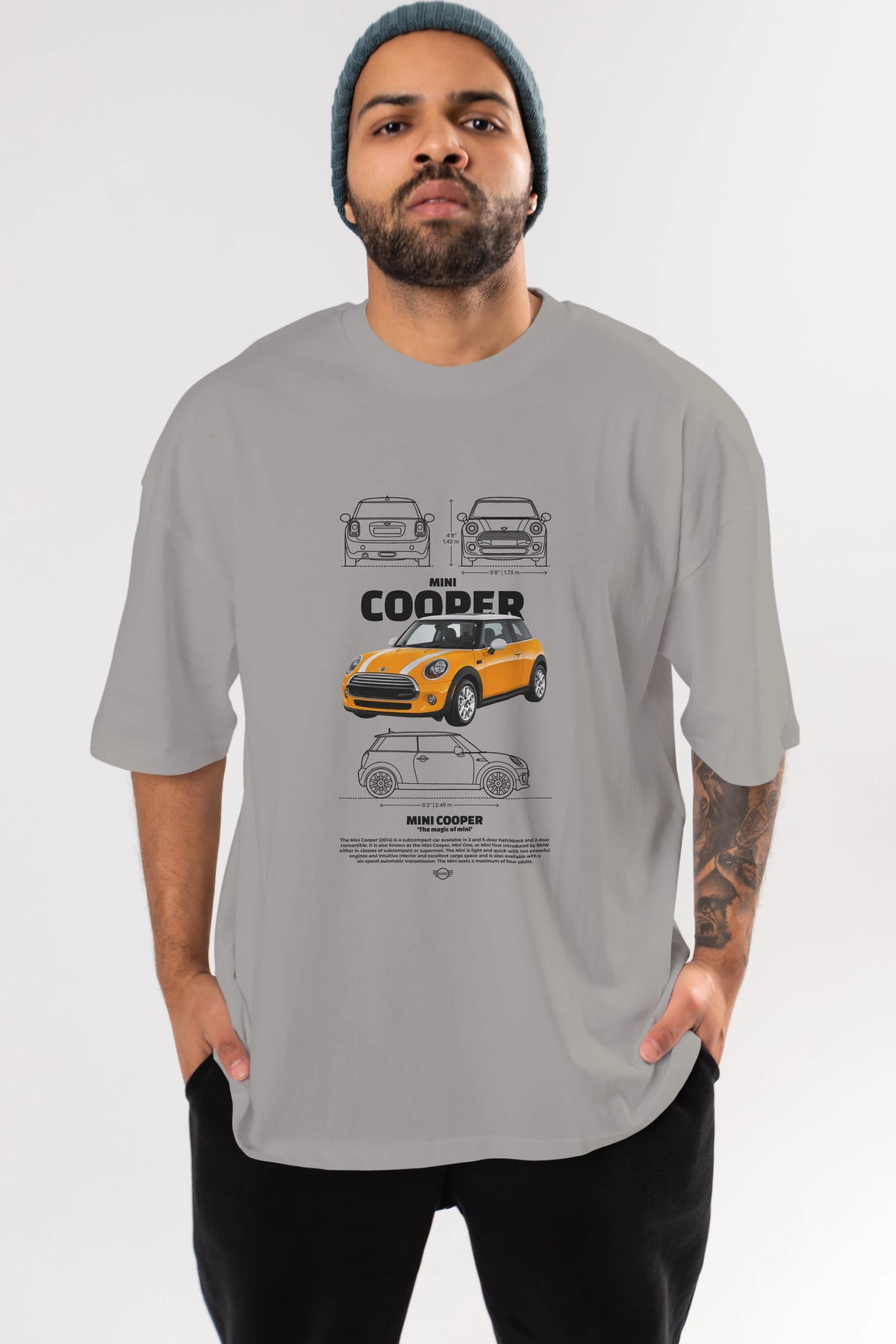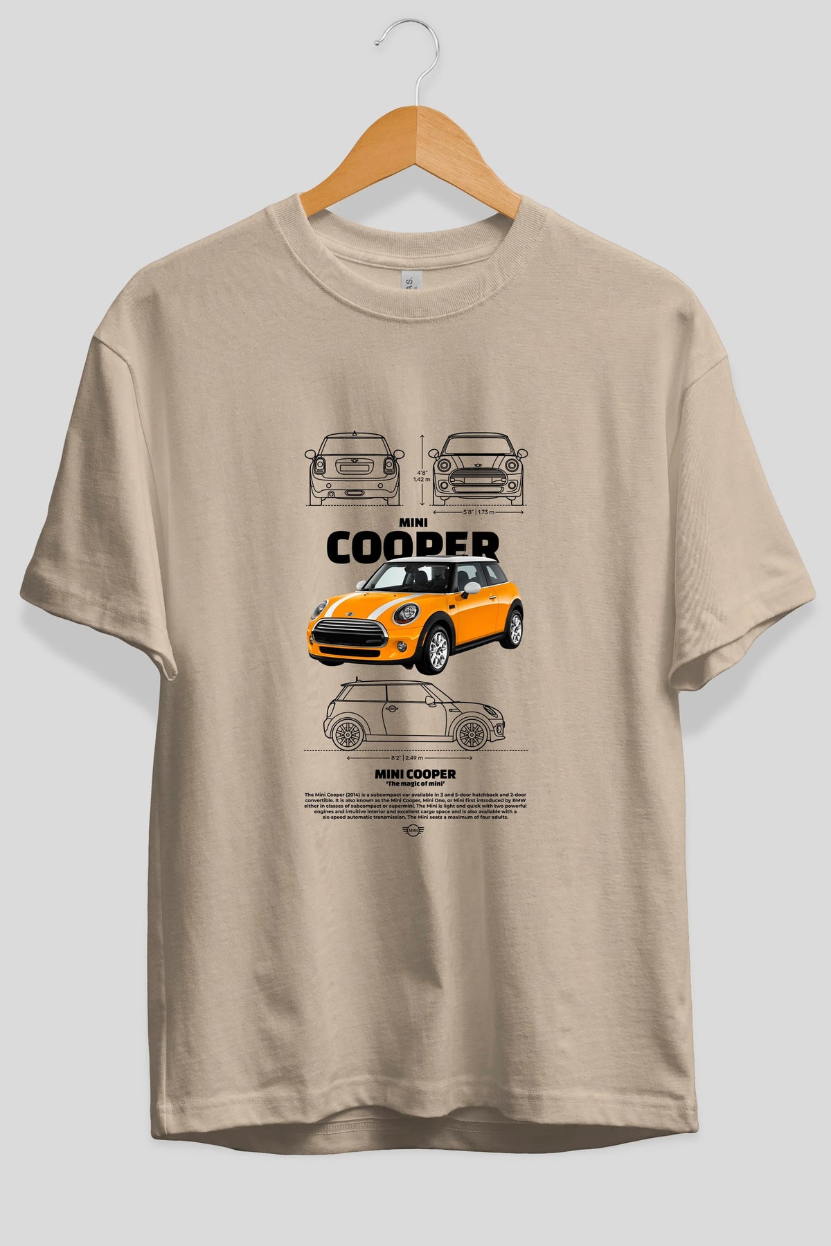 MINI COOPER 1 Ön Baskılı Oversize t-shirt Erkek Kadın Unisex %100 Pamuk Bisiklet Yaka tişort