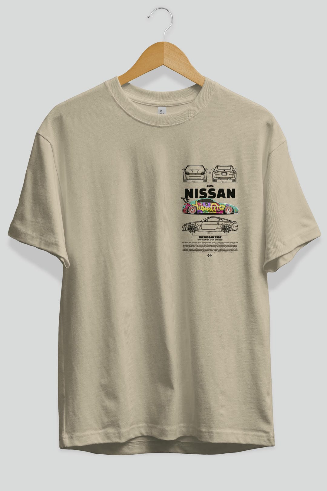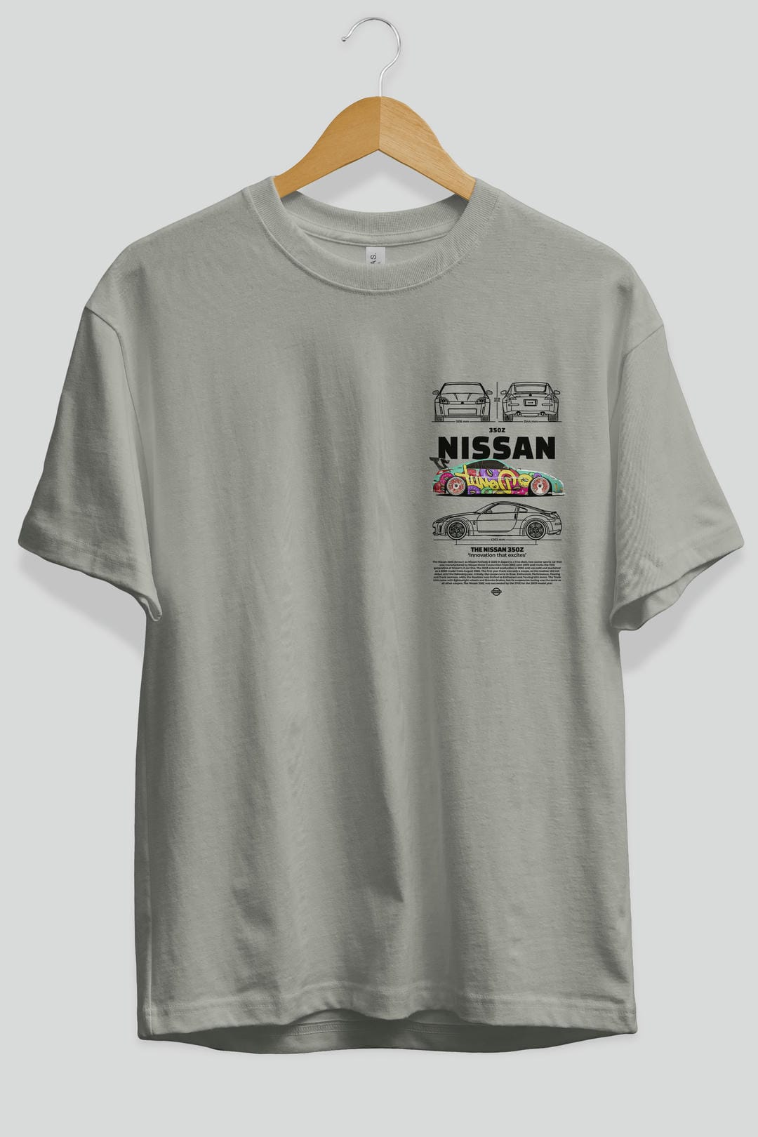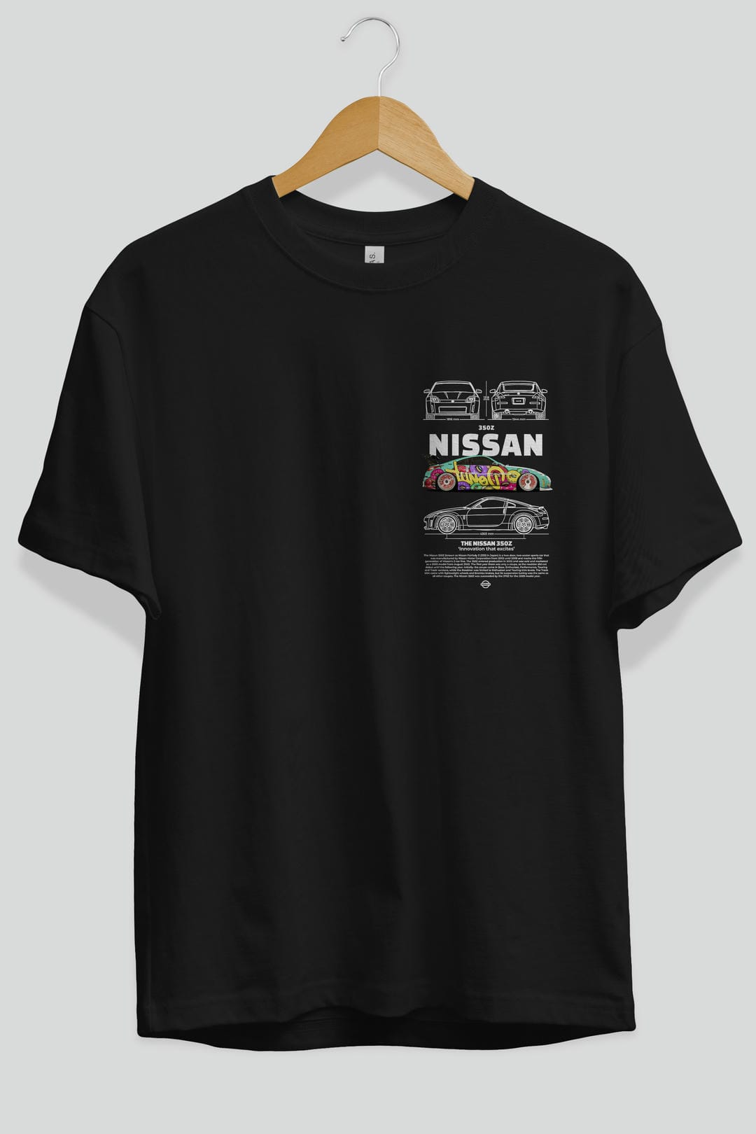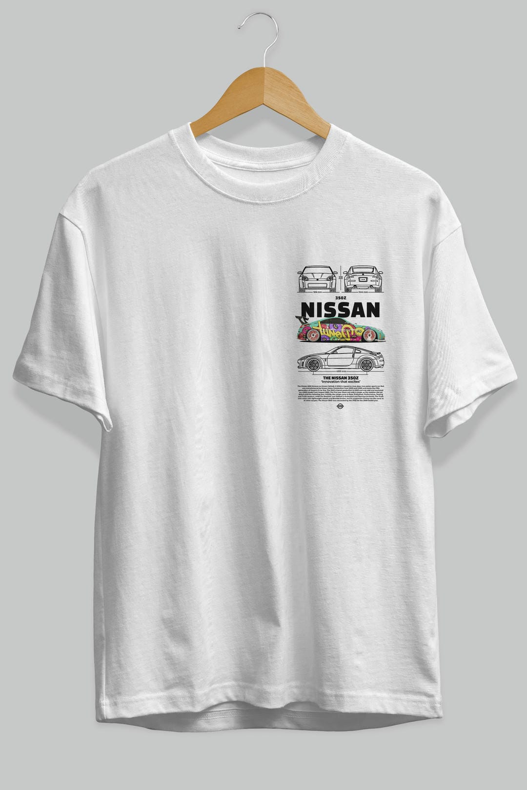 Nissan 350Z 3 Ön Sol Baskılı Oversize t-shirt Erkek Kadın Unisex %100 Pamuk Bisiklet Yaka tişort