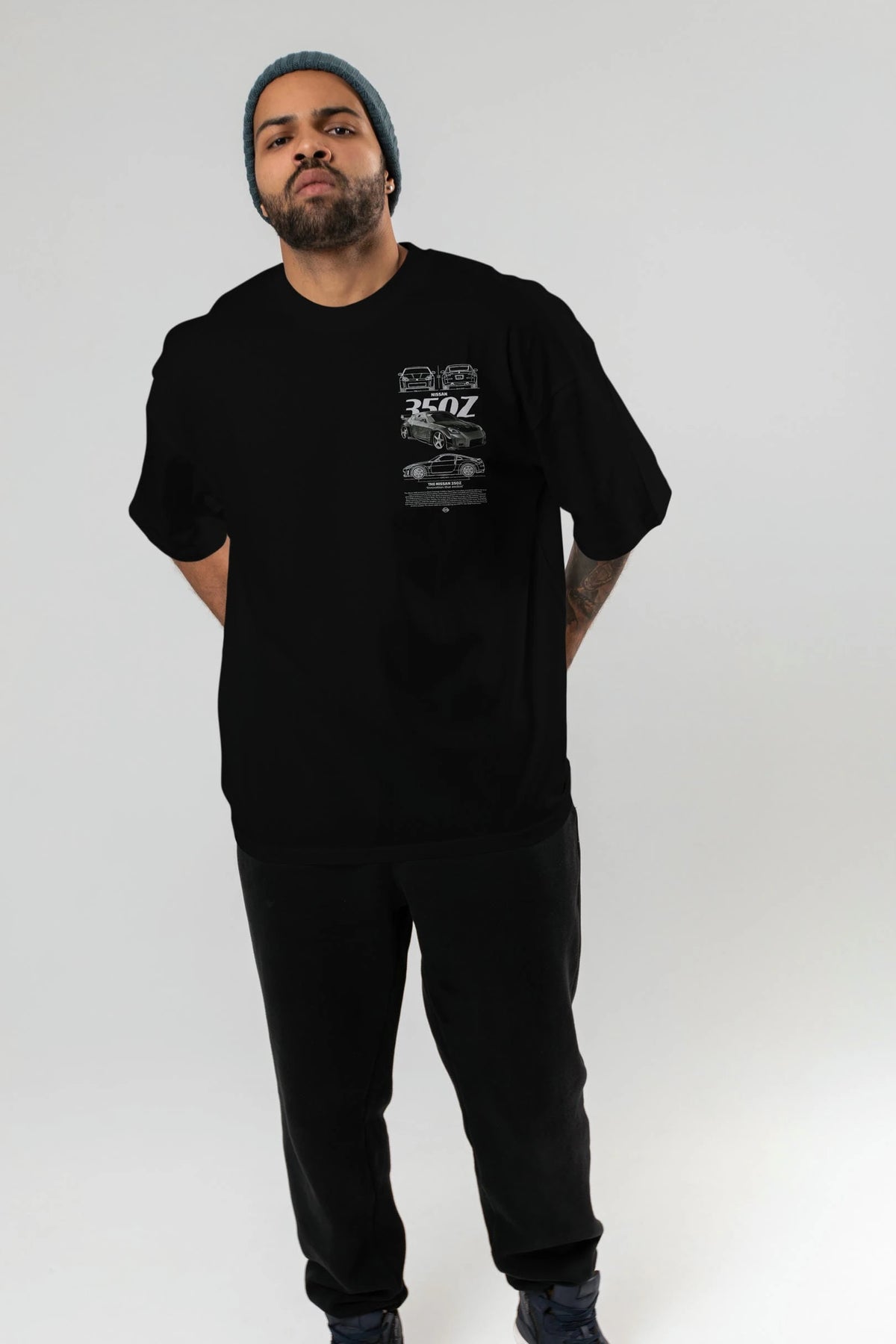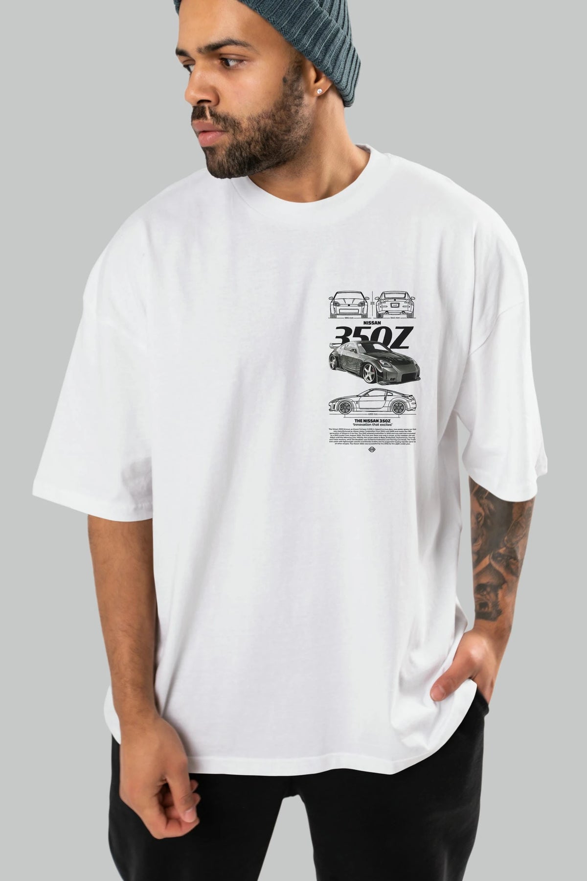 NISSAN 350Z 5 Ön Sol Baskılı Oversize t-shirt Erkek Kadın Unisex %100 Pamuk Bisiklet Yaka tişort