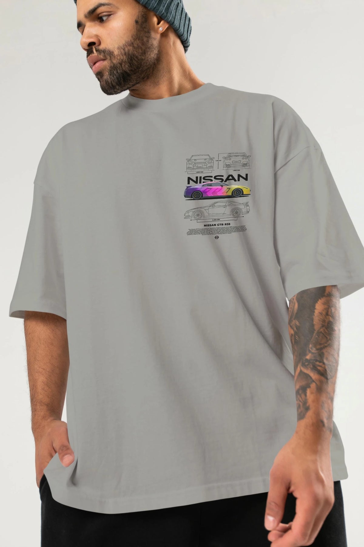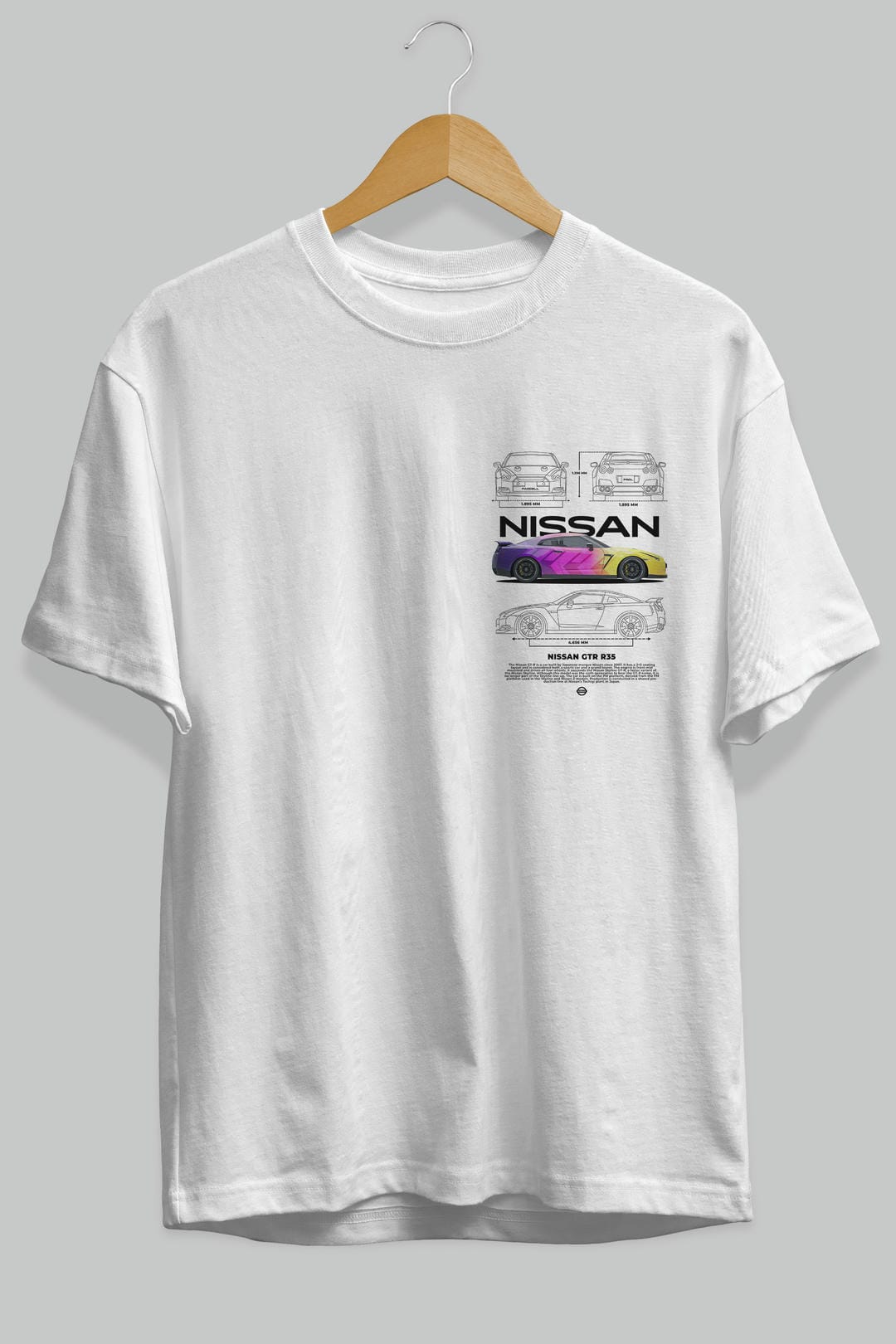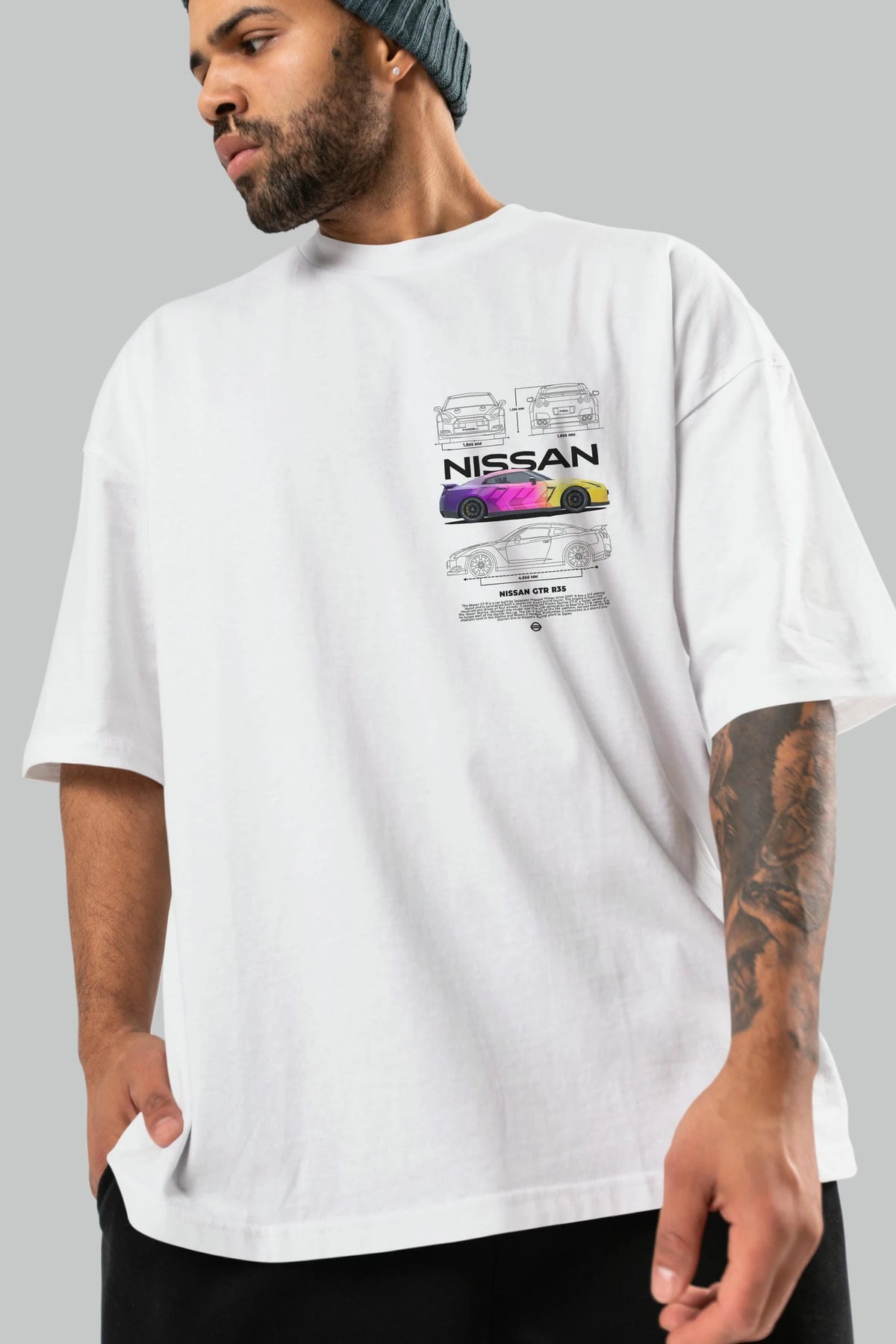 NISSAN GTR R35 Ön Sol Baskılı Oversize t-shirt Erkek Kadın Unisex %100 Pamuk Bisiklet Yaka tişort