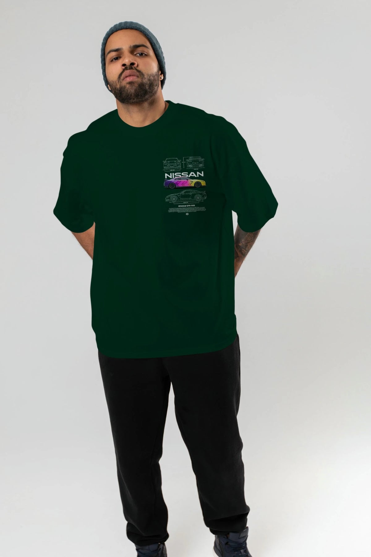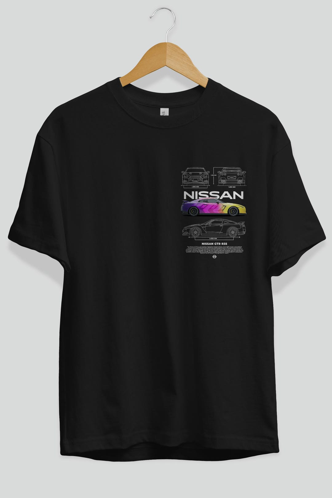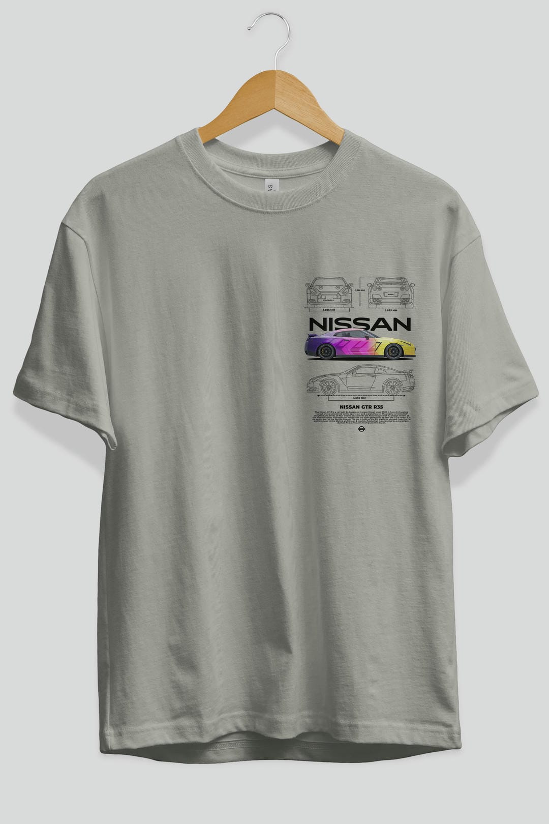 NISSAN GTR R35 Ön Sol Baskılı Oversize t-shirt Erkek Kadın Unisex %100 Pamuk Bisiklet Yaka tişort