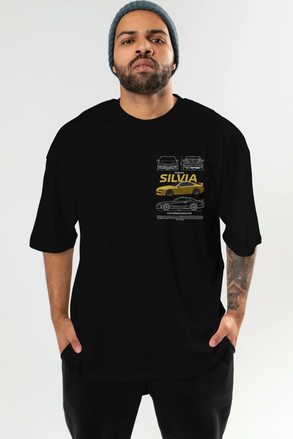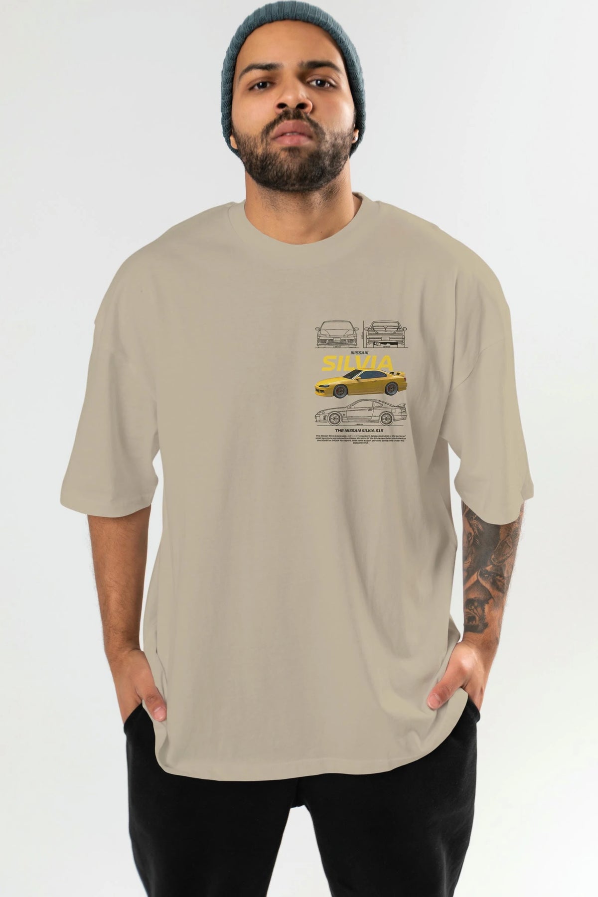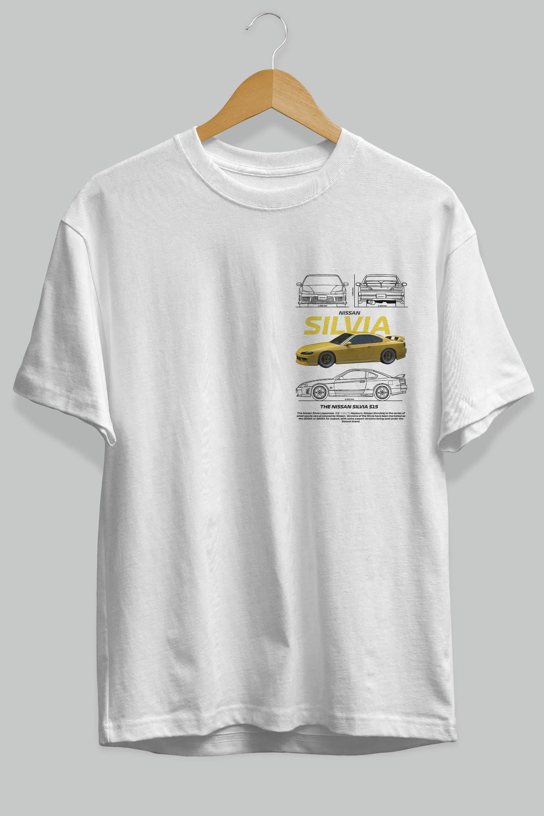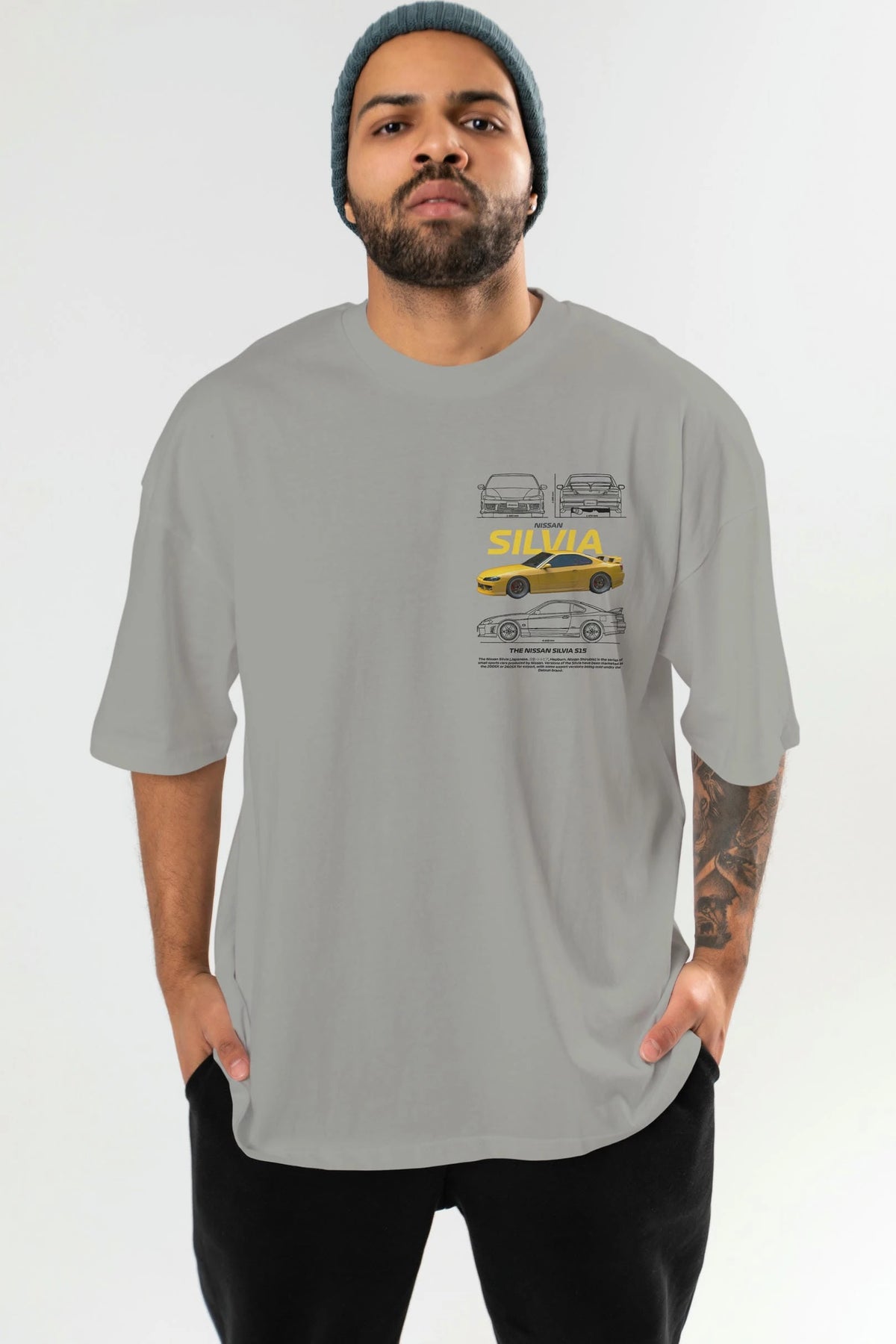 NISSAN SILVIA 1 Ön Sol Baskılı Oversize t-shirt Erkek Kadın Unisex %100 Pamuk Bisiklet Yaka tişort