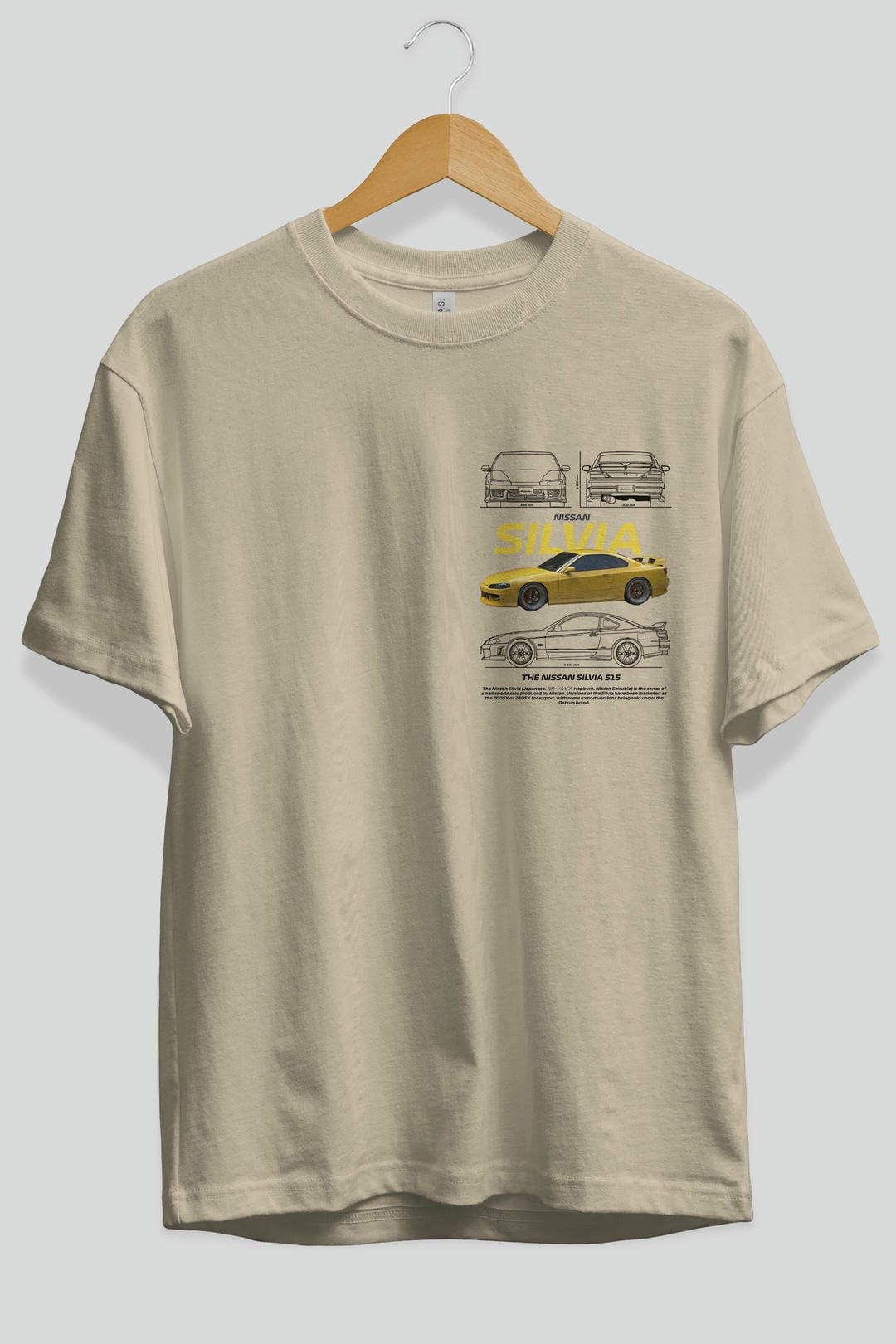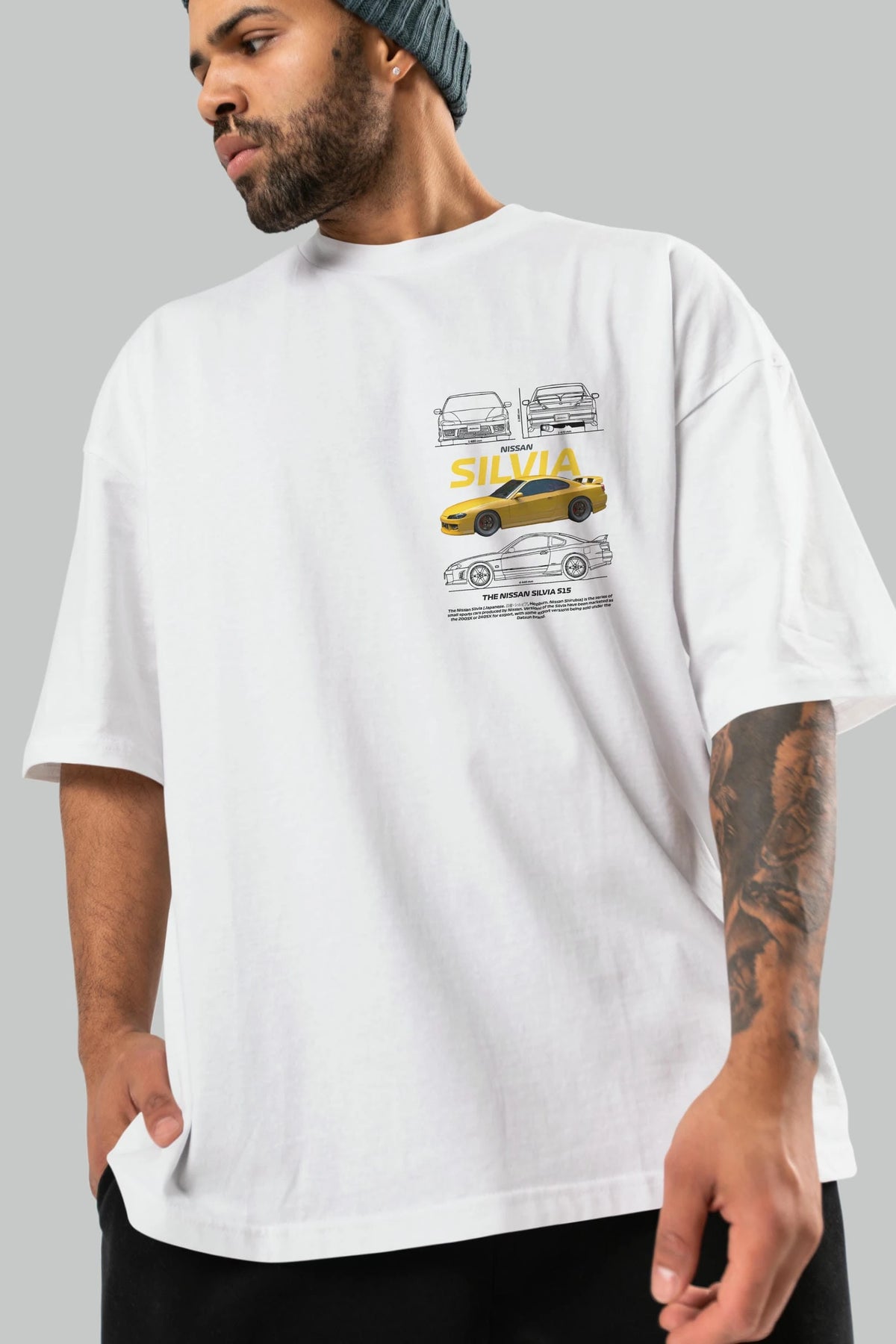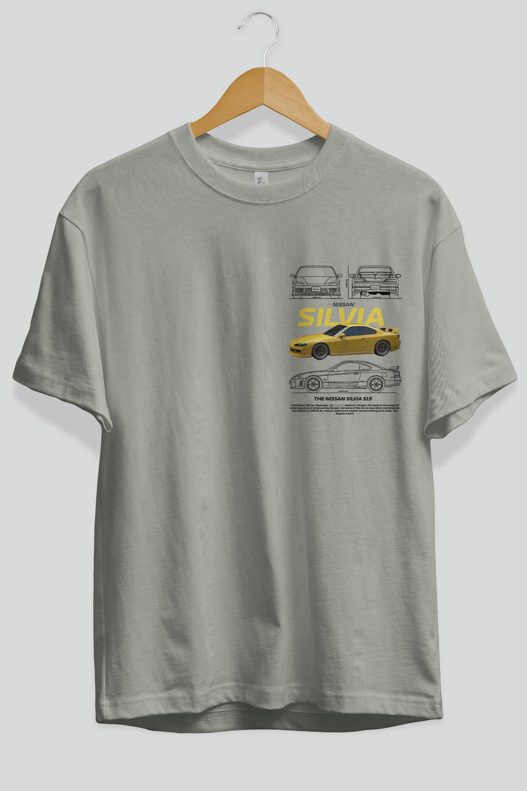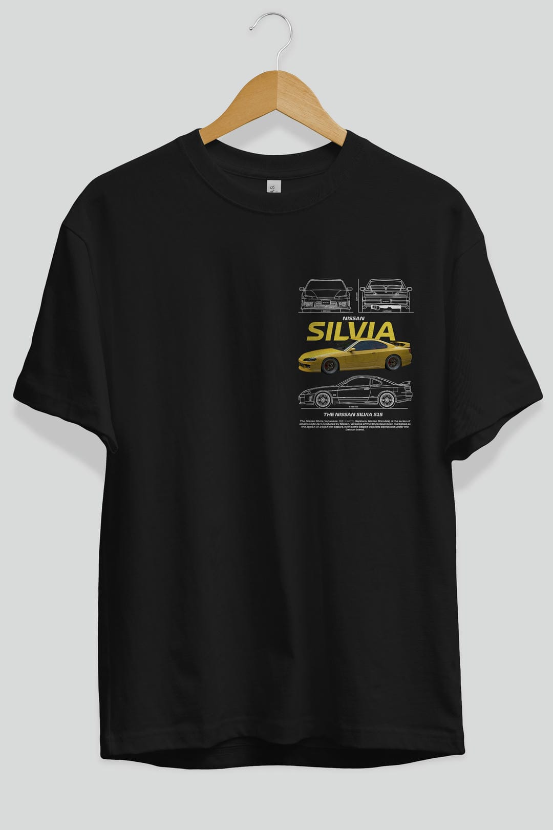 NISSAN SILVIA 1 Ön Sol Baskılı Oversize t-shirt Erkek Kadın Unisex %100 Pamuk Bisiklet Yaka tişort