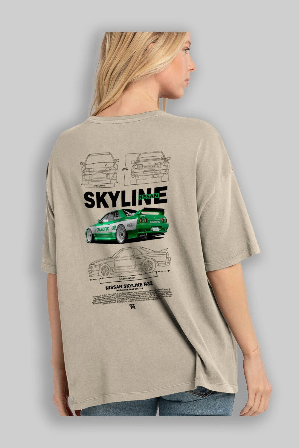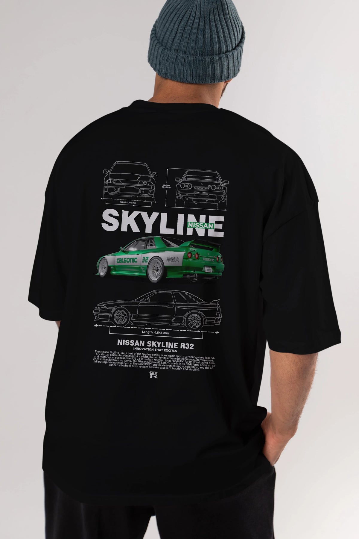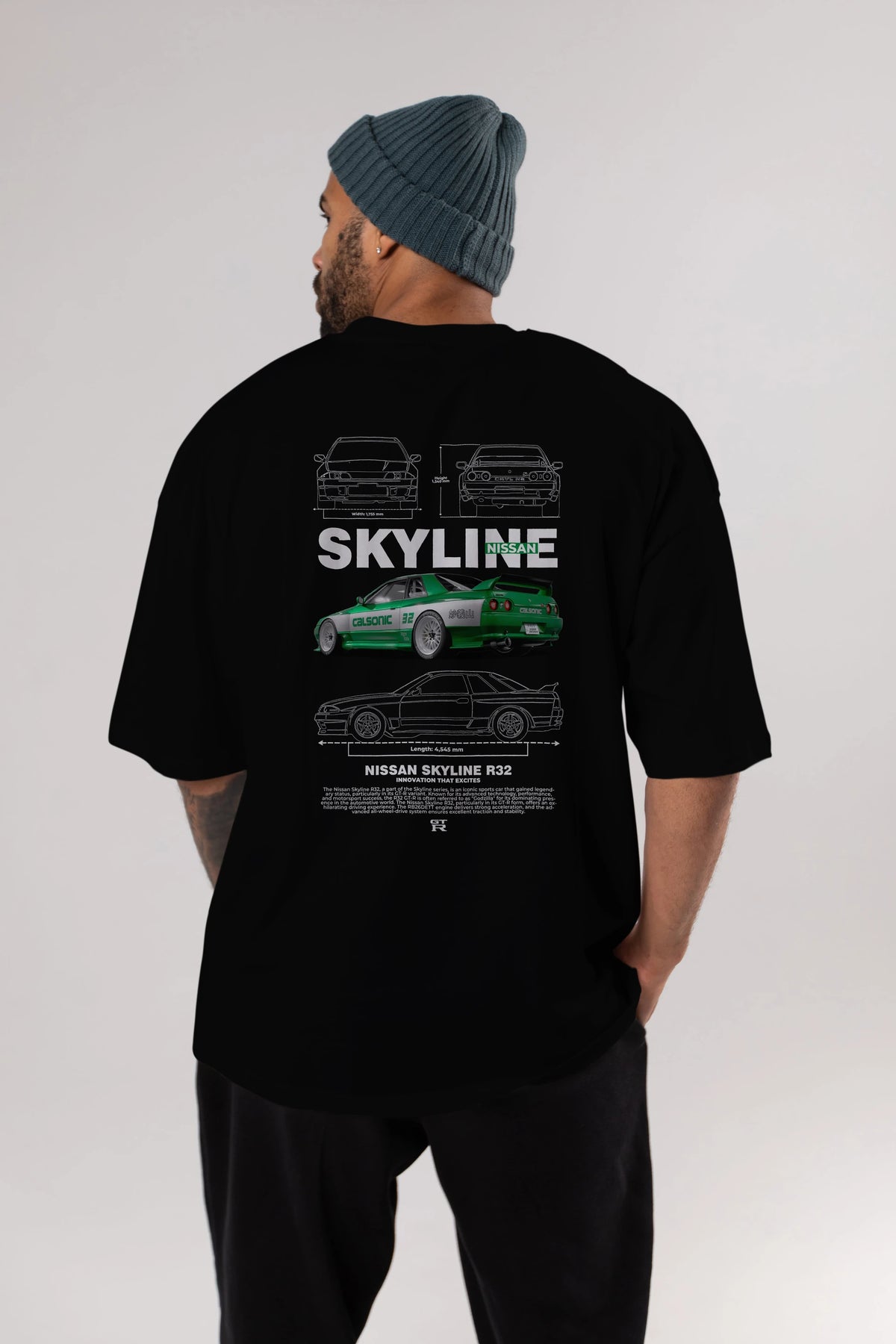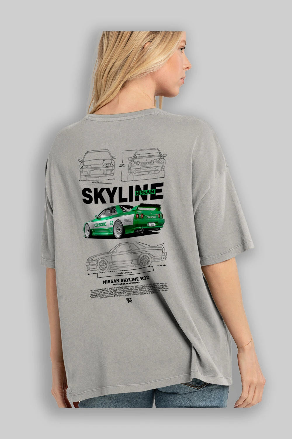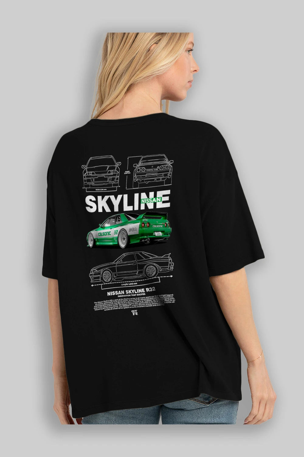 NISSAN SKYLINE R32 Arka Baskılı Oversize t-shirt Erkek Kadın Unisex %100 Pamuk Bisiklet Yaka tişort