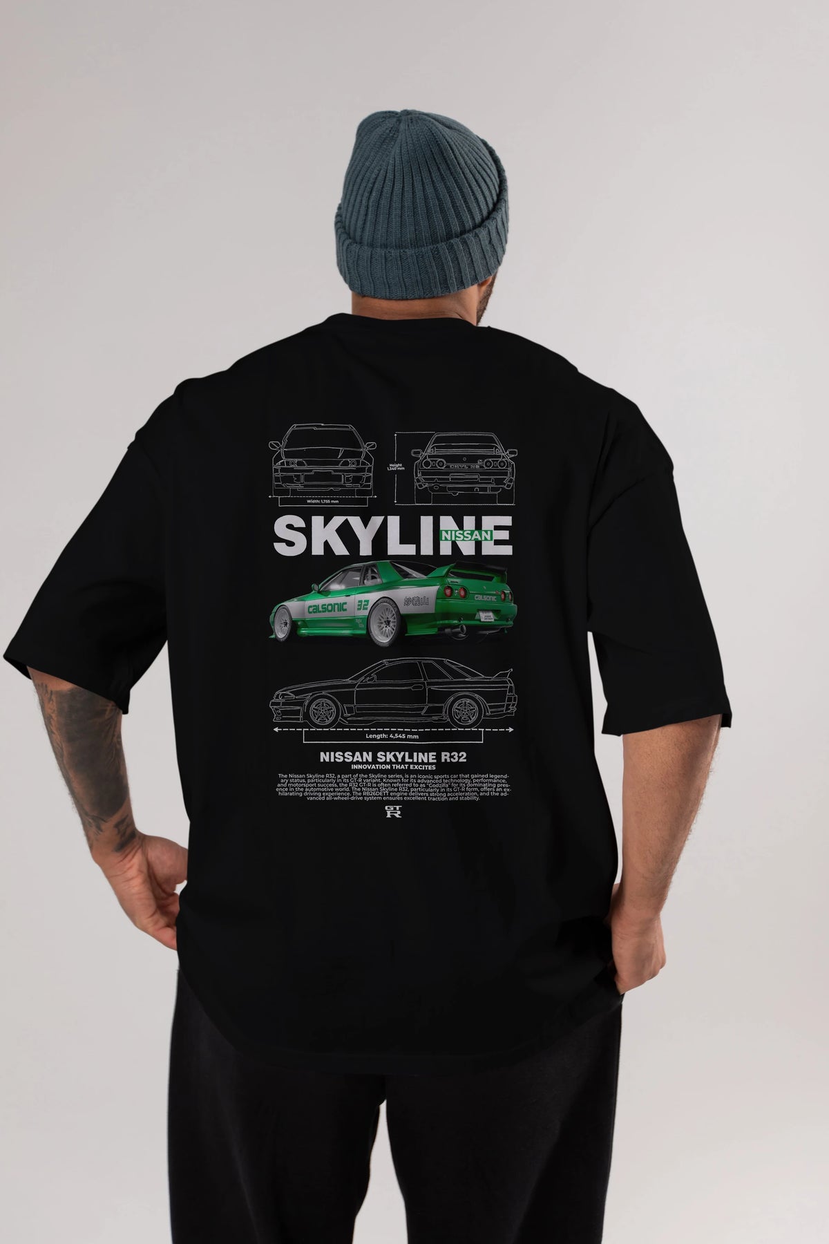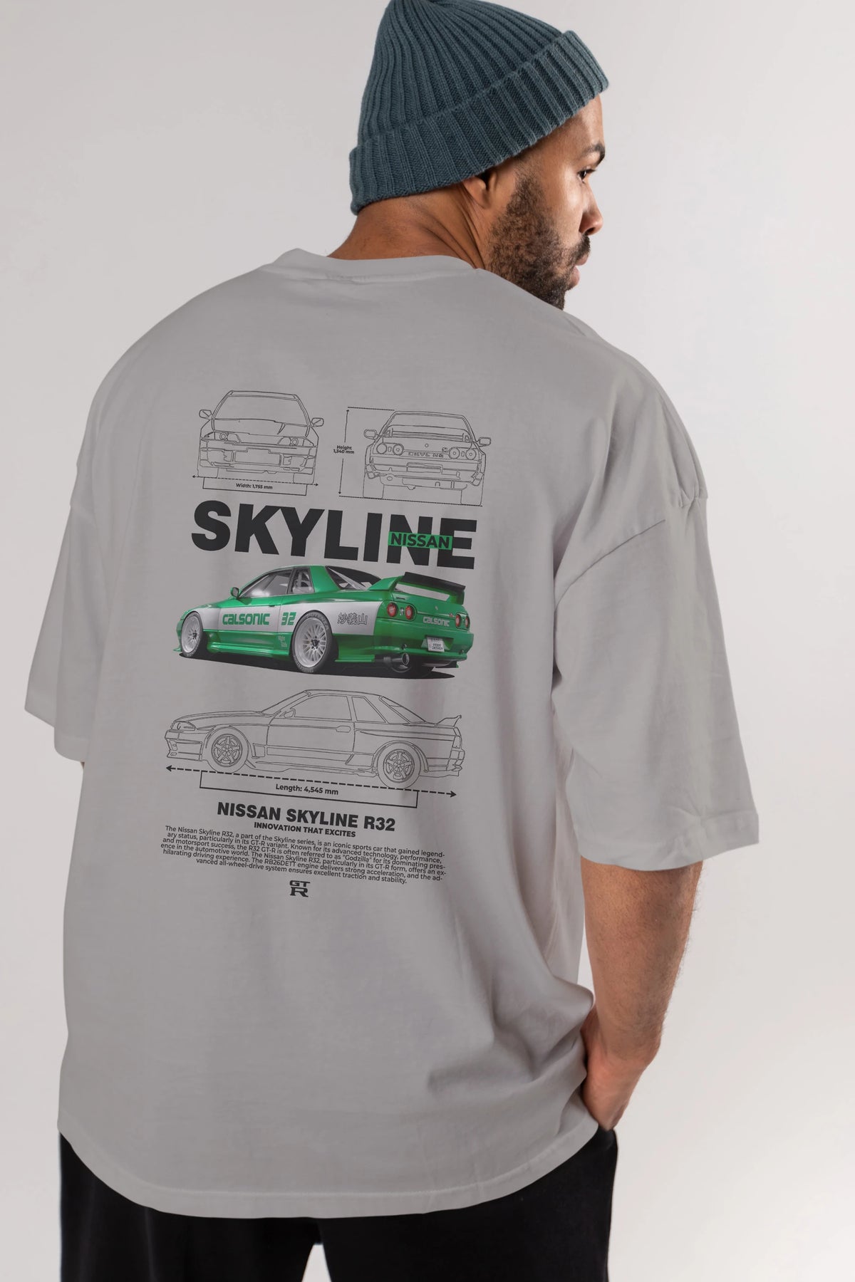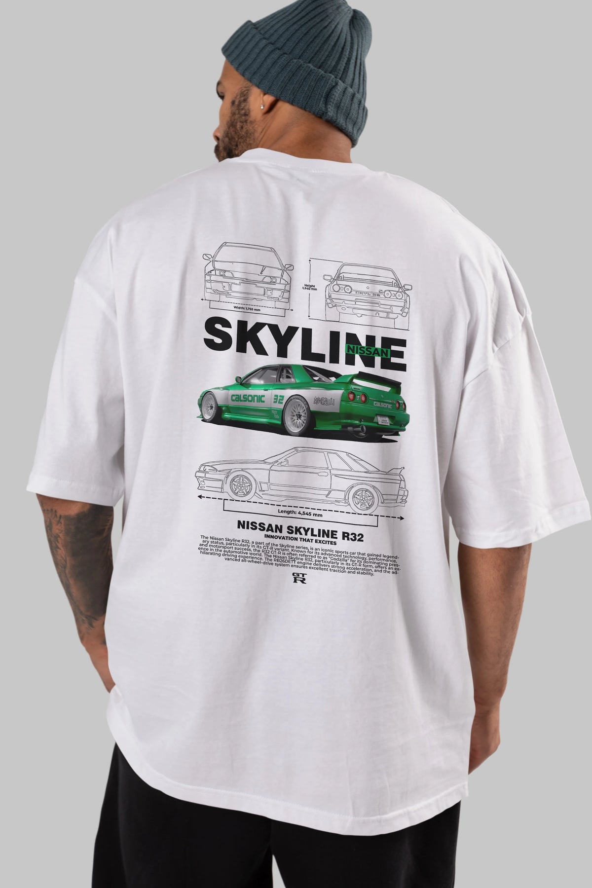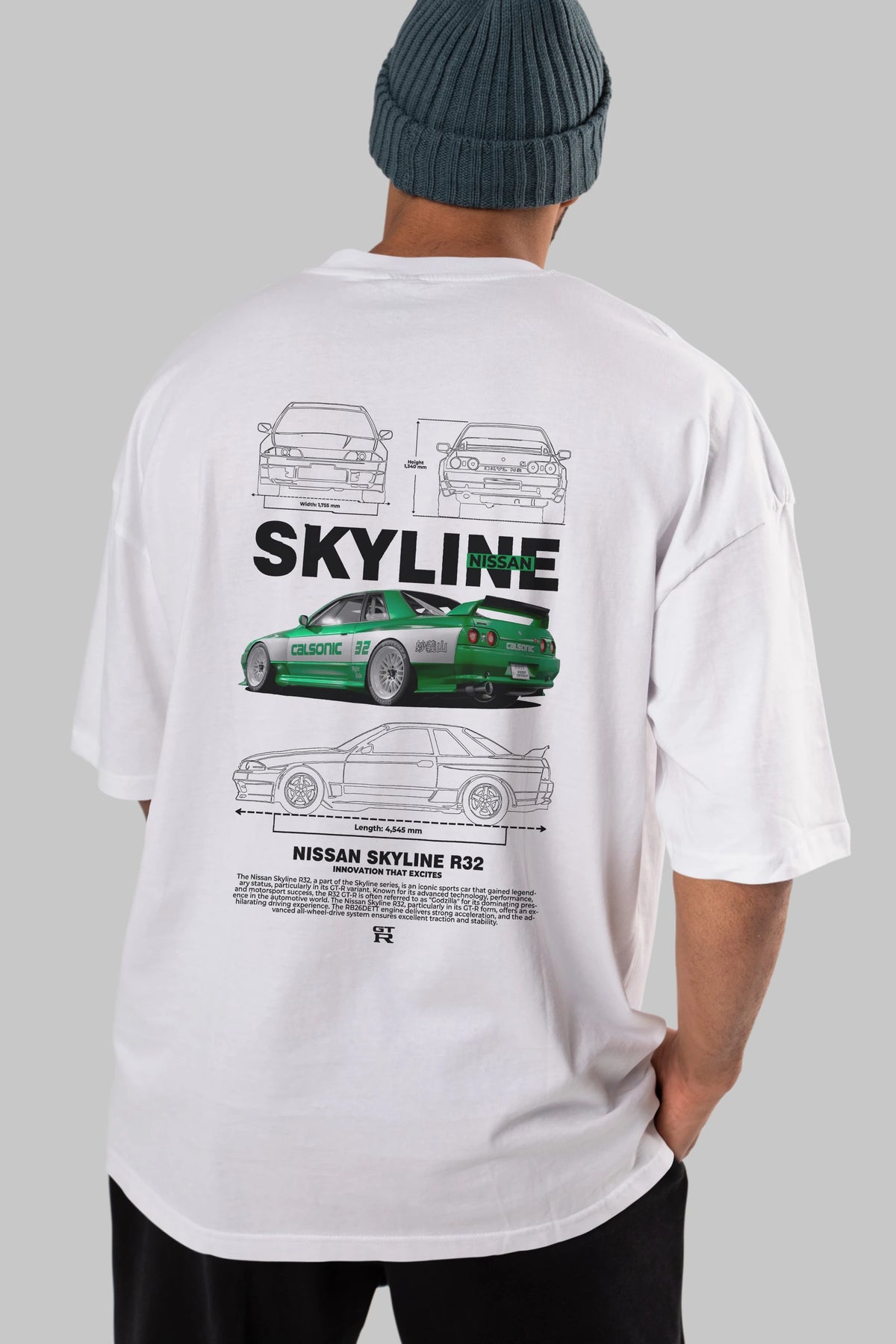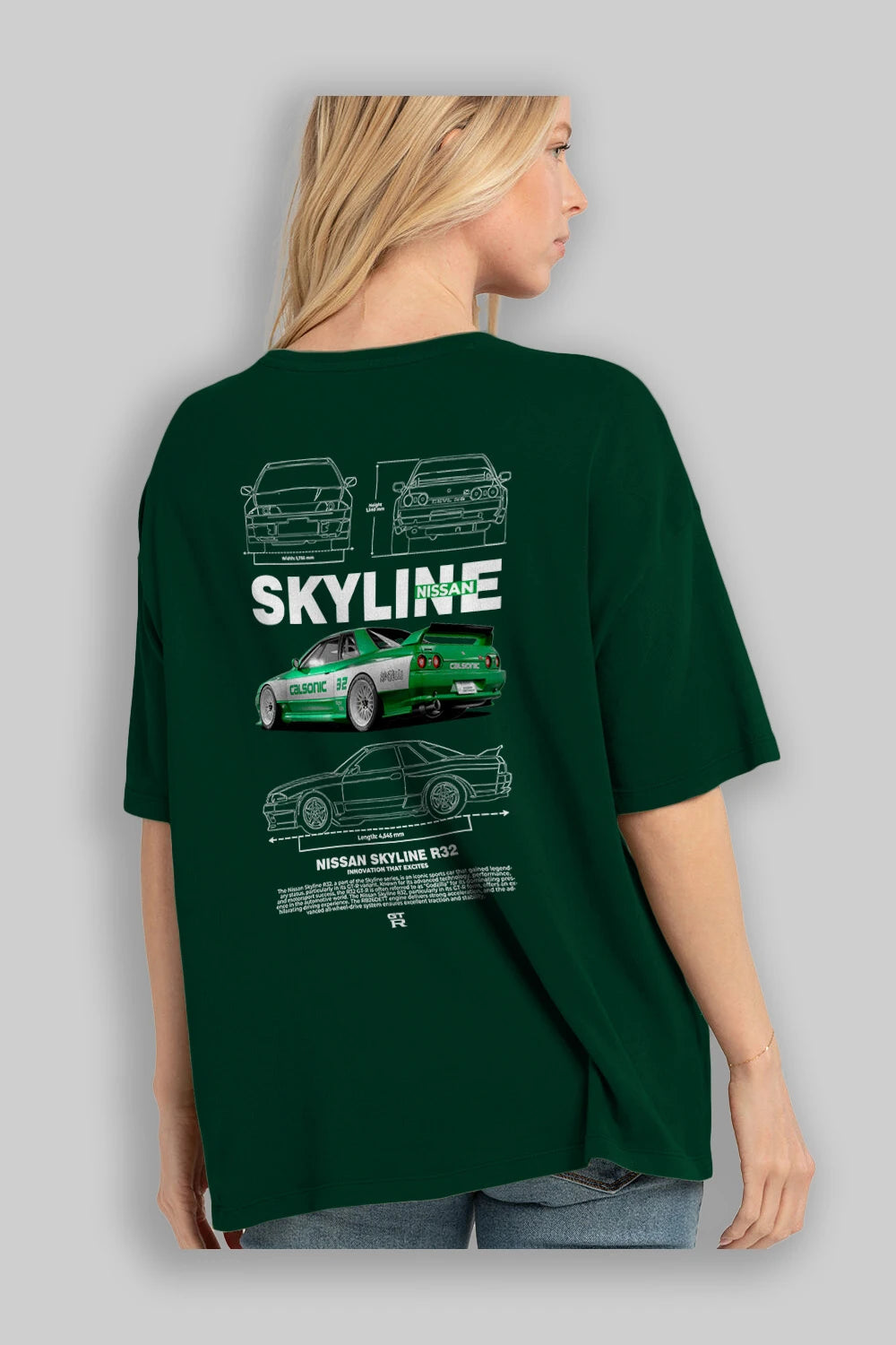 NISSAN SKYLINE R32 Arka Baskılı Oversize t-shirt Erkek Kadın Unisex %100 Pamuk Bisiklet Yaka tişort