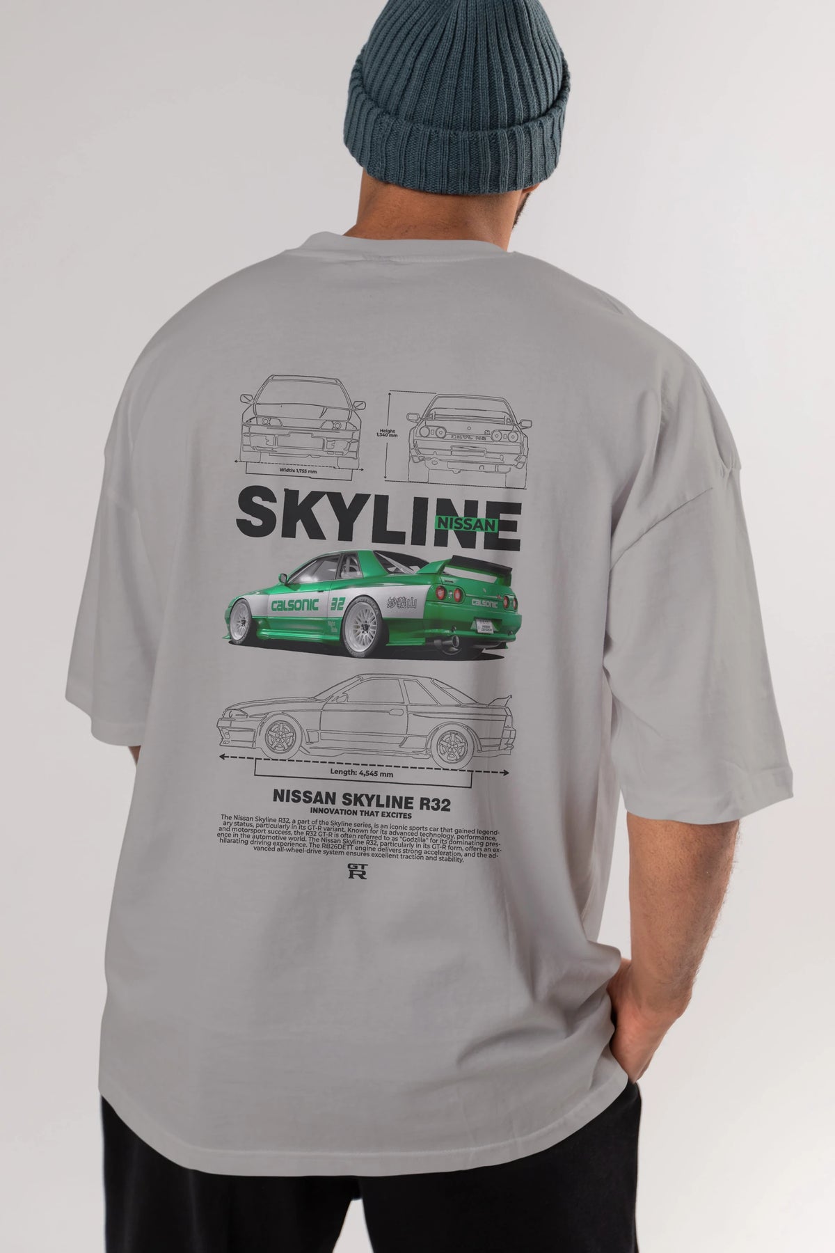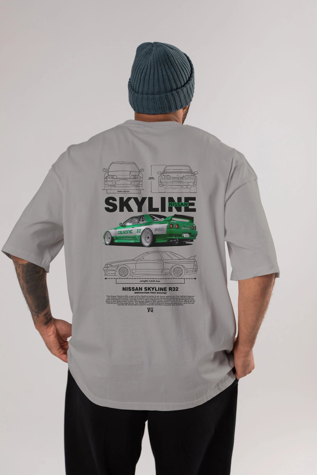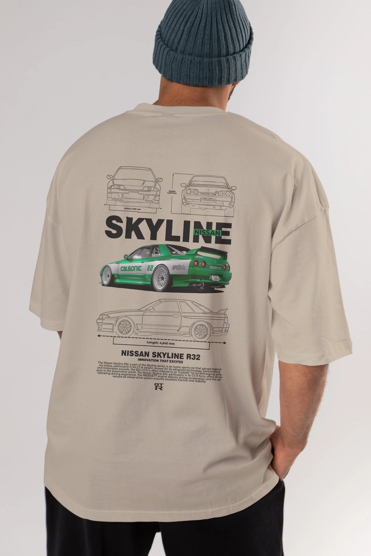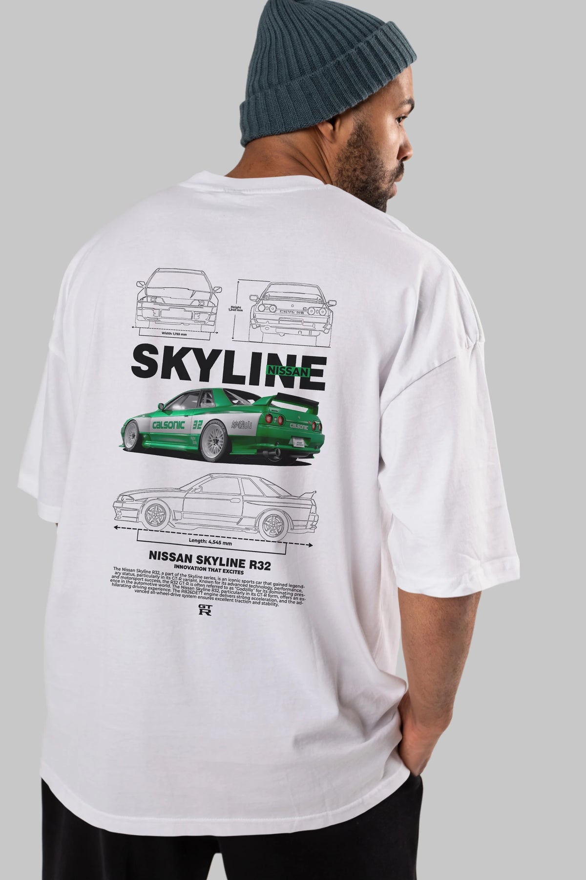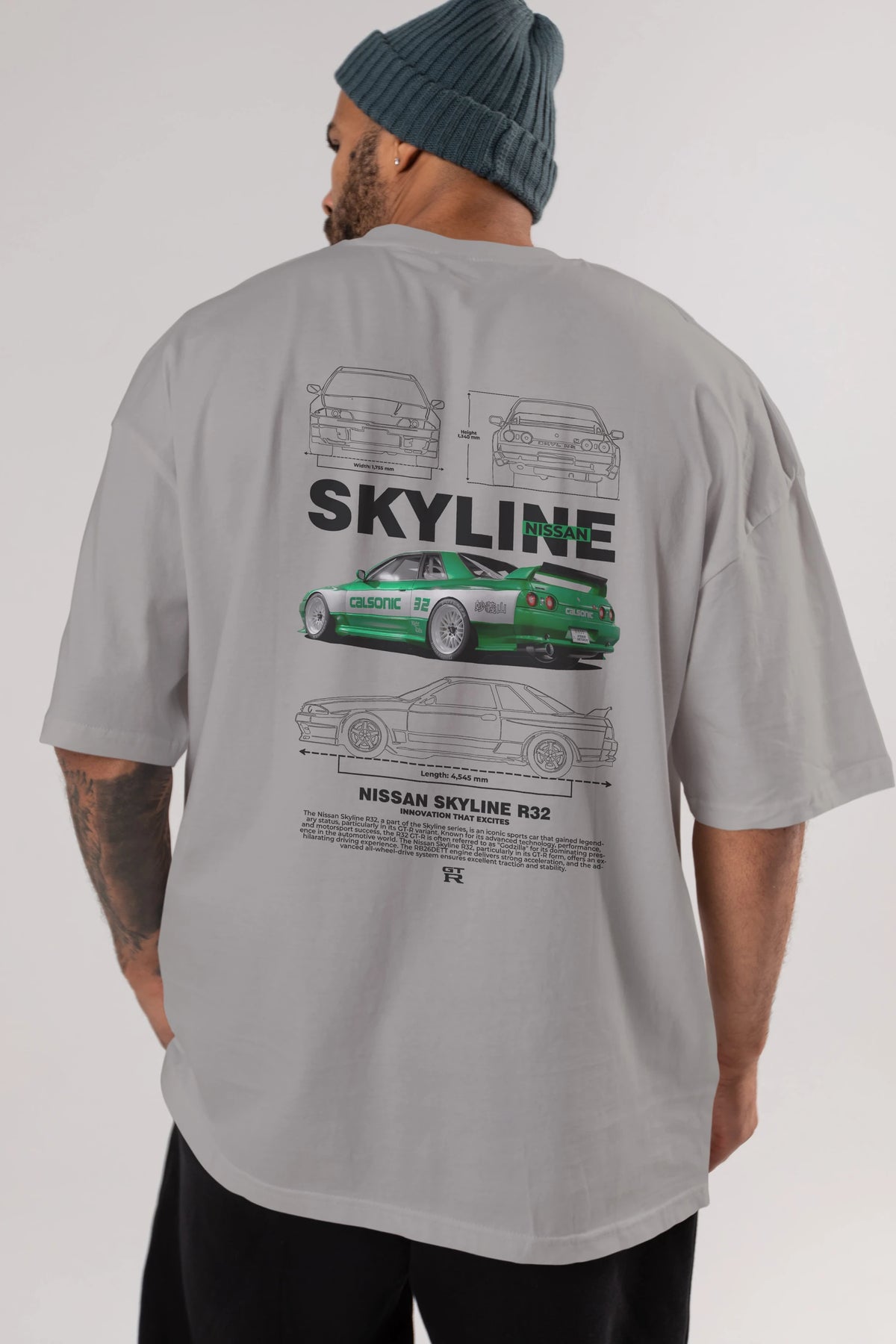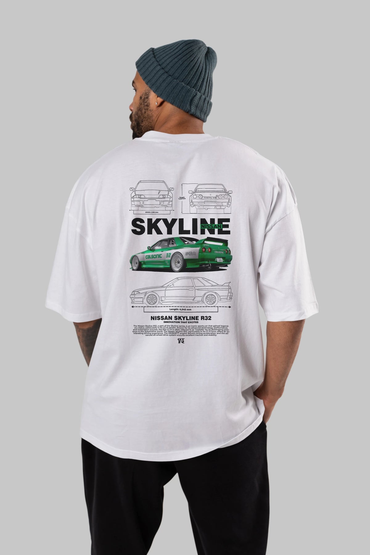 NISSAN SKYLINE R32 Arka Baskılı Oversize t-shirt Erkek Kadın Unisex %100 Pamuk Bisiklet Yaka tişort