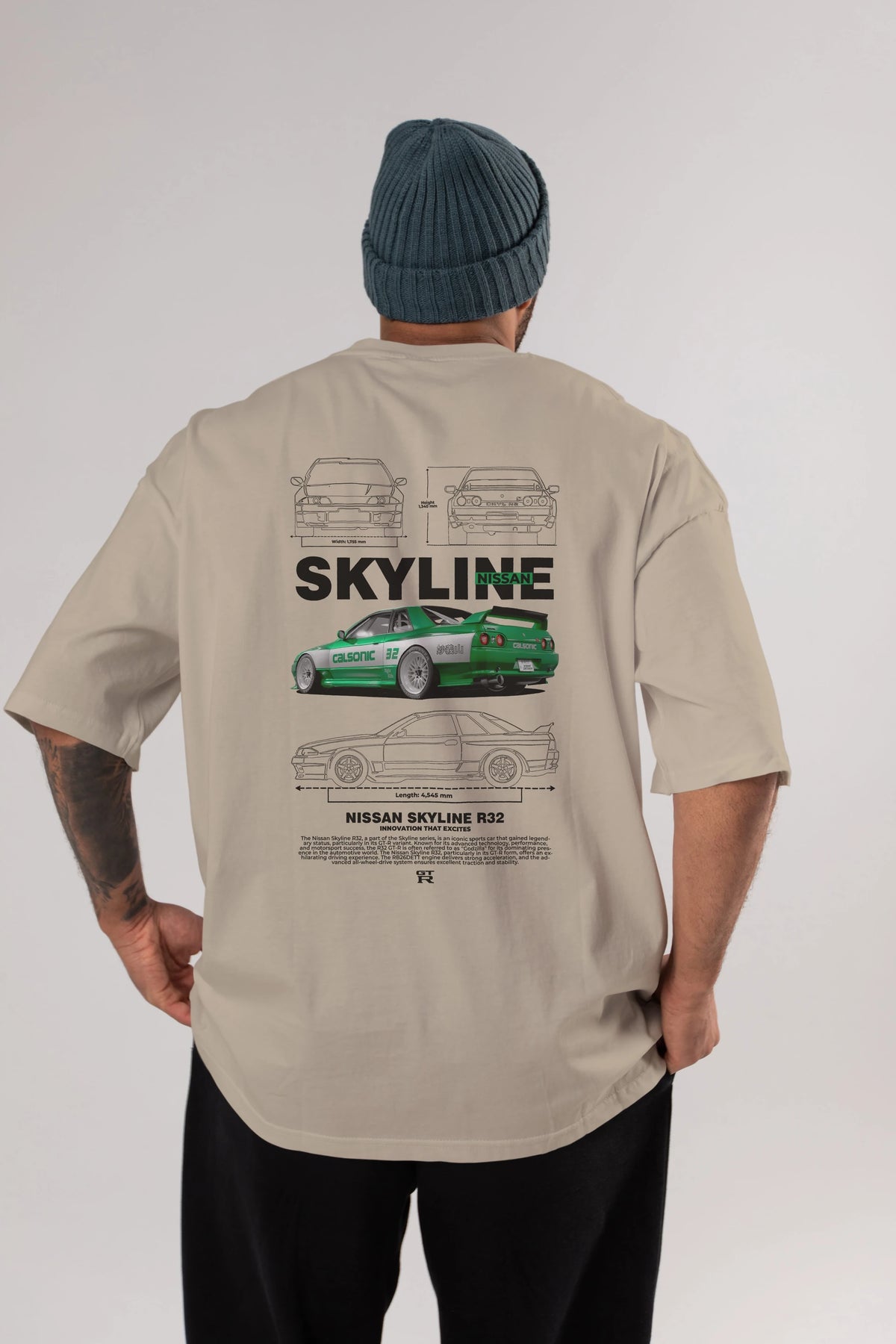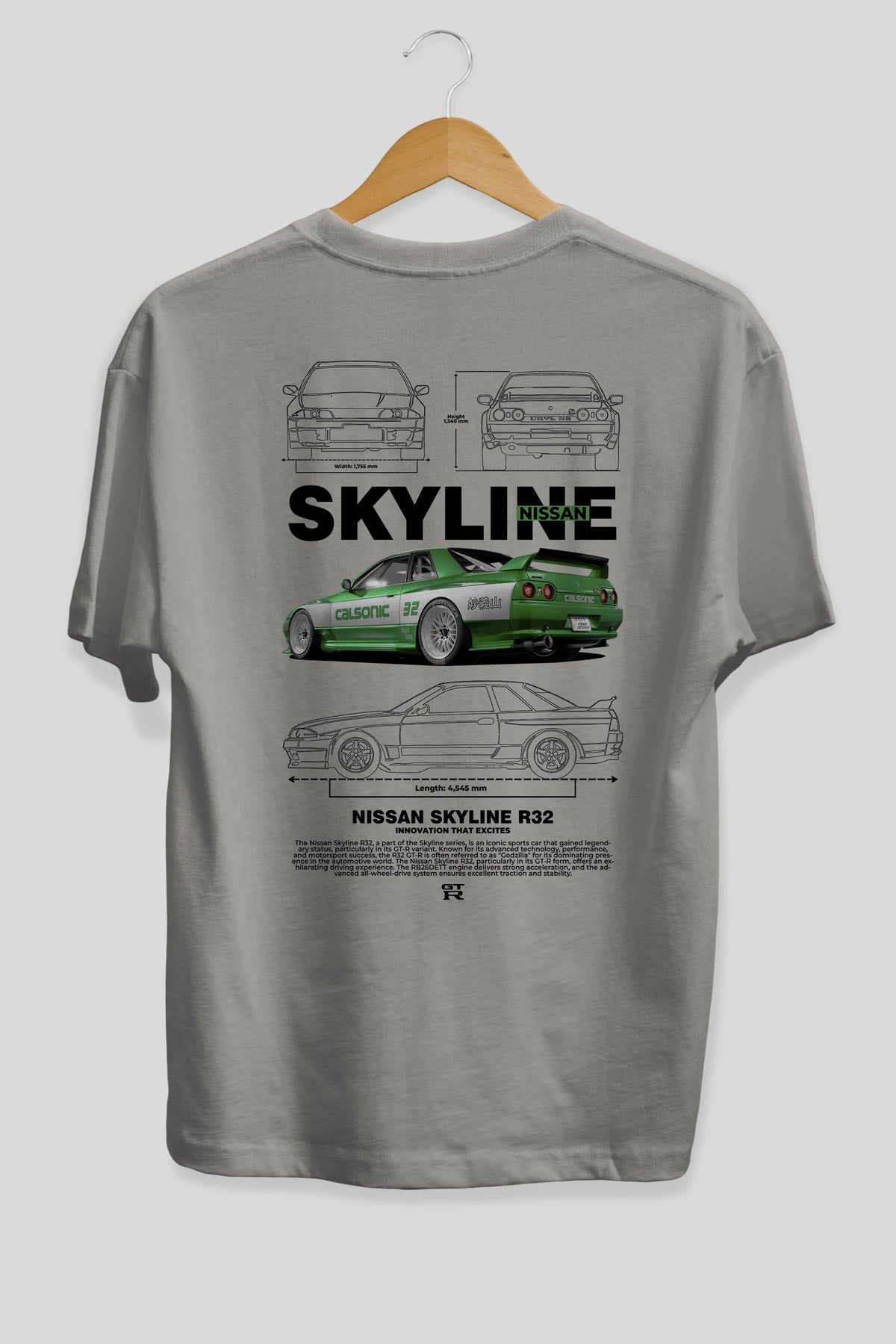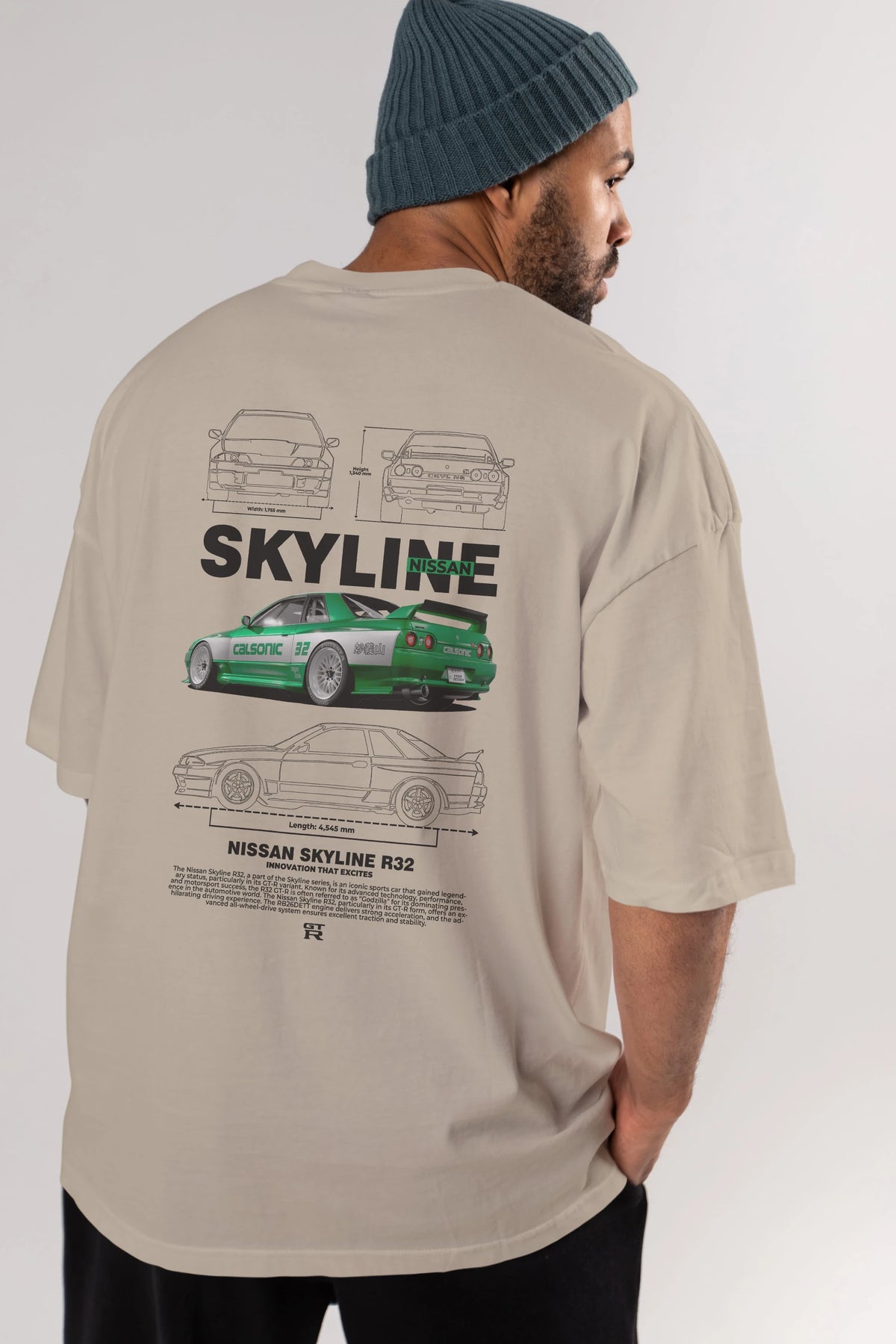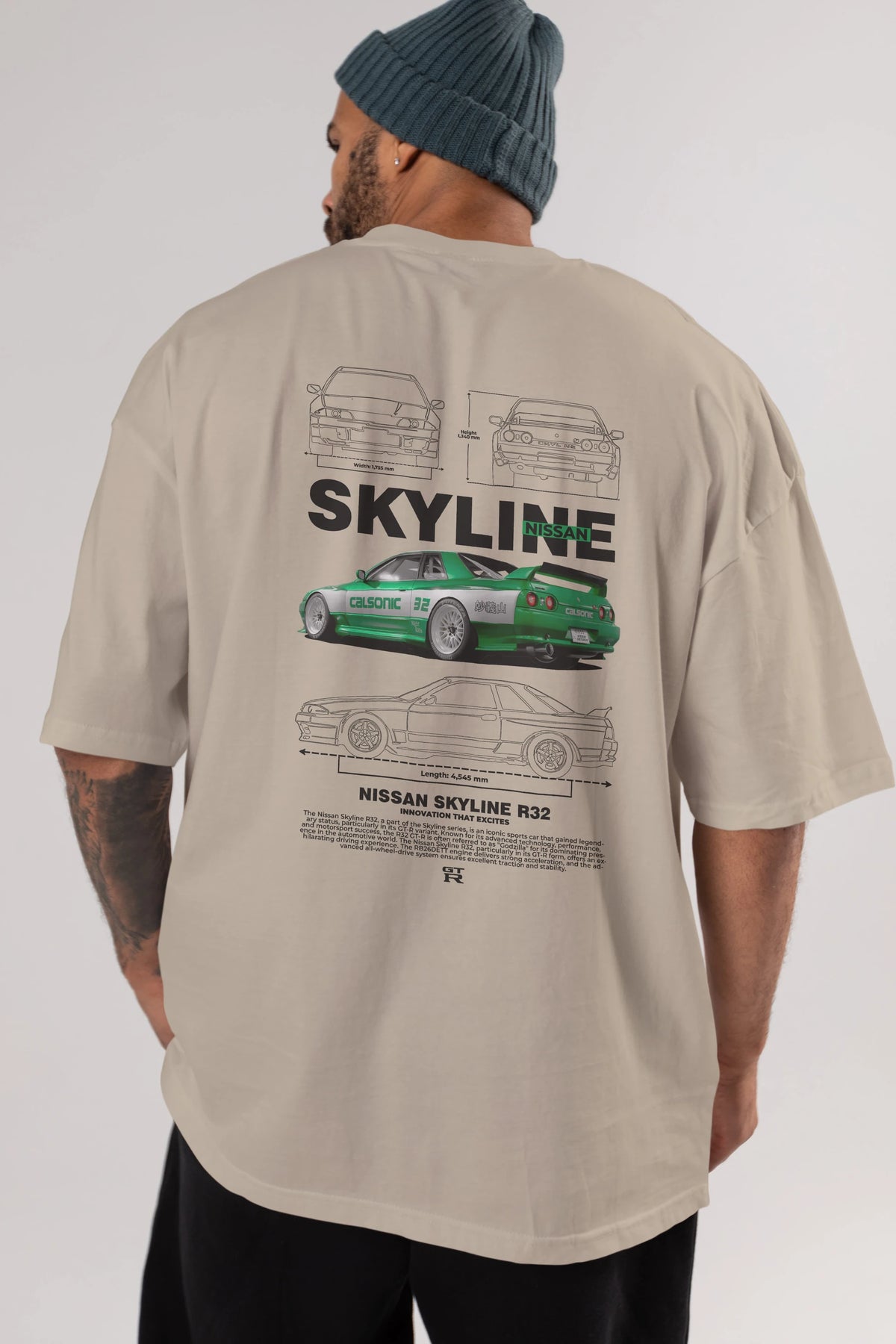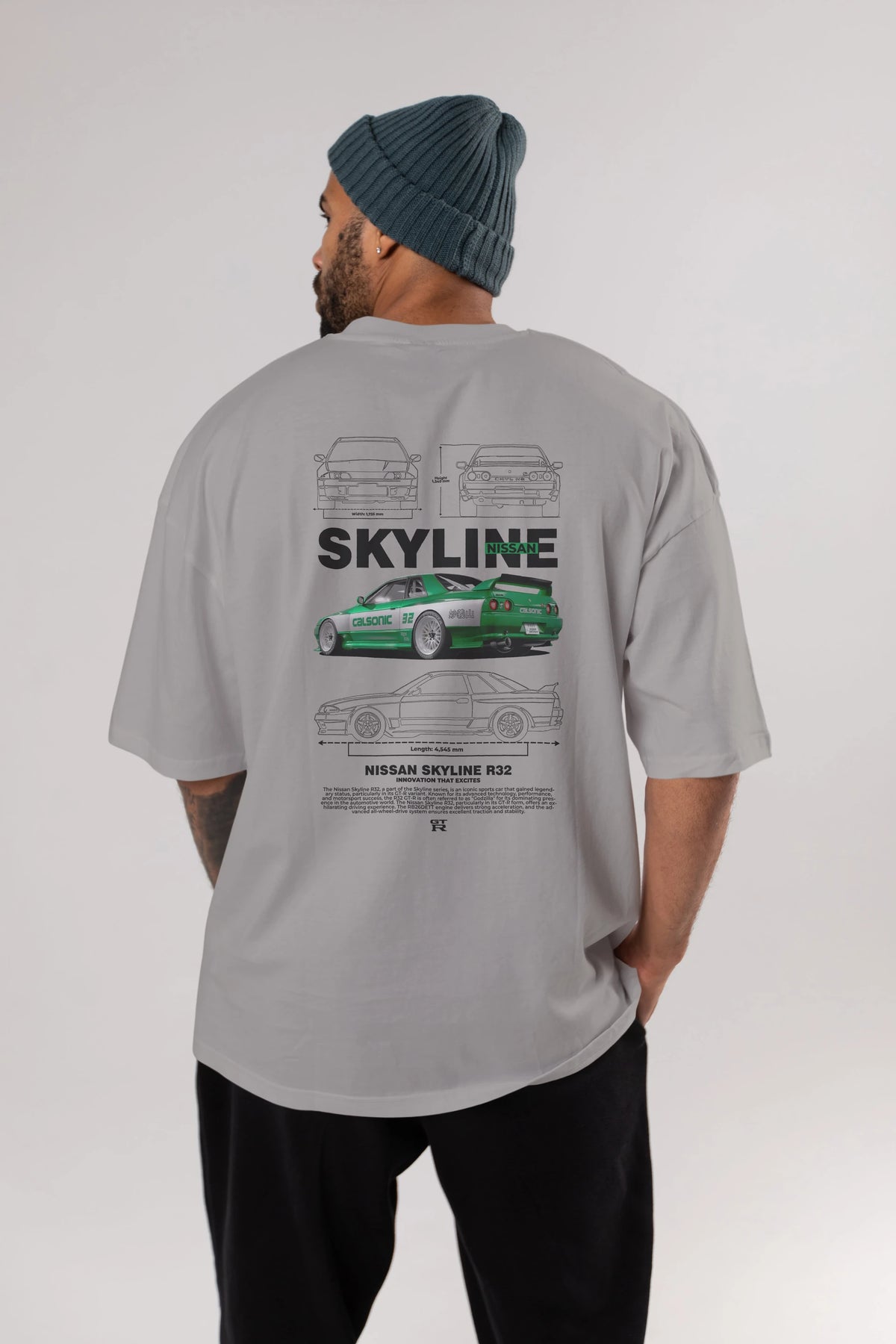 NISSAN SKYLINE R32 Arka Baskılı Oversize t-shirt Erkek Kadın Unisex %100 Pamuk Bisiklet Yaka tişort
