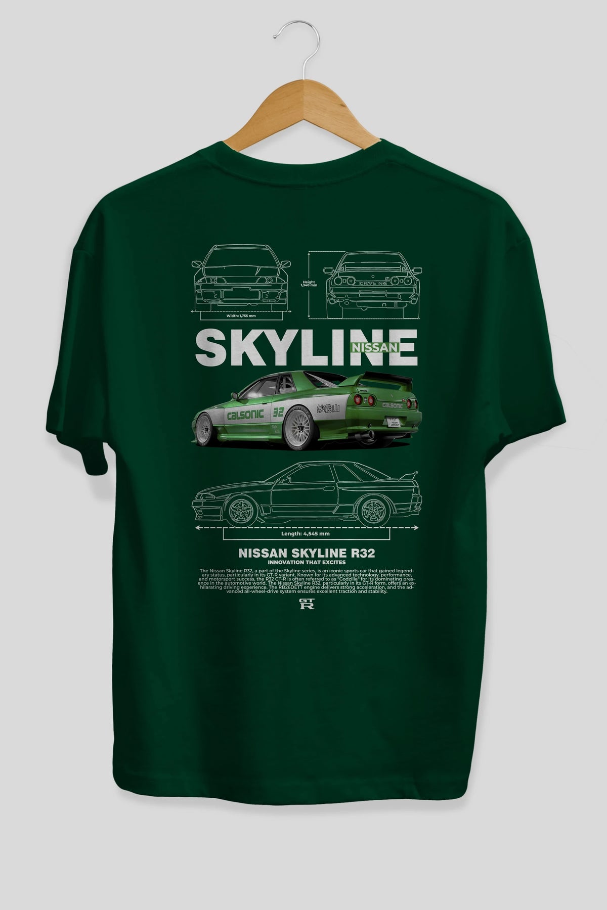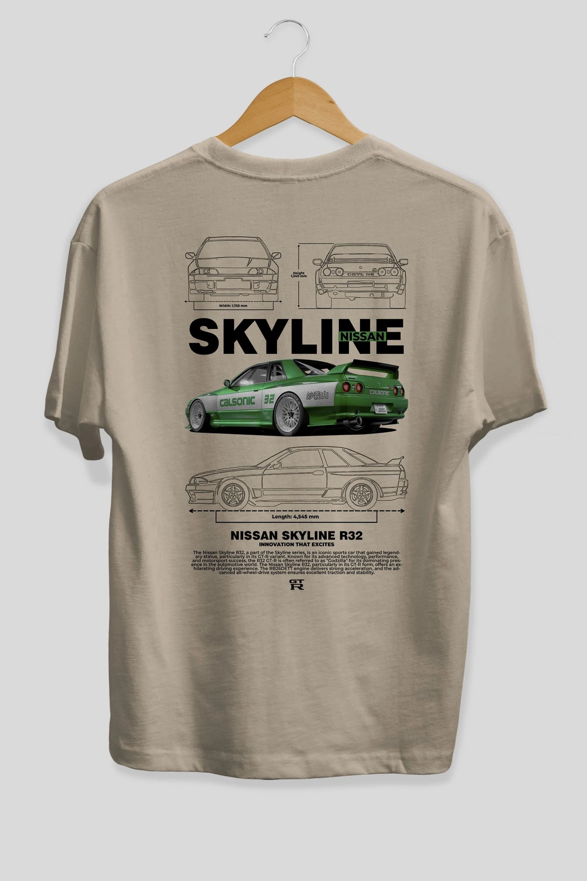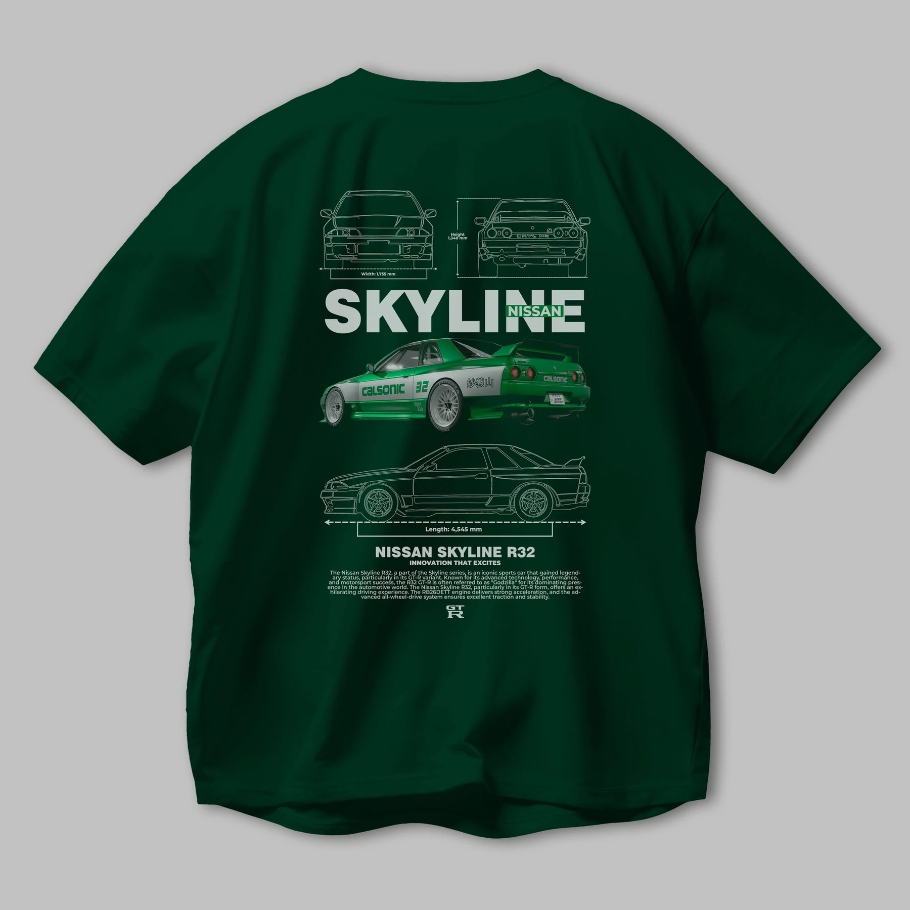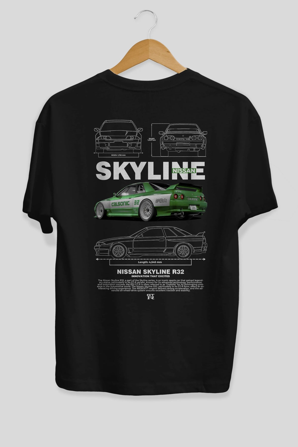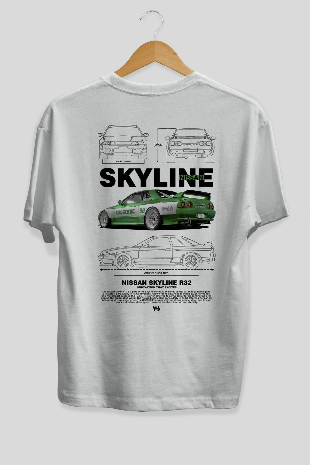NISSAN SKYLINE R32 Arka Baskılı Oversize t-shirt Erkek Kadın Unisex %100 Pamuk Bisiklet Yaka tişort