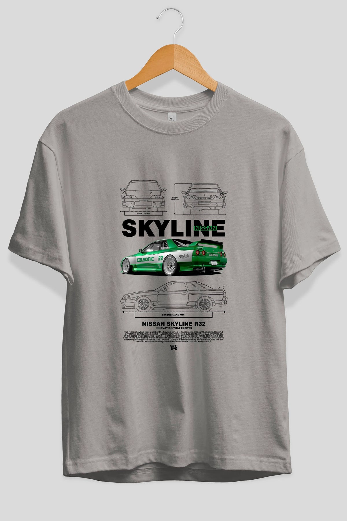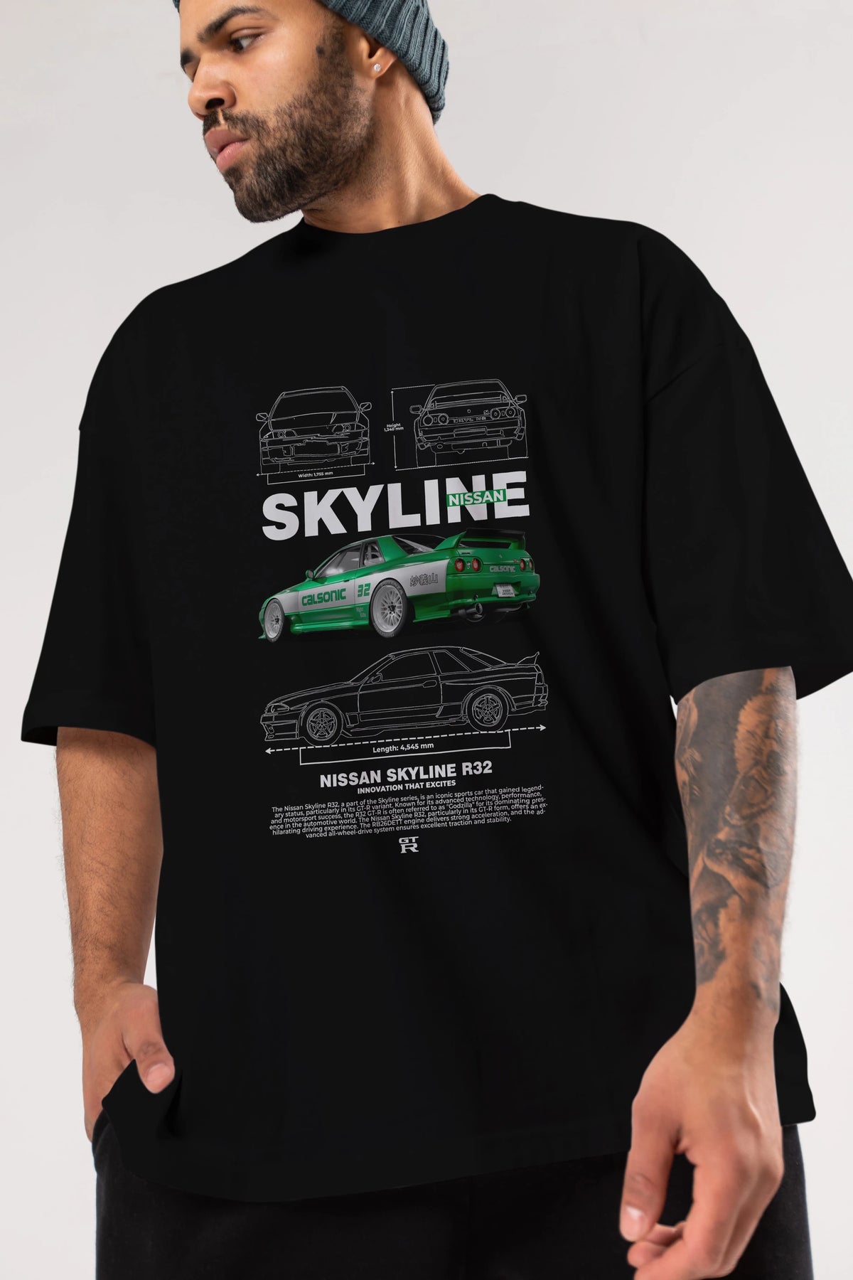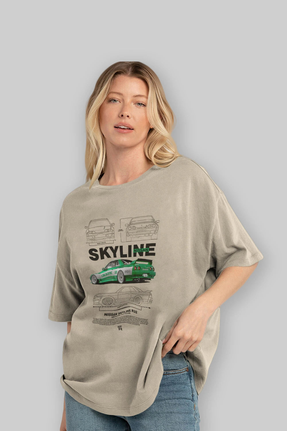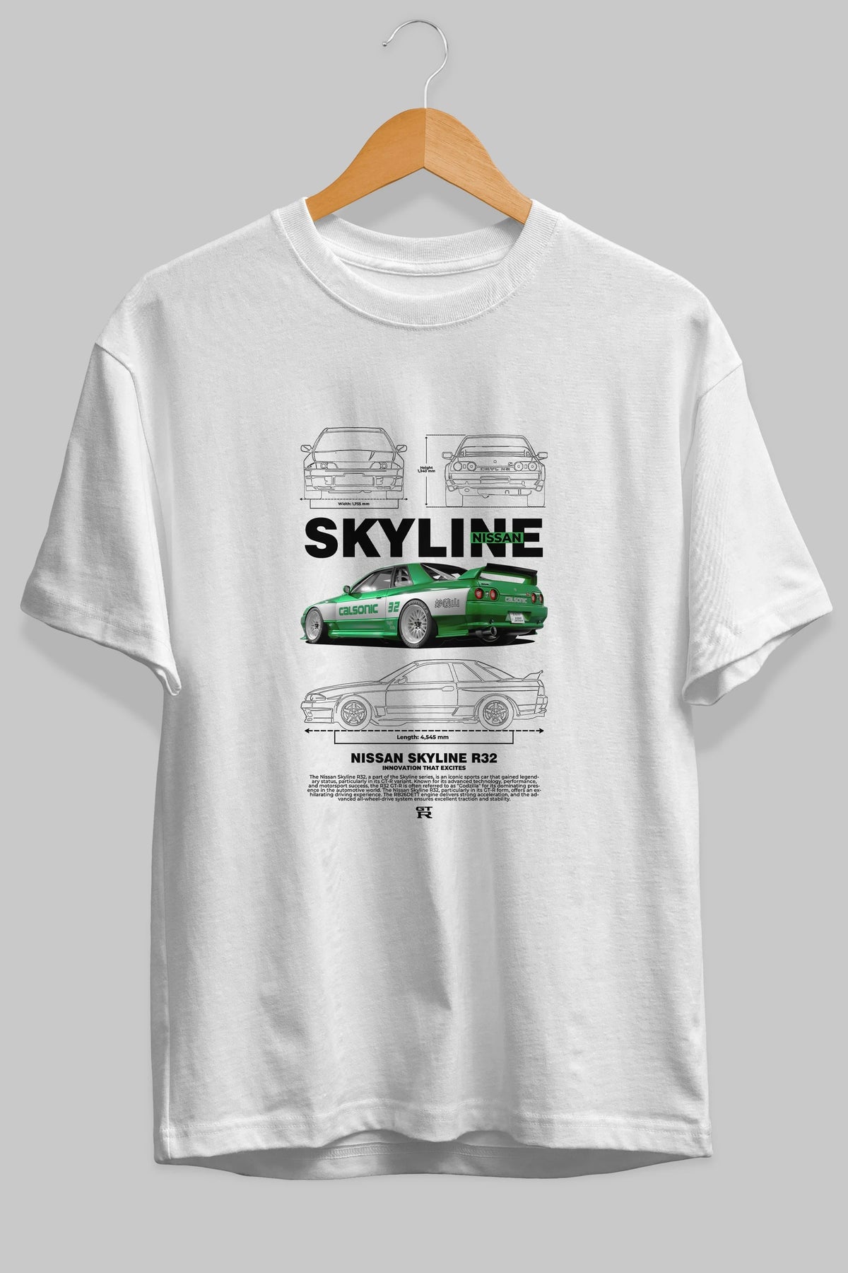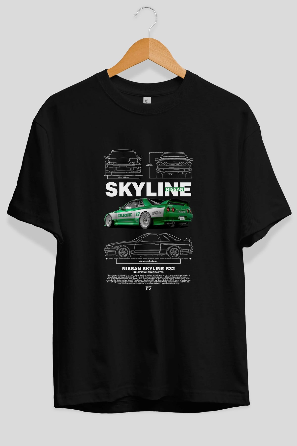 NISSAN SKYLINE R32 Ön Baskılı Oversize t-shirt Erkek Kadın Unisex %100 Pamuk Bisiklet Yaka tişort