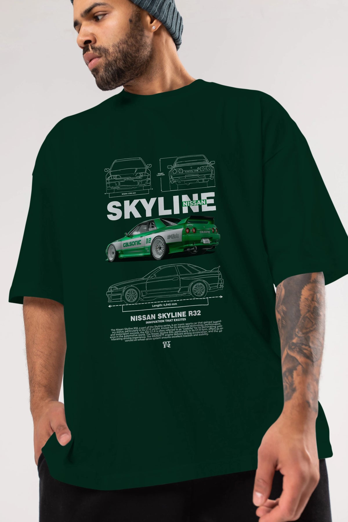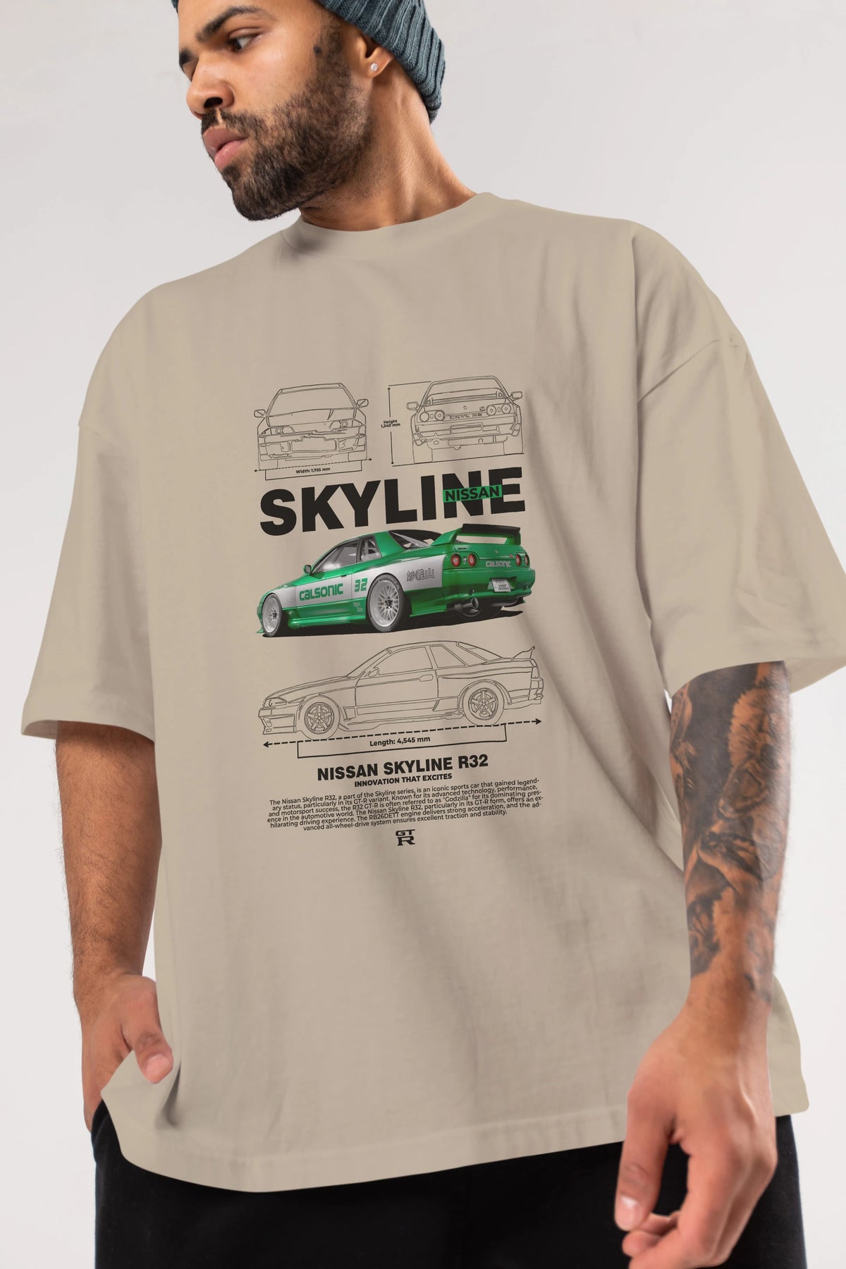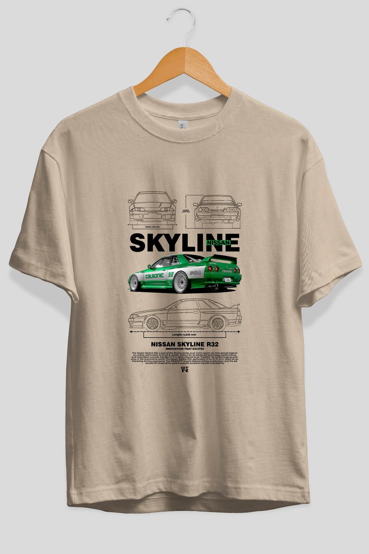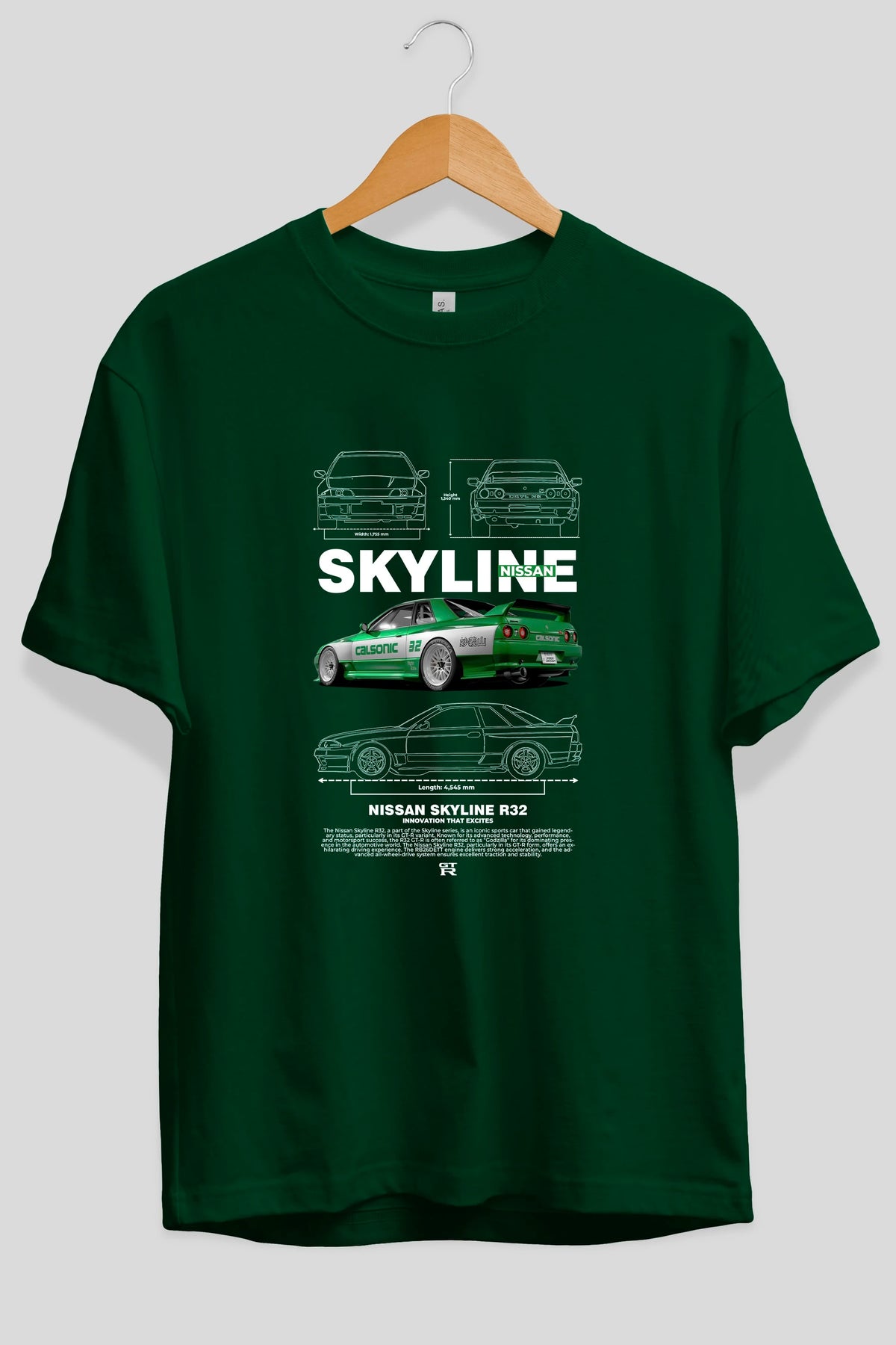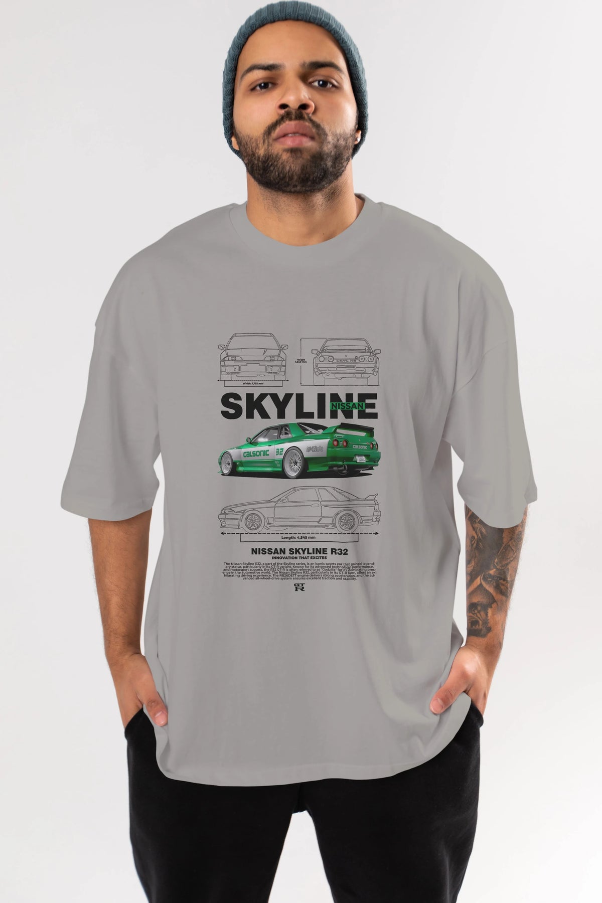 NISSAN SKYLINE R32 Ön Baskılı Oversize t-shirt Erkek Kadın Unisex %100 Pamuk Bisiklet Yaka tişort