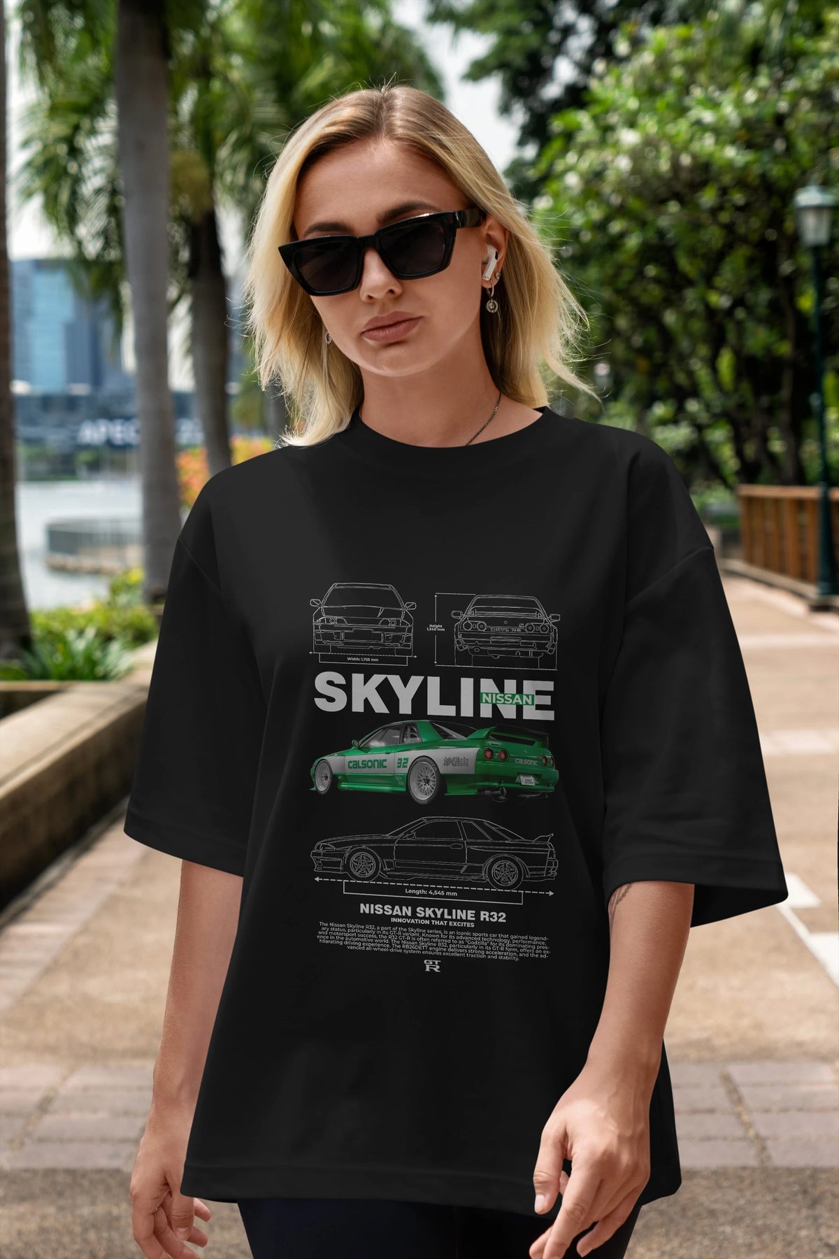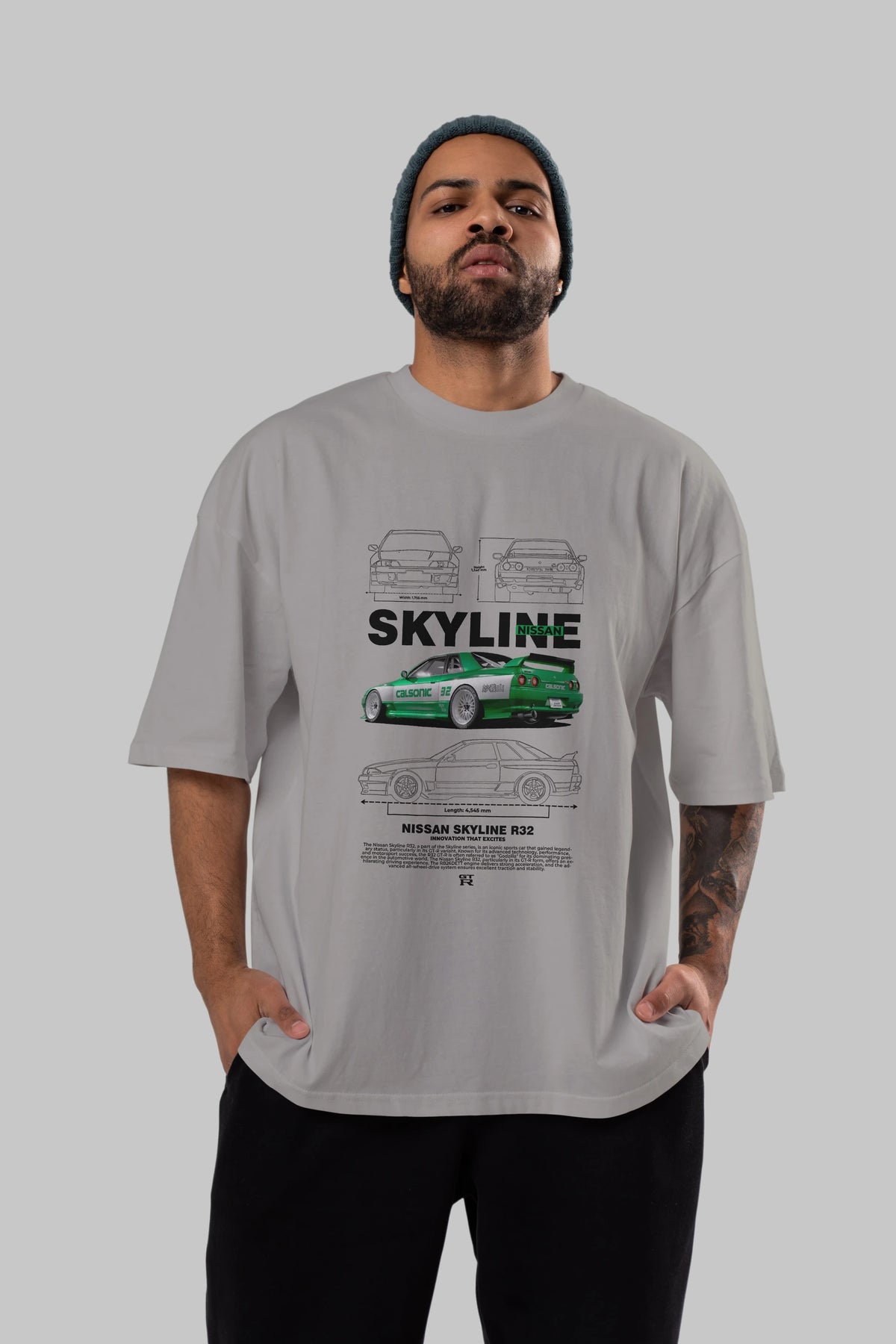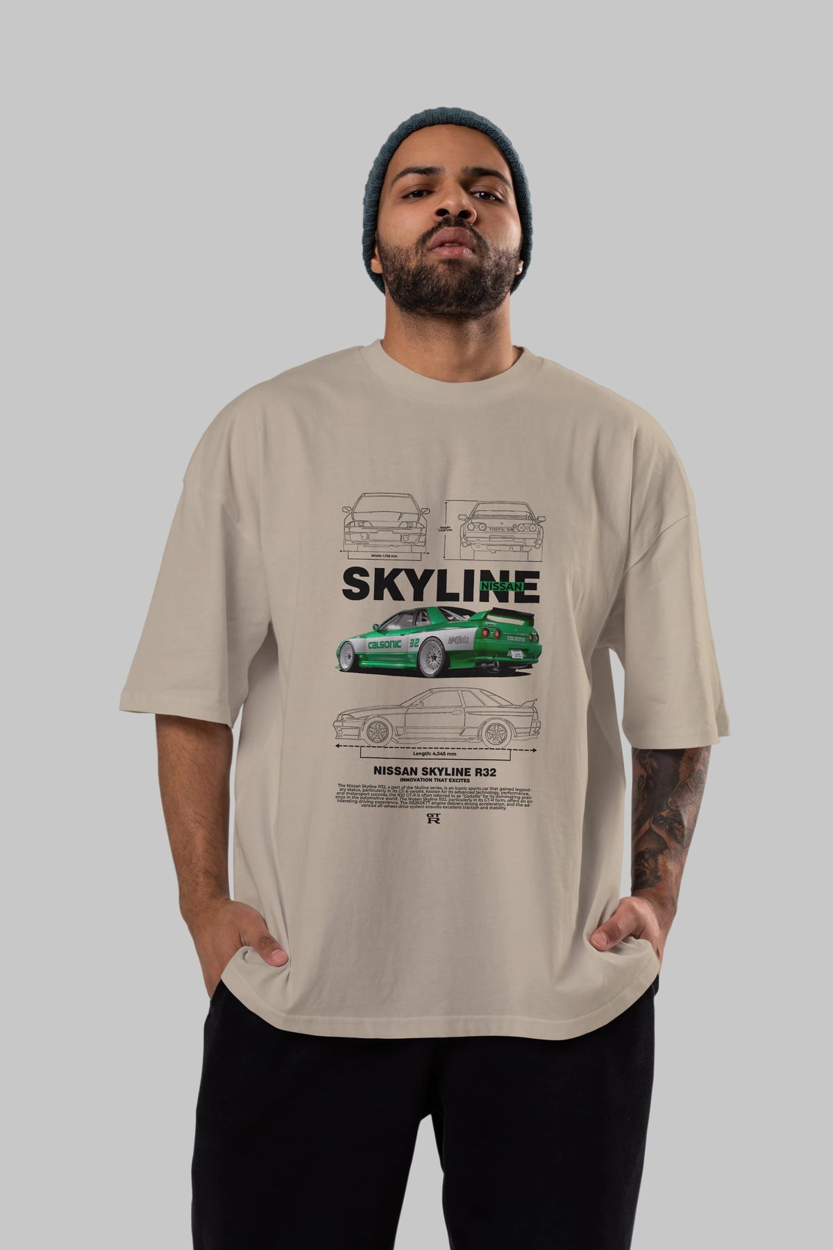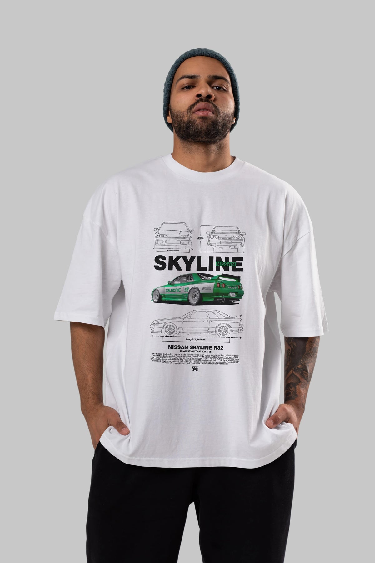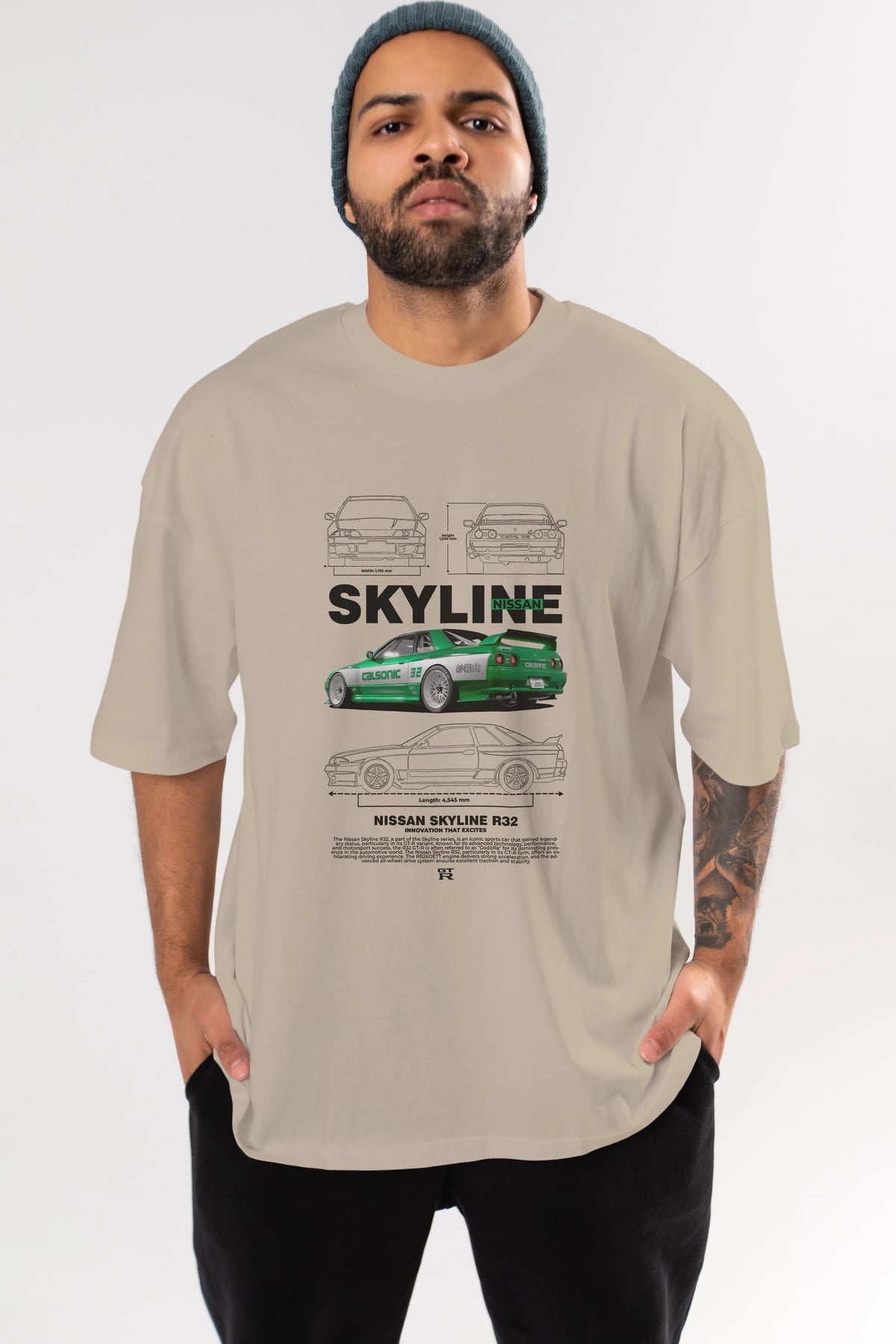NISSAN SKYLINE R32 Ön Baskılı Oversize t-shirt Erkek Kadın Unisex %100 Pamuk Bisiklet Yaka tişort