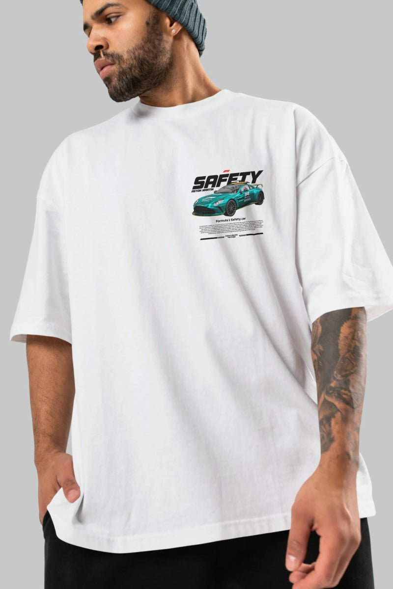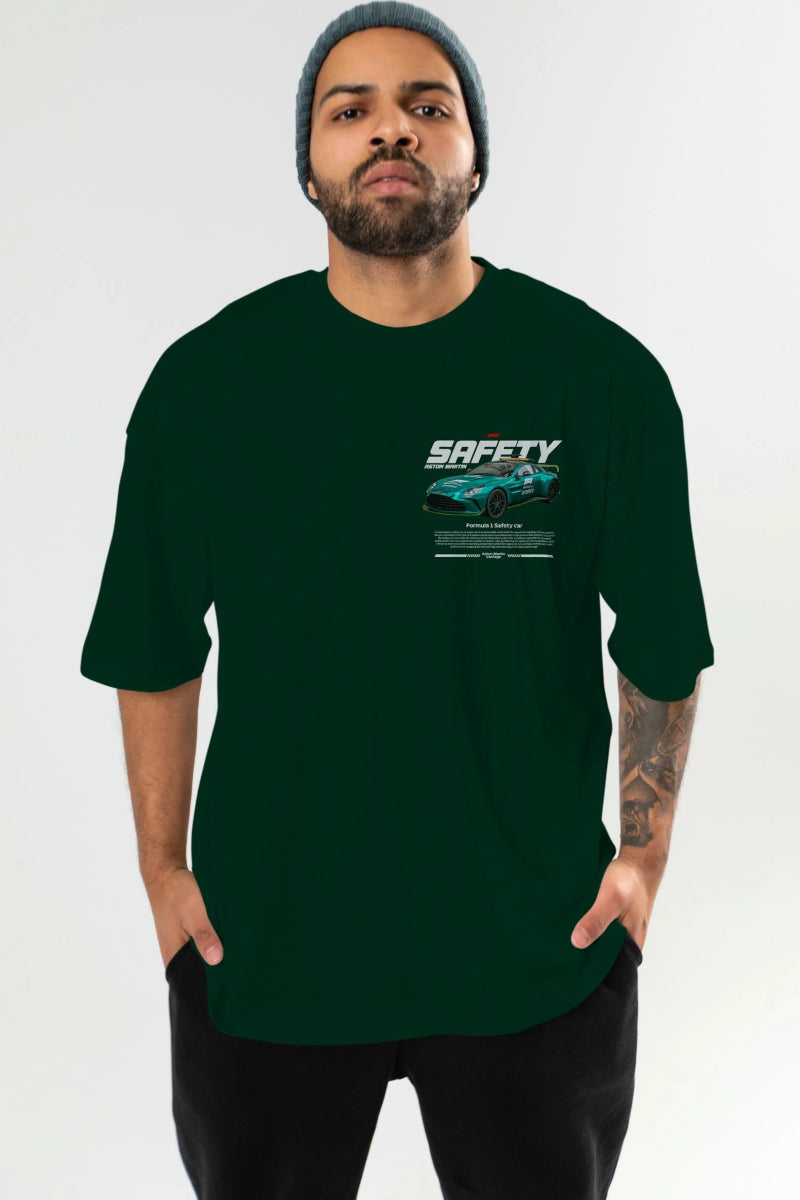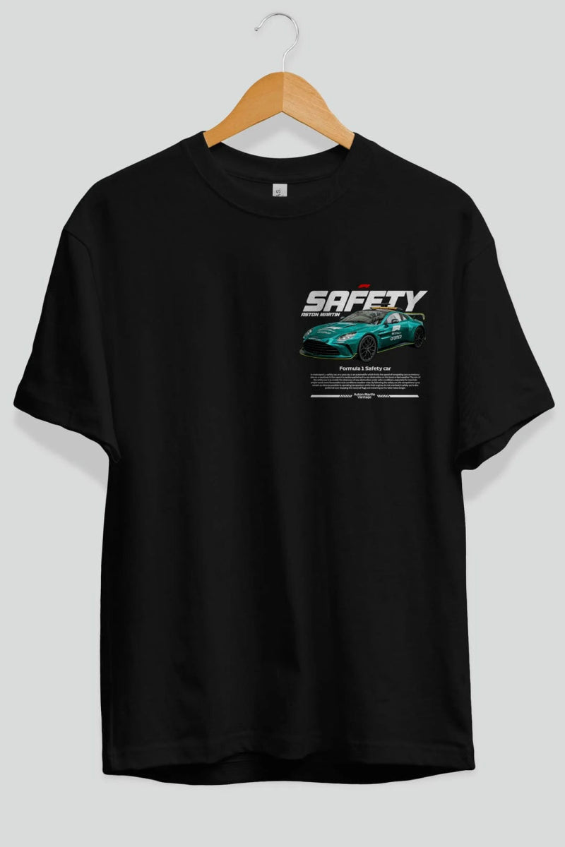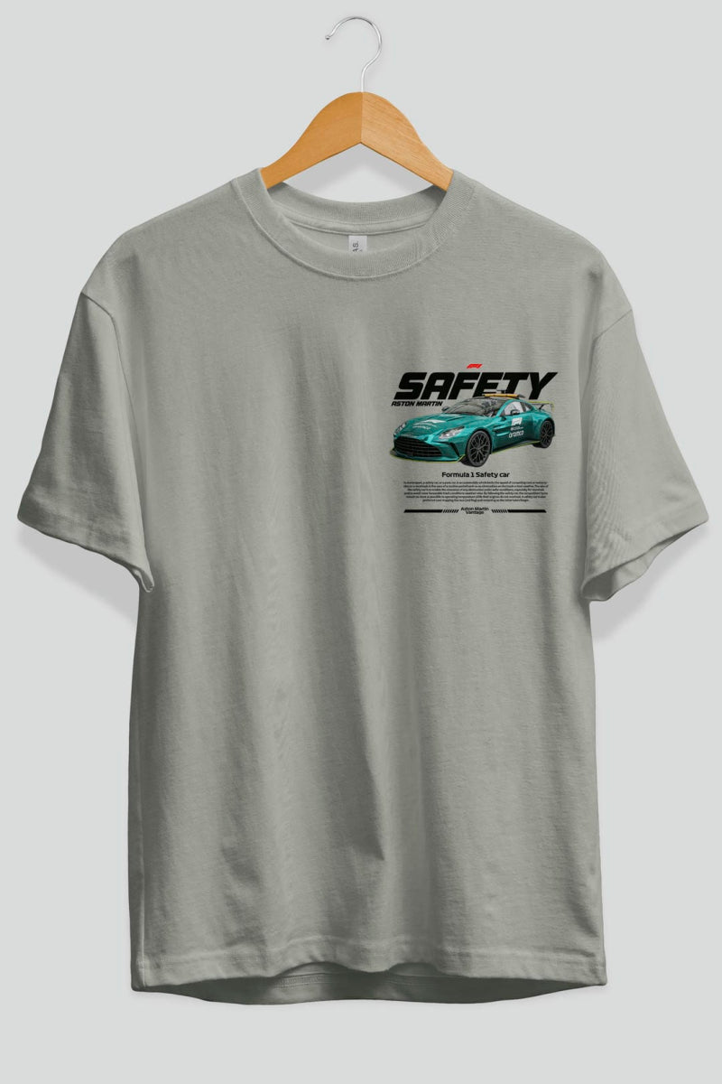 safety car f1 Ön Sol Baskılı Oversize t-shirt Erkek Kadın Unisex %100 Pamuk Bisiklet Yaka tişort