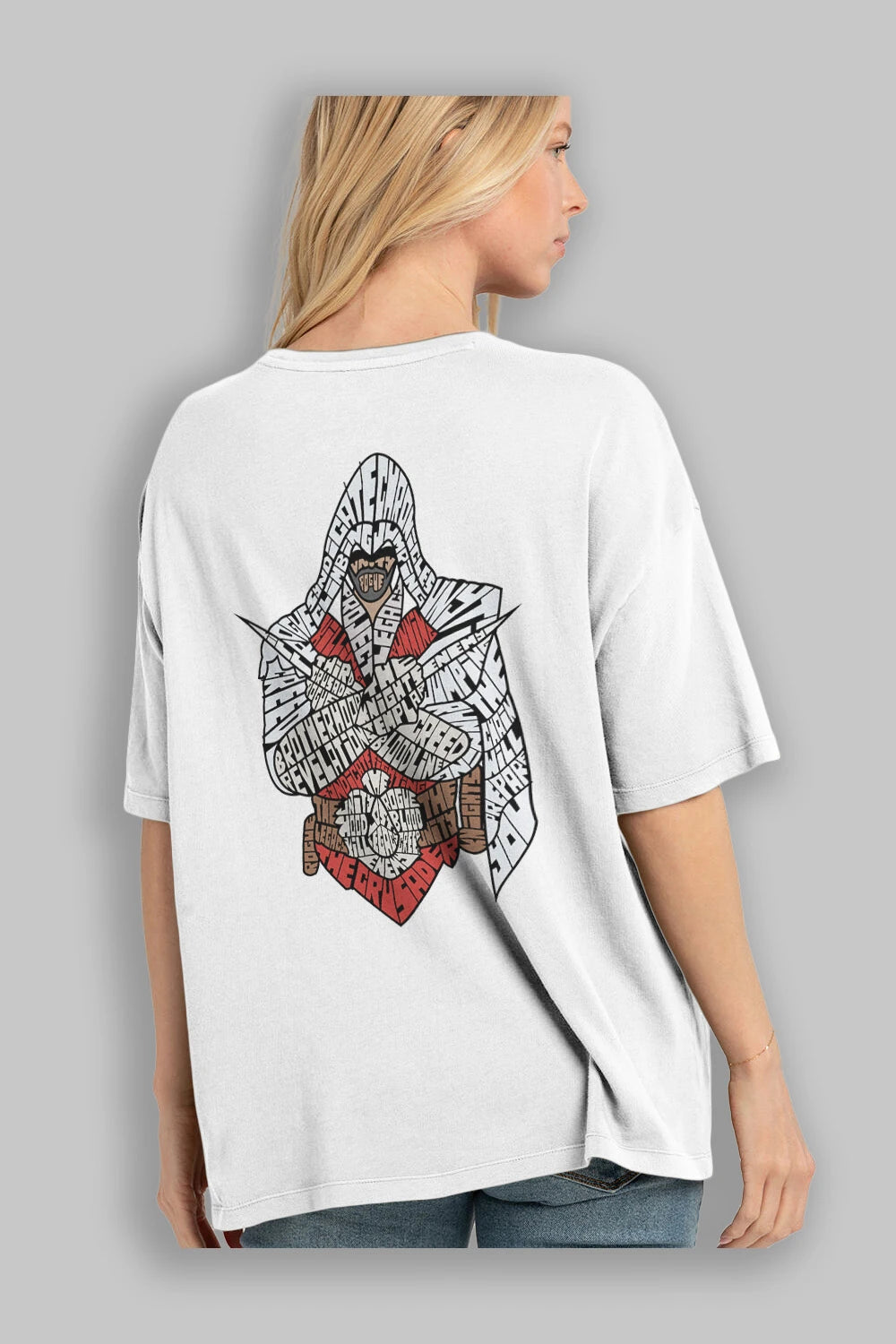 Assassins Arka Baskılı Oversize t-shirt %100 pamuk Erkek Kadın Unisex