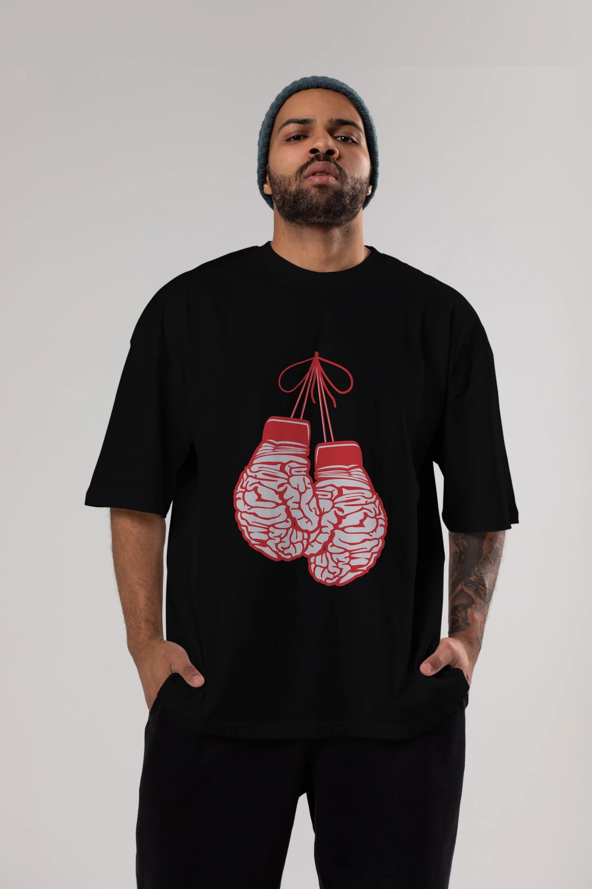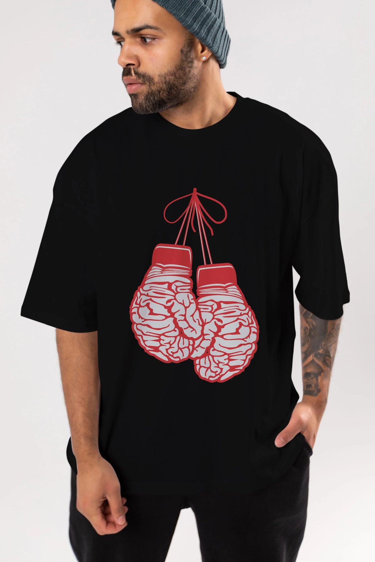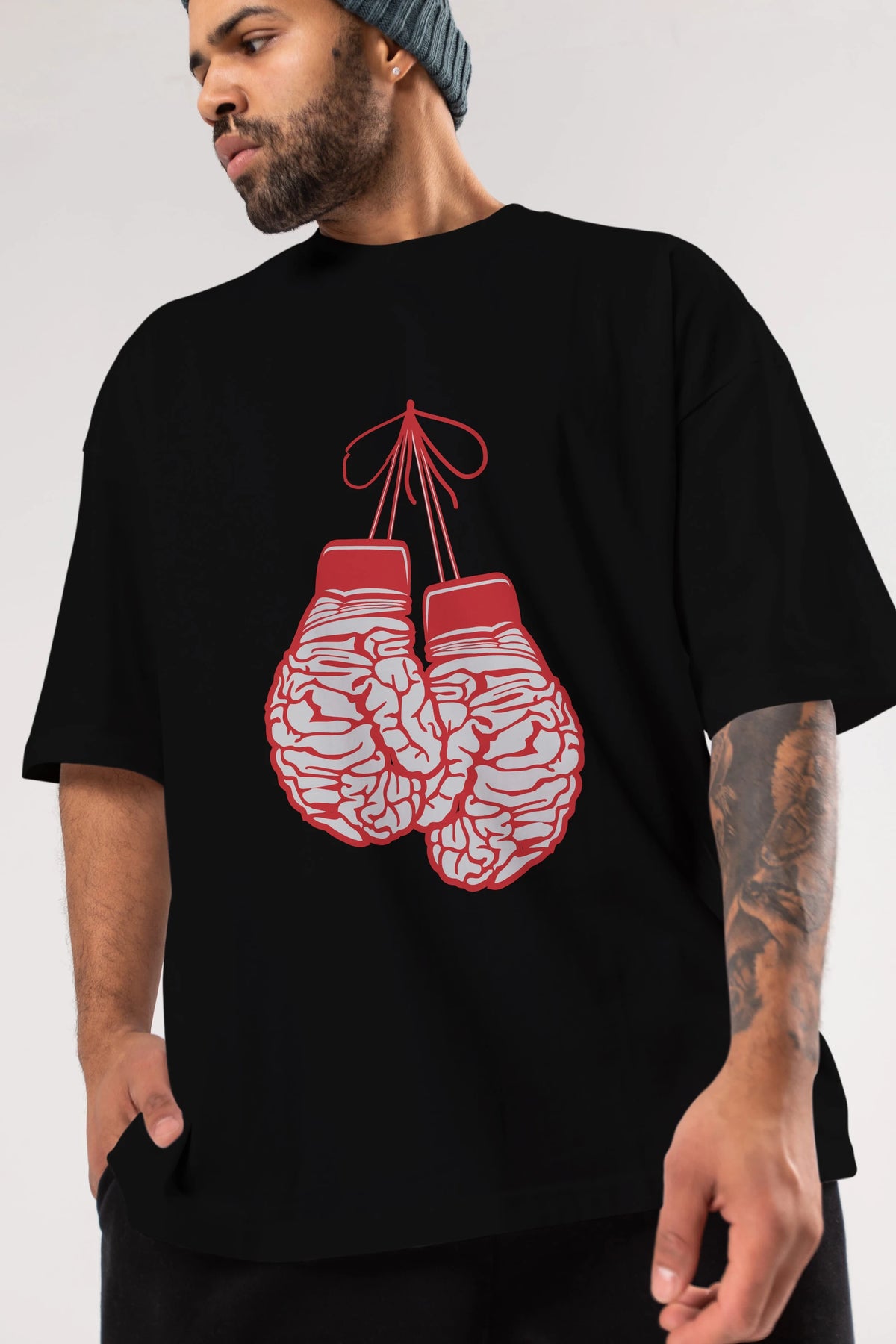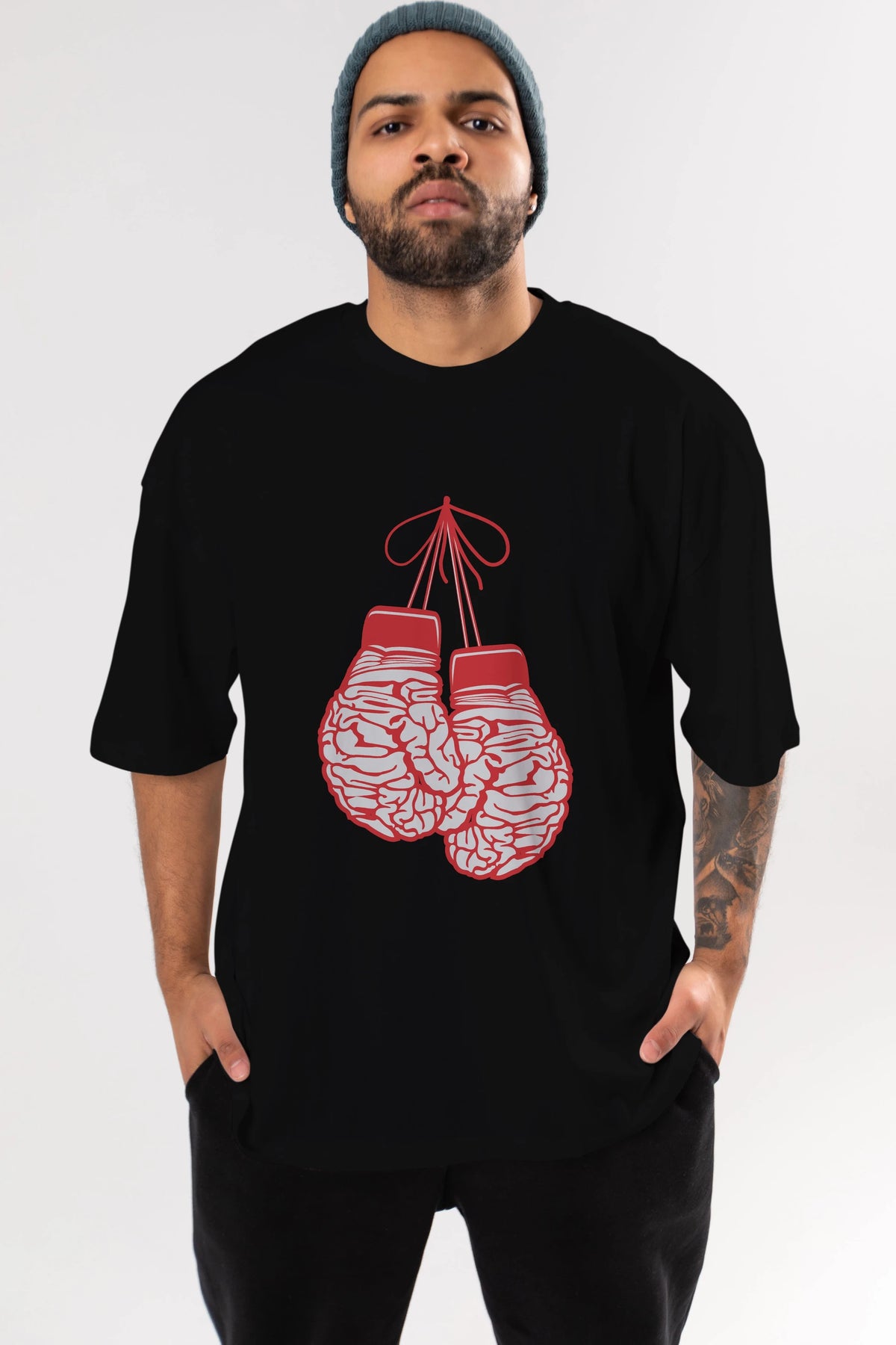 Brain Gloves Ön Baskılı Oversize t-shirt %100 pamuk Erkek Kadın Unisex