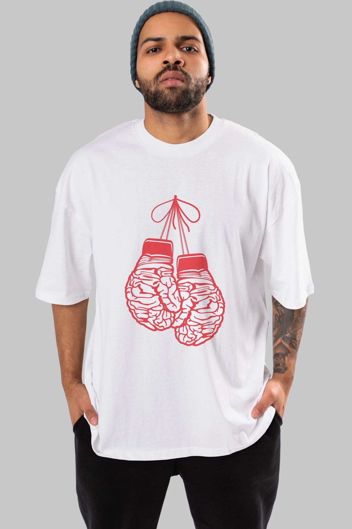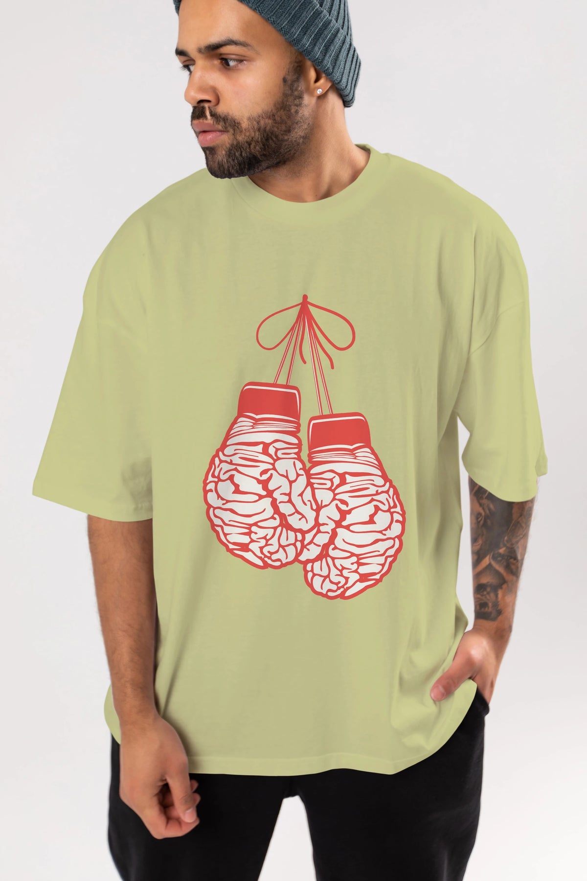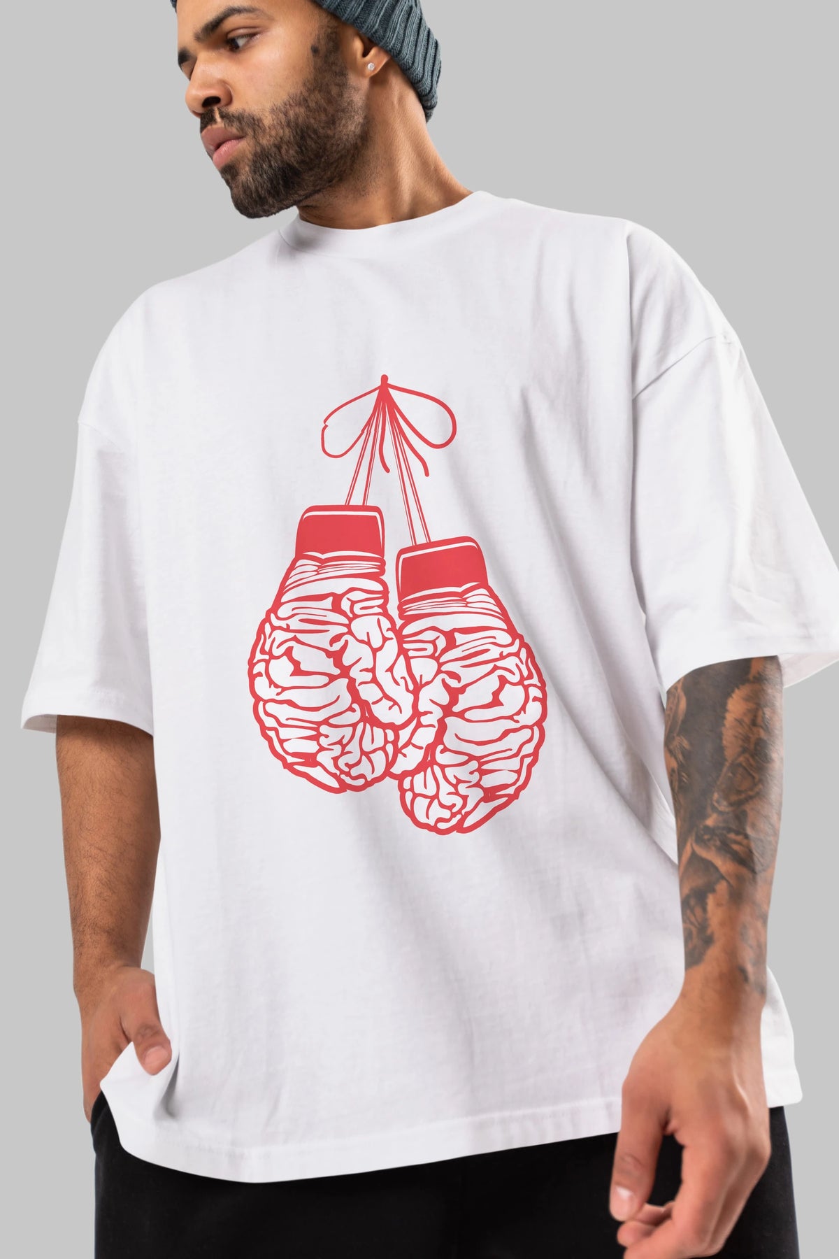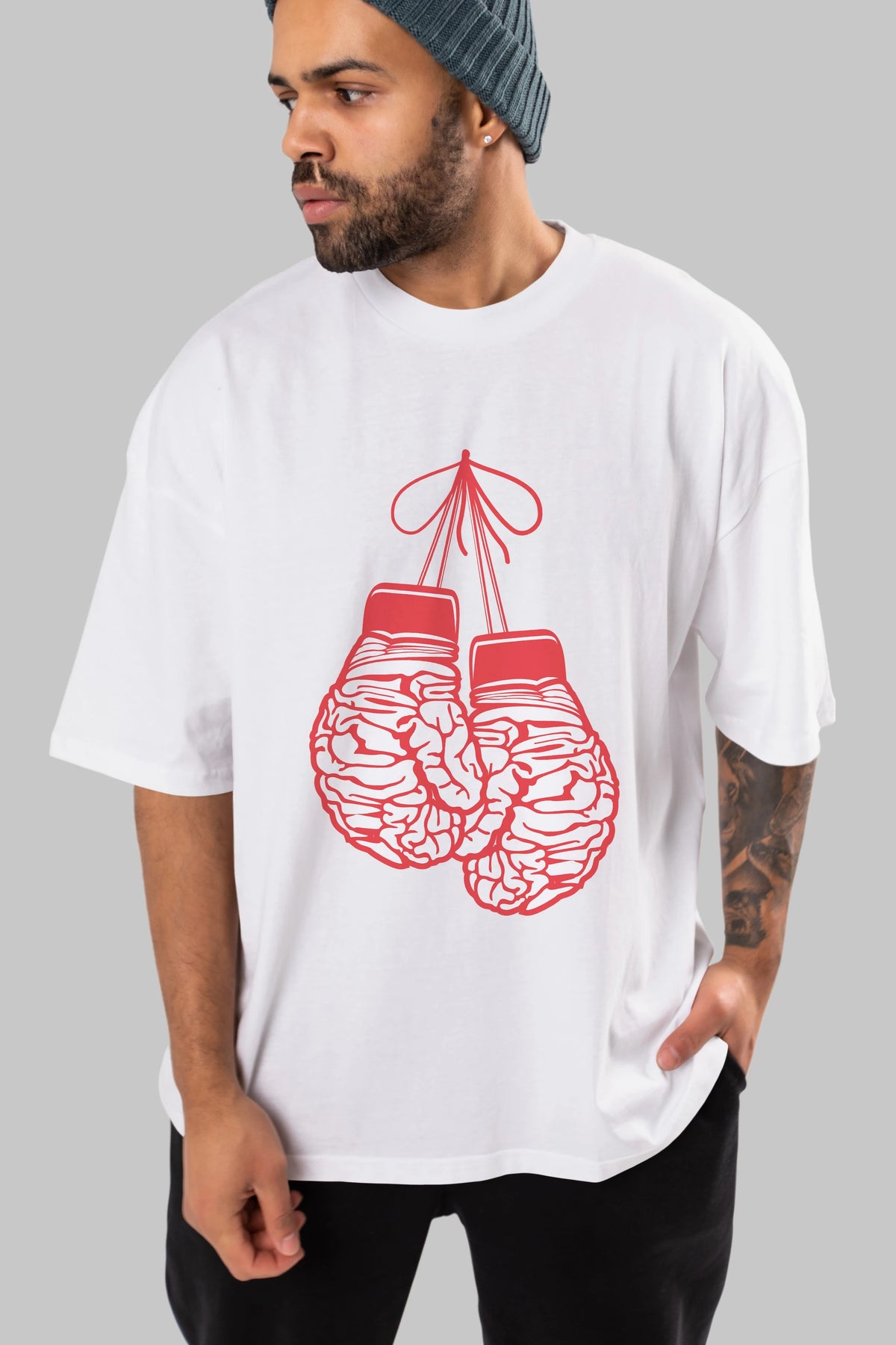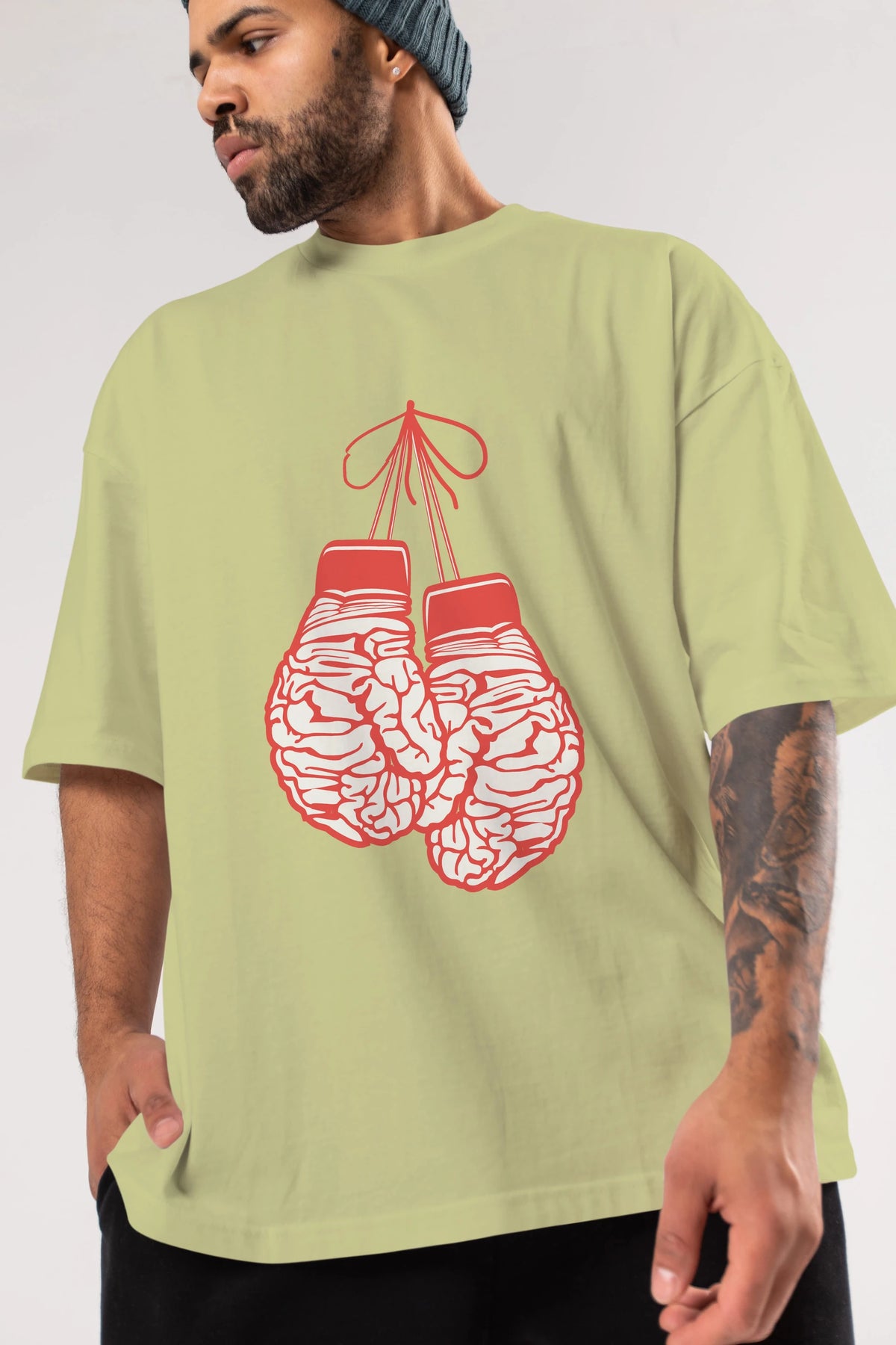Brain Gloves Ön Baskılı Oversize t-shirt %100 pamuk Erkek Kadın Unisex