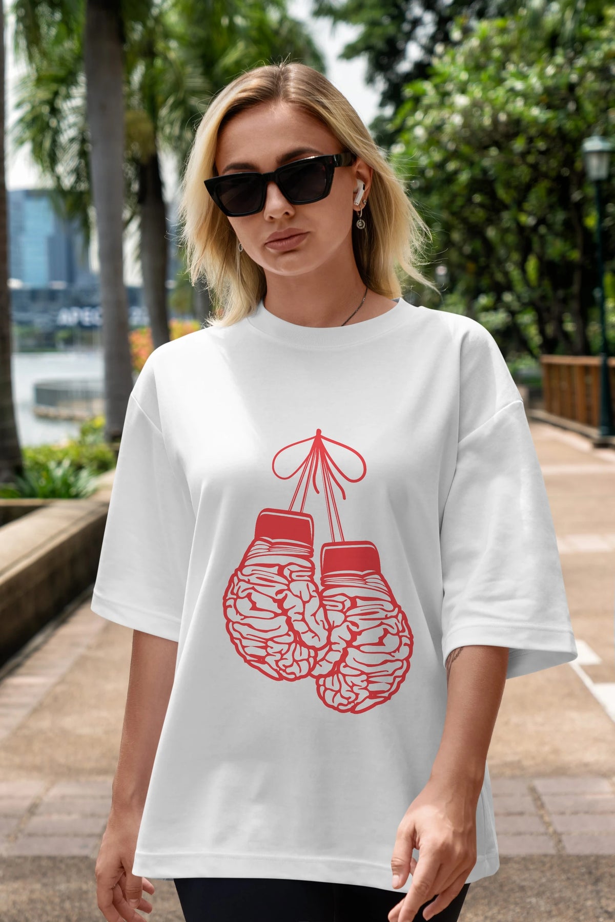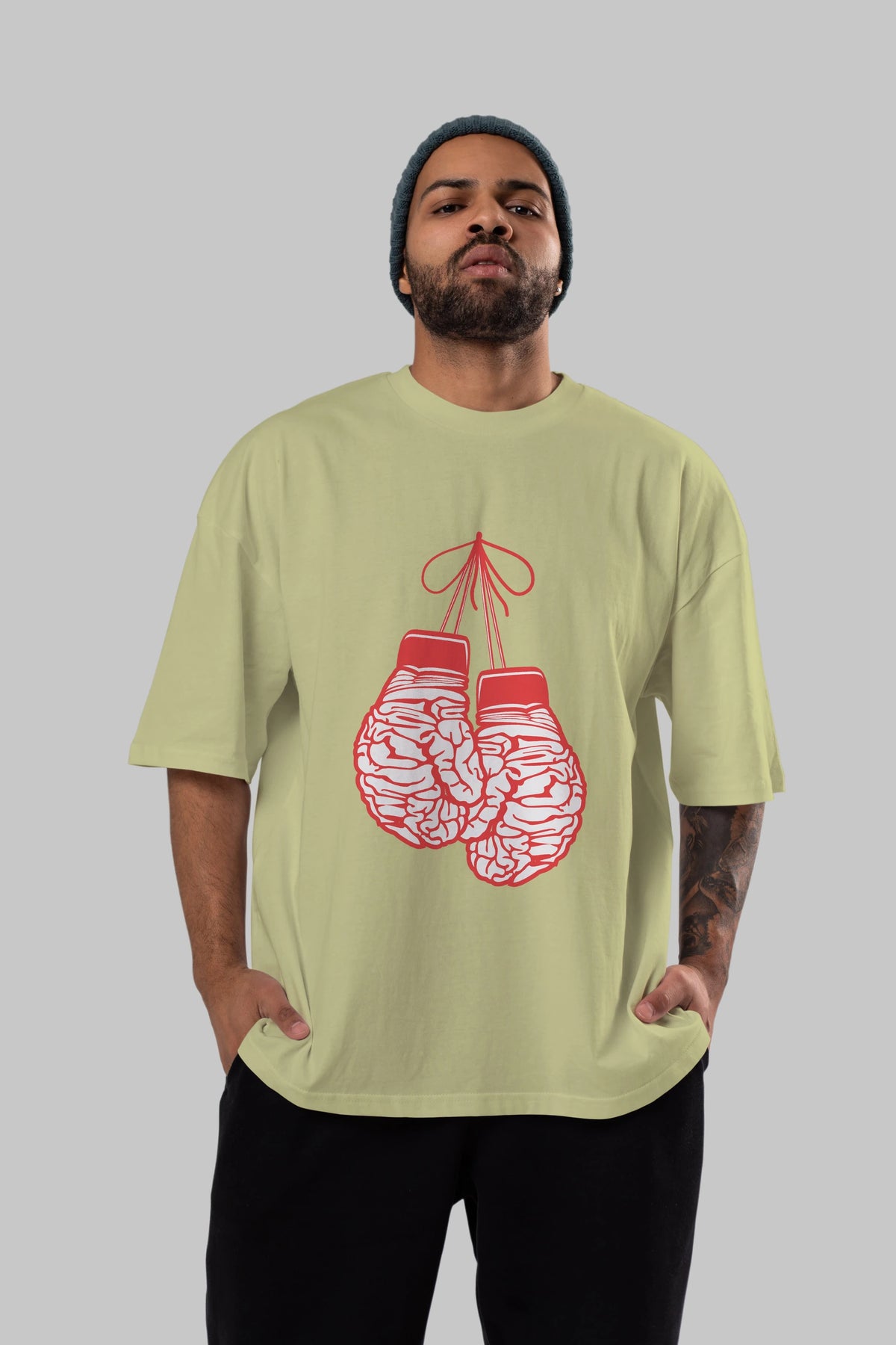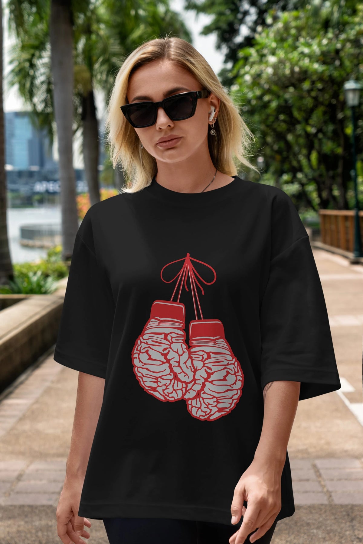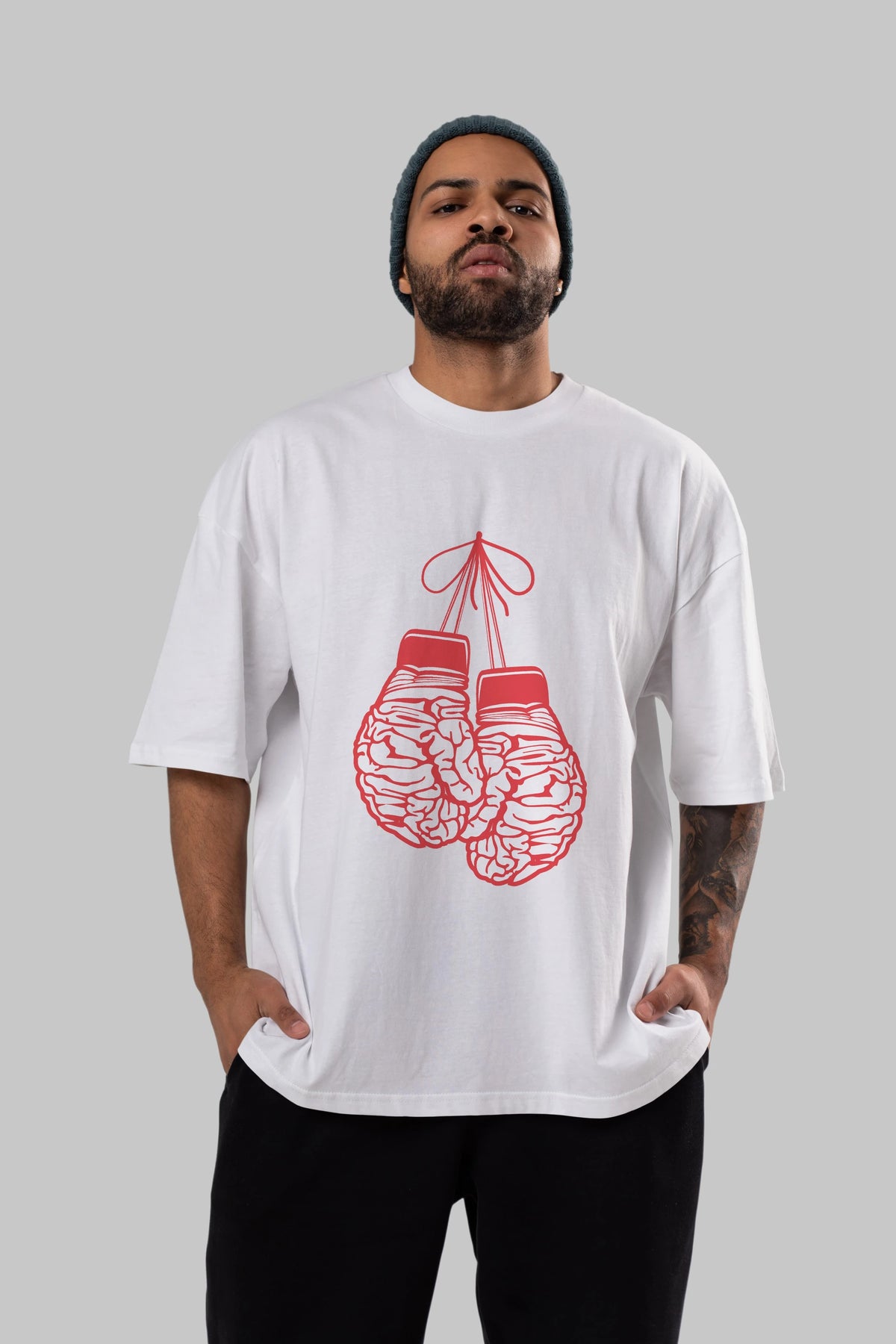 Brain Gloves Ön Baskılı Oversize t-shirt %100 pamuk Erkek Kadın Unisex