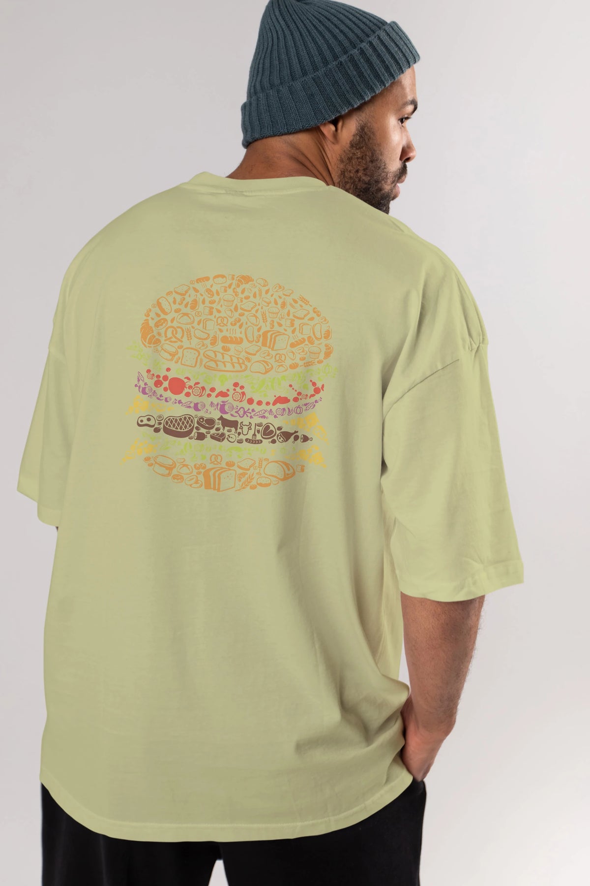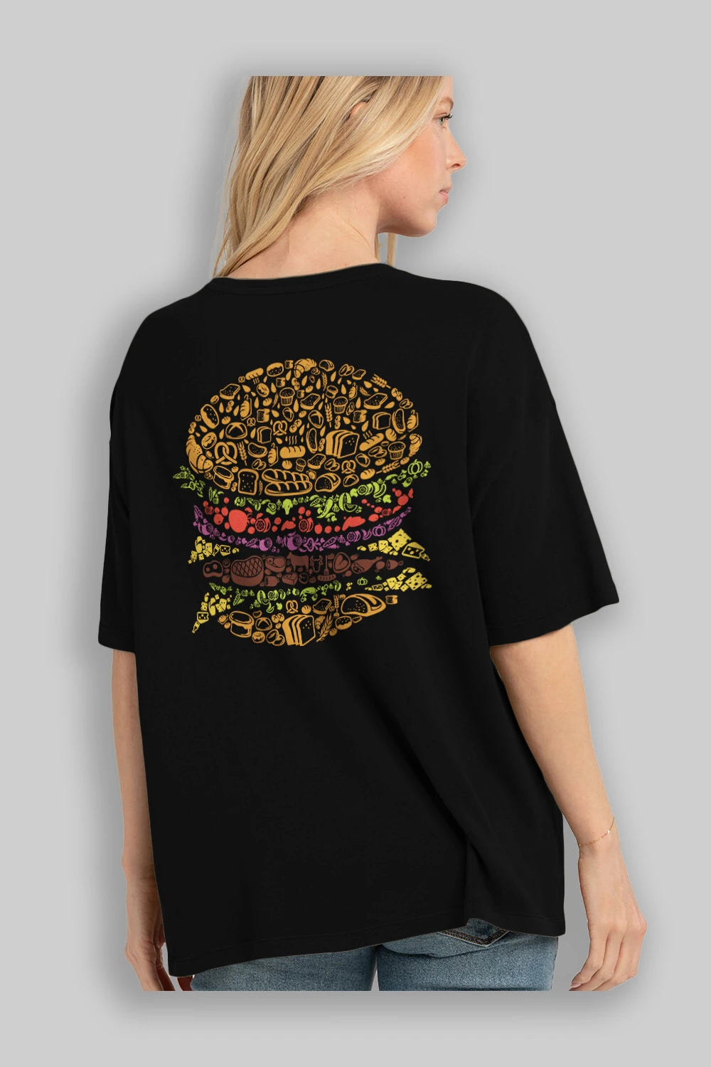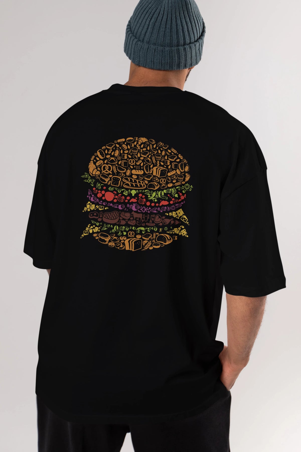 Burger Arka Baskılı Oversize t-shirt %100 pamuk Erkek Kadın Unisex