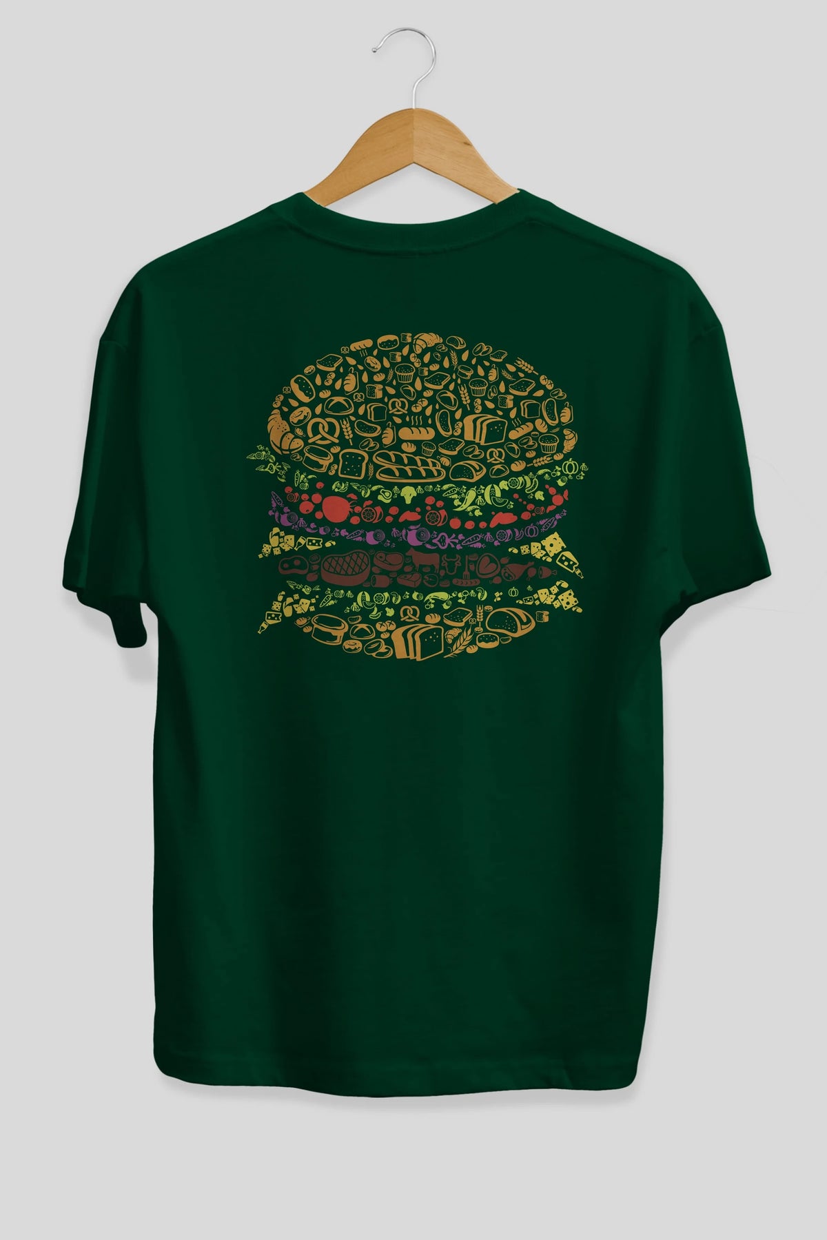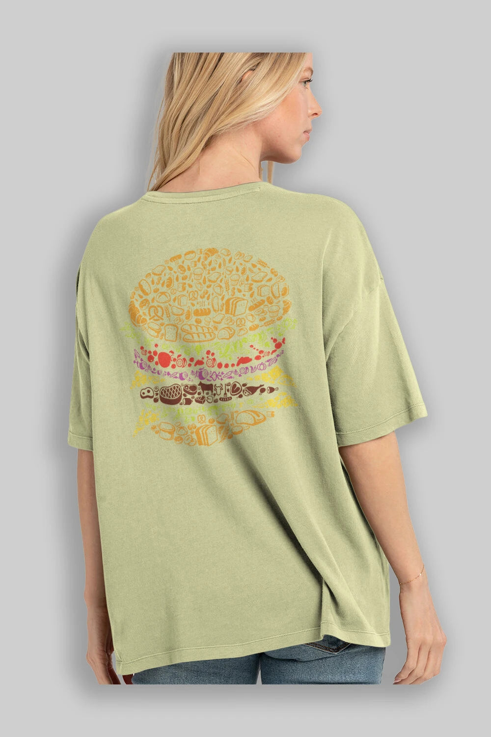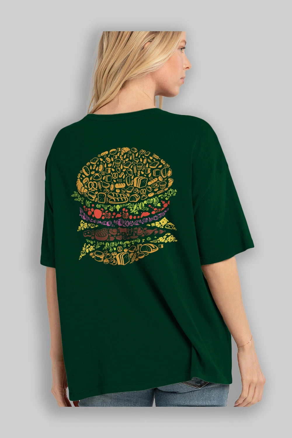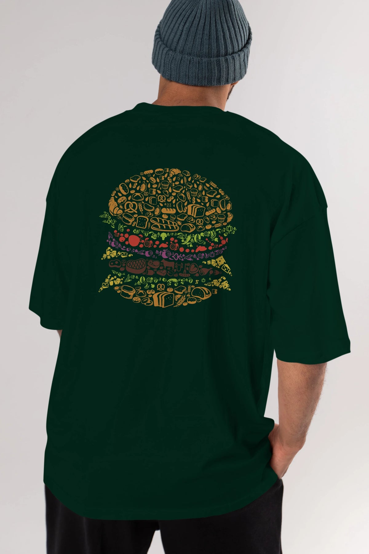Burger Arka Baskılı Oversize t-shirt %100 pamuk Erkek Kadın Unisex