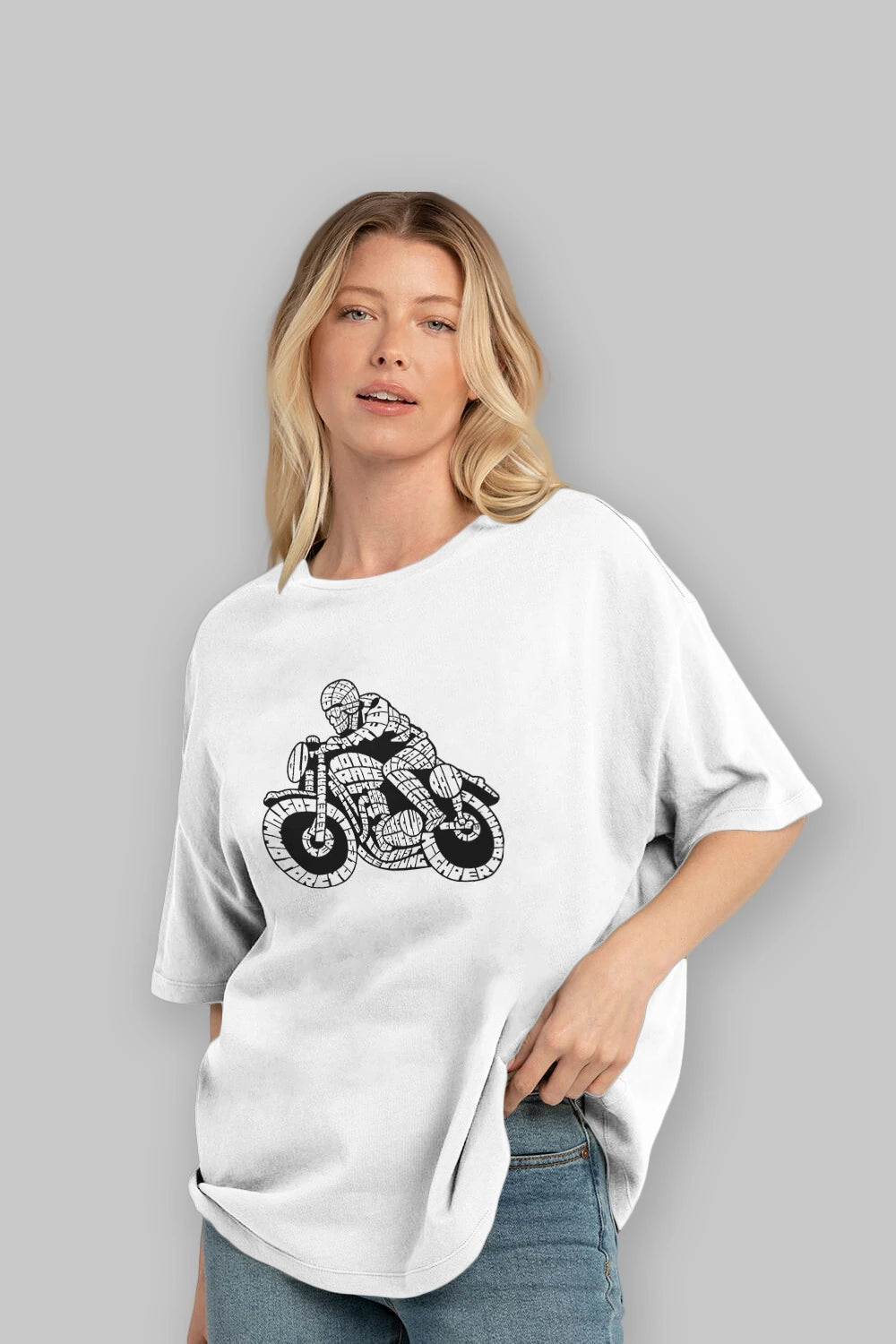 Hem erkekler hem de kadınlar için uygun, taze, modern bir baskıya sahip baskılı oversize t-shirt.