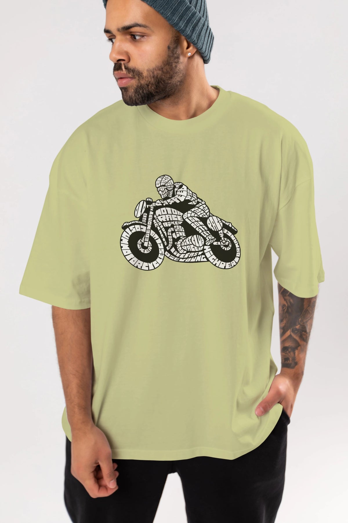 Caferacer Ön Baskılı Oversize t-shirt %100 pamuk Erkek Kadın Unisex
