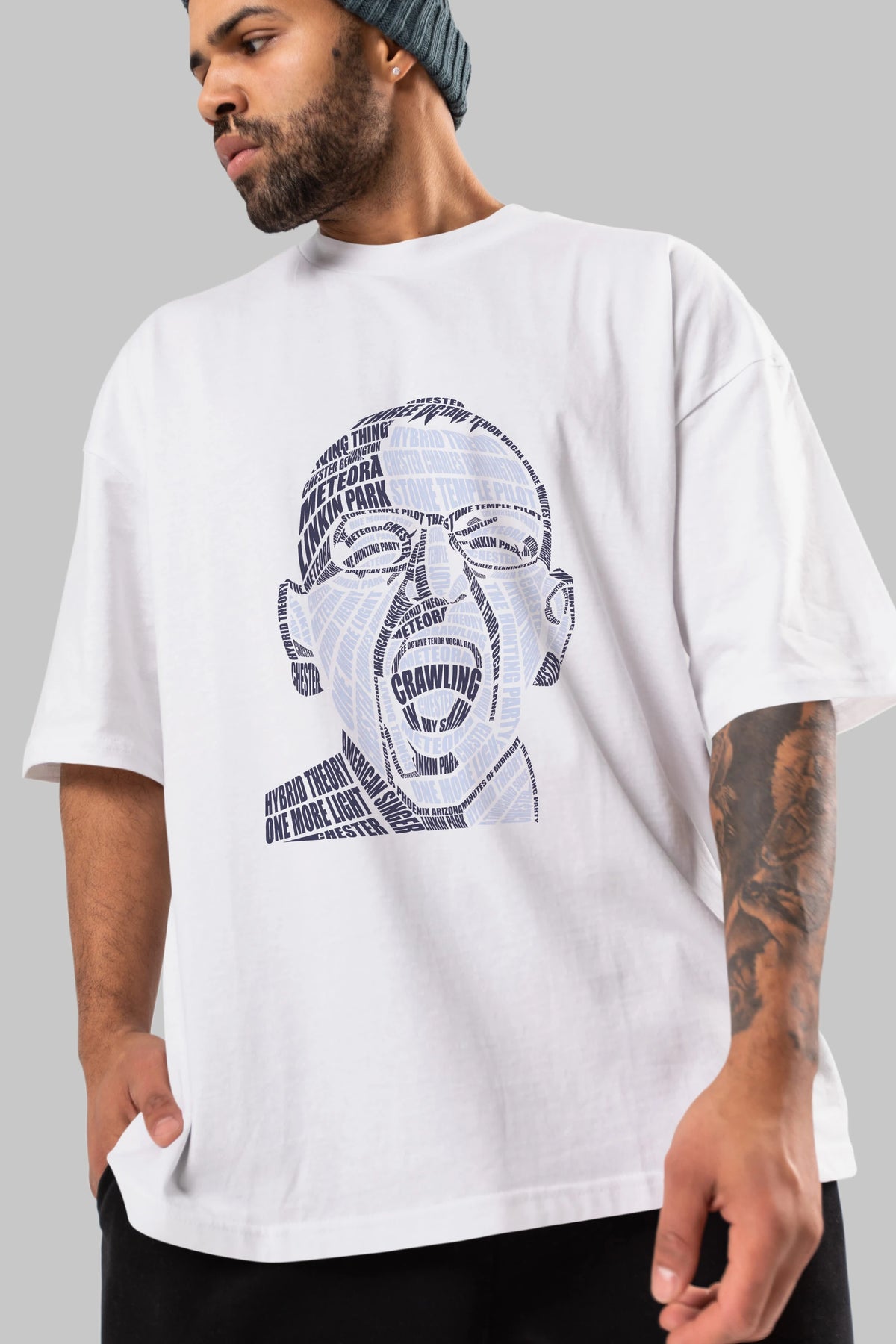 Chester Bennington Calligram Ön Baskılı Oversize t-shirt %100 pamuk Erkek Kadın Unisex
