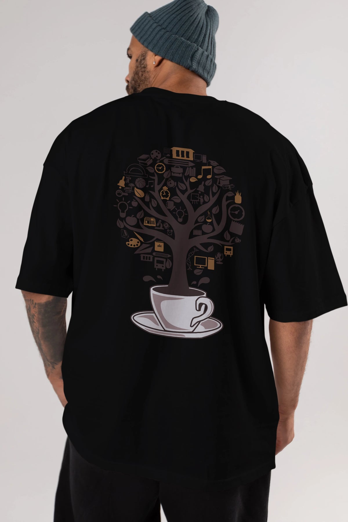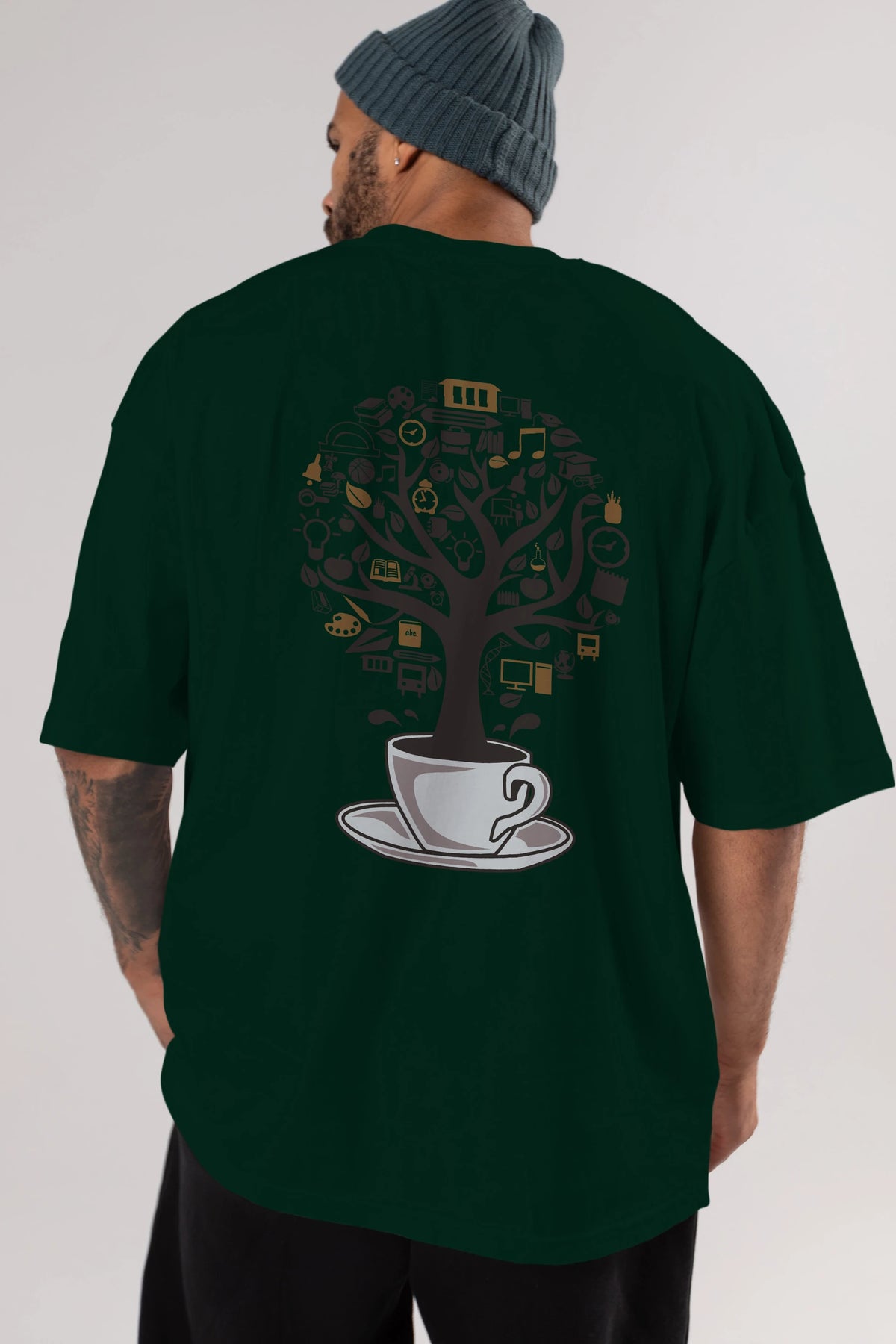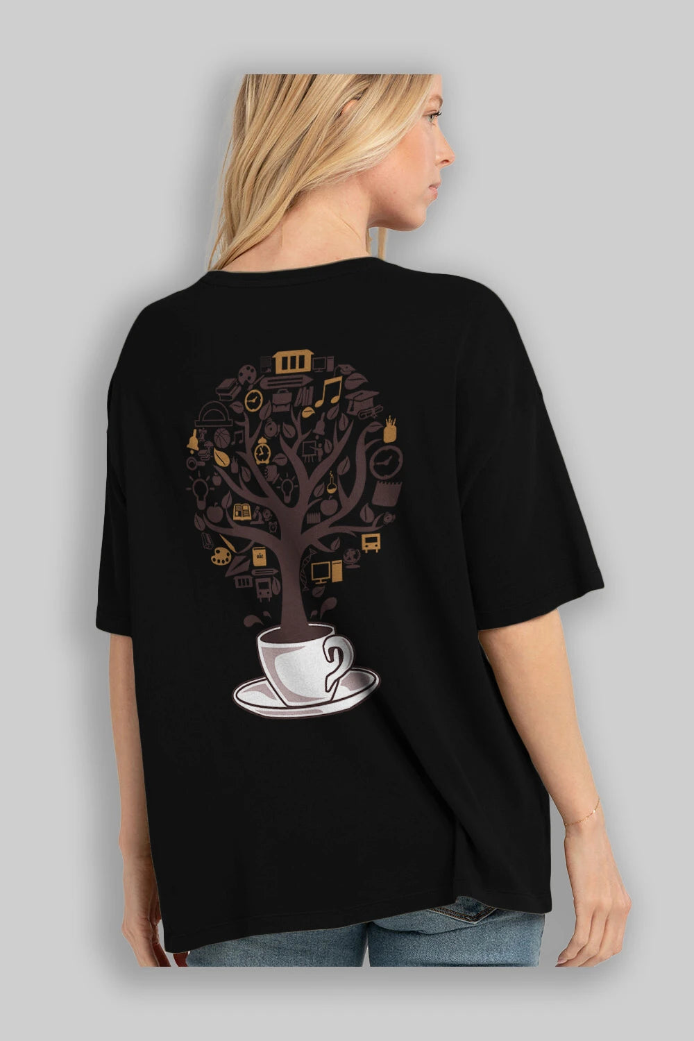 Coffee Tree Arka Baskılı Oversize t-shirt %100 pamuk Erkek Kadın Unisex