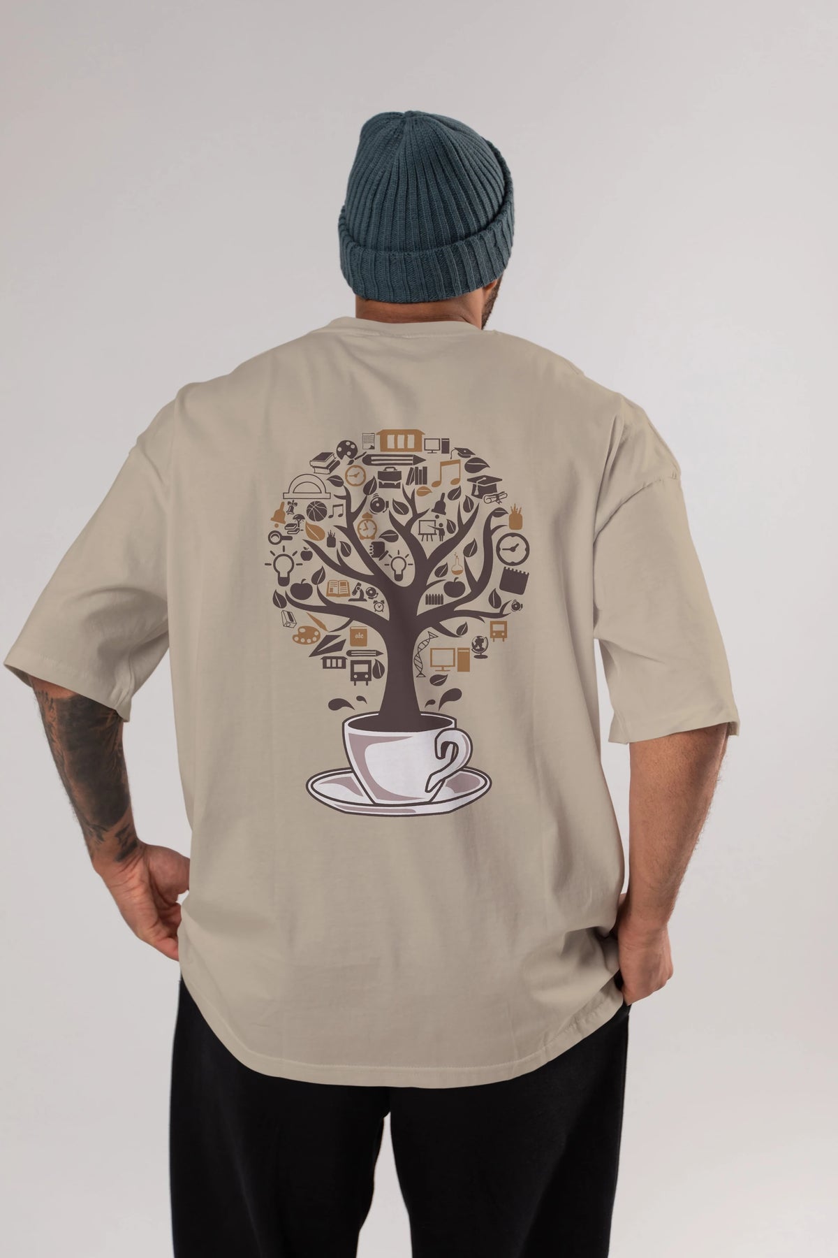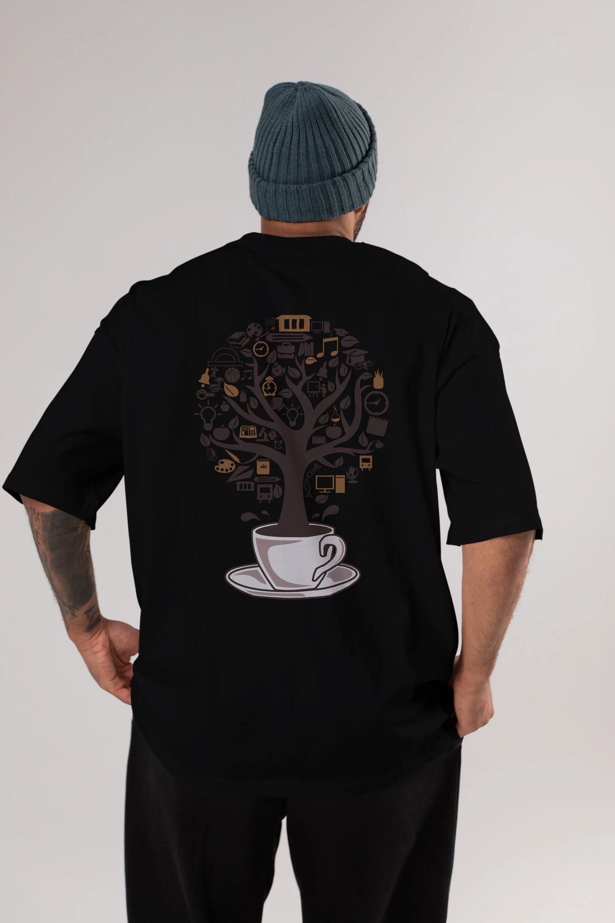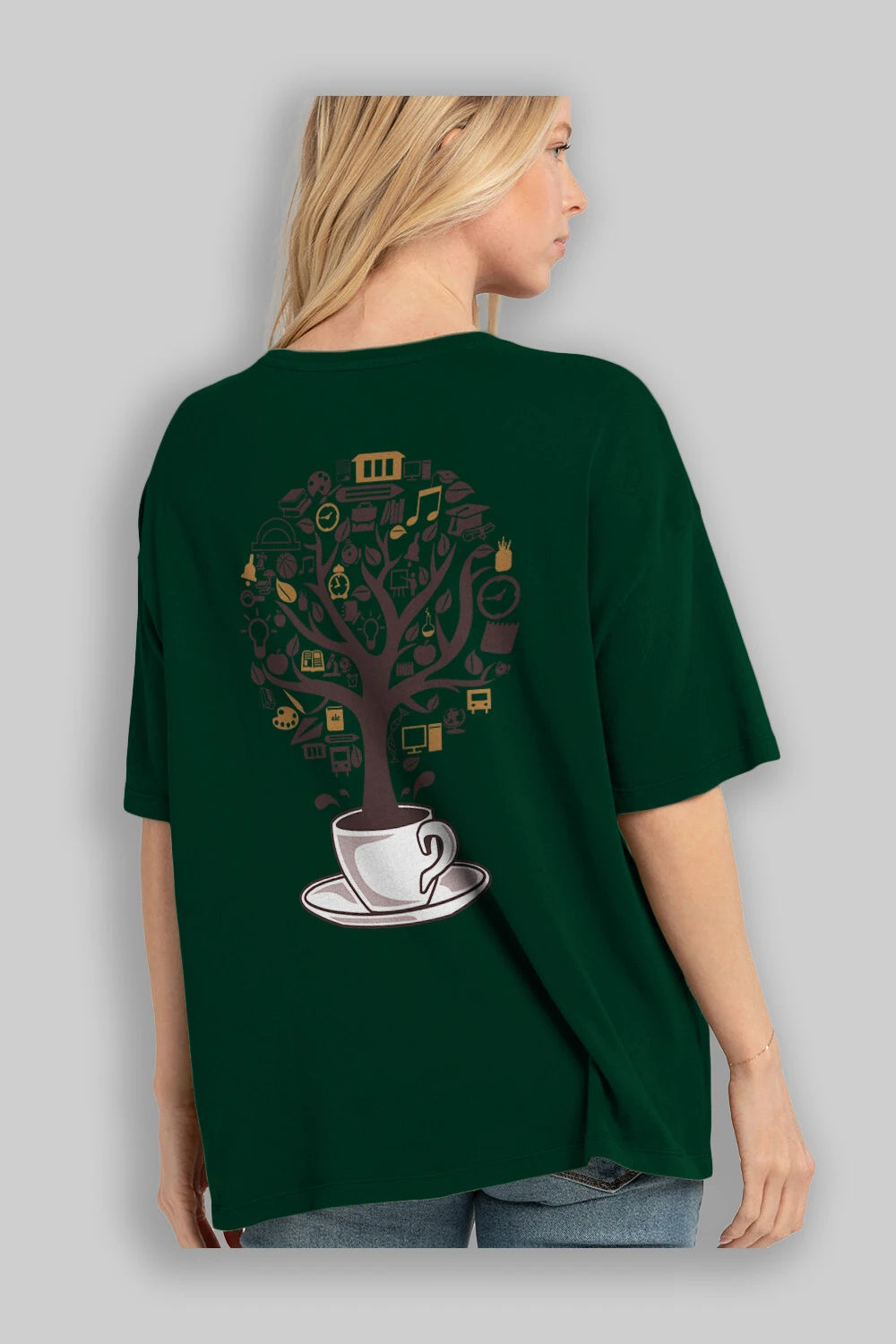 Coffee Tree Arka Baskılı Oversize t-shirt %100 pamuk Erkek Kadın Unisex