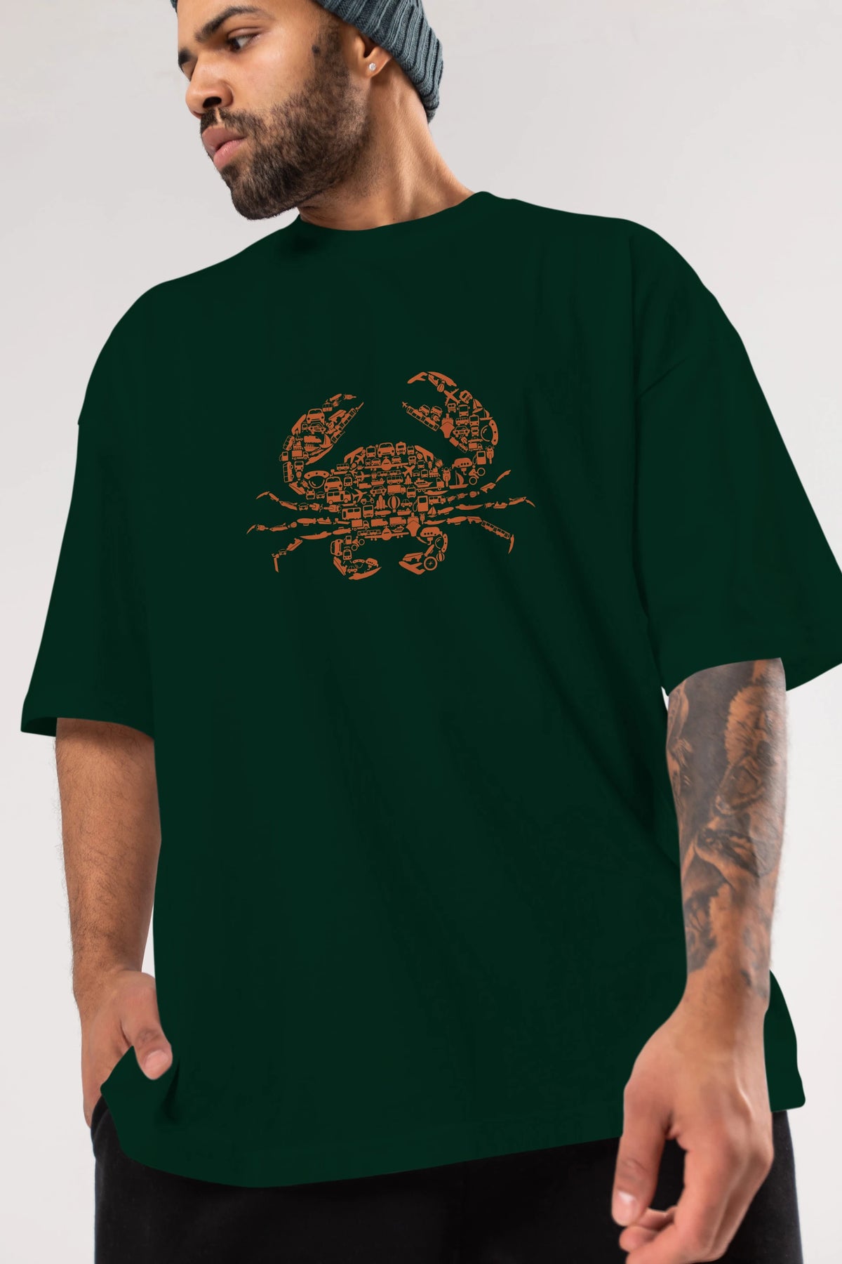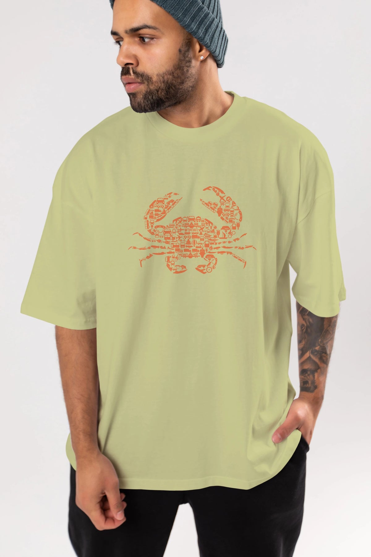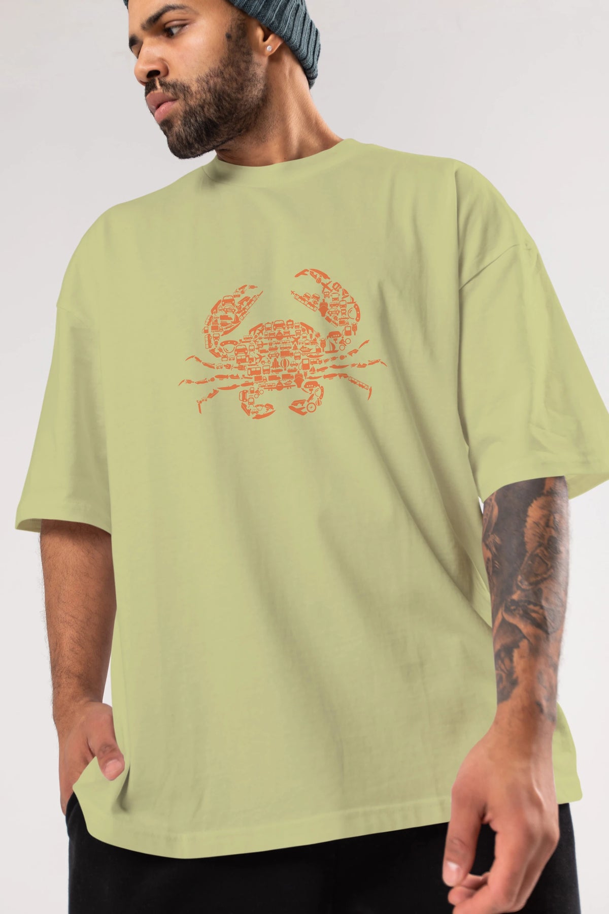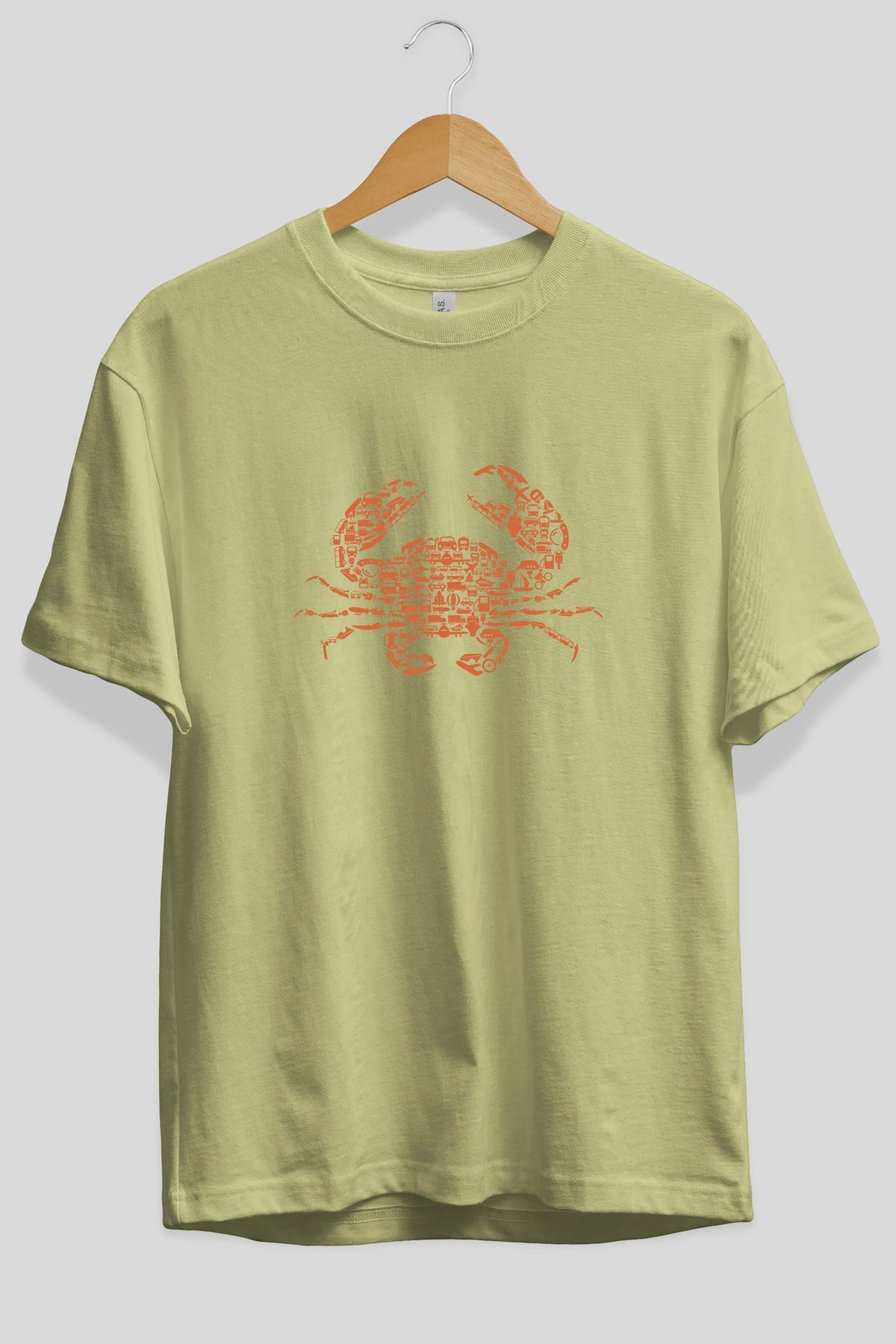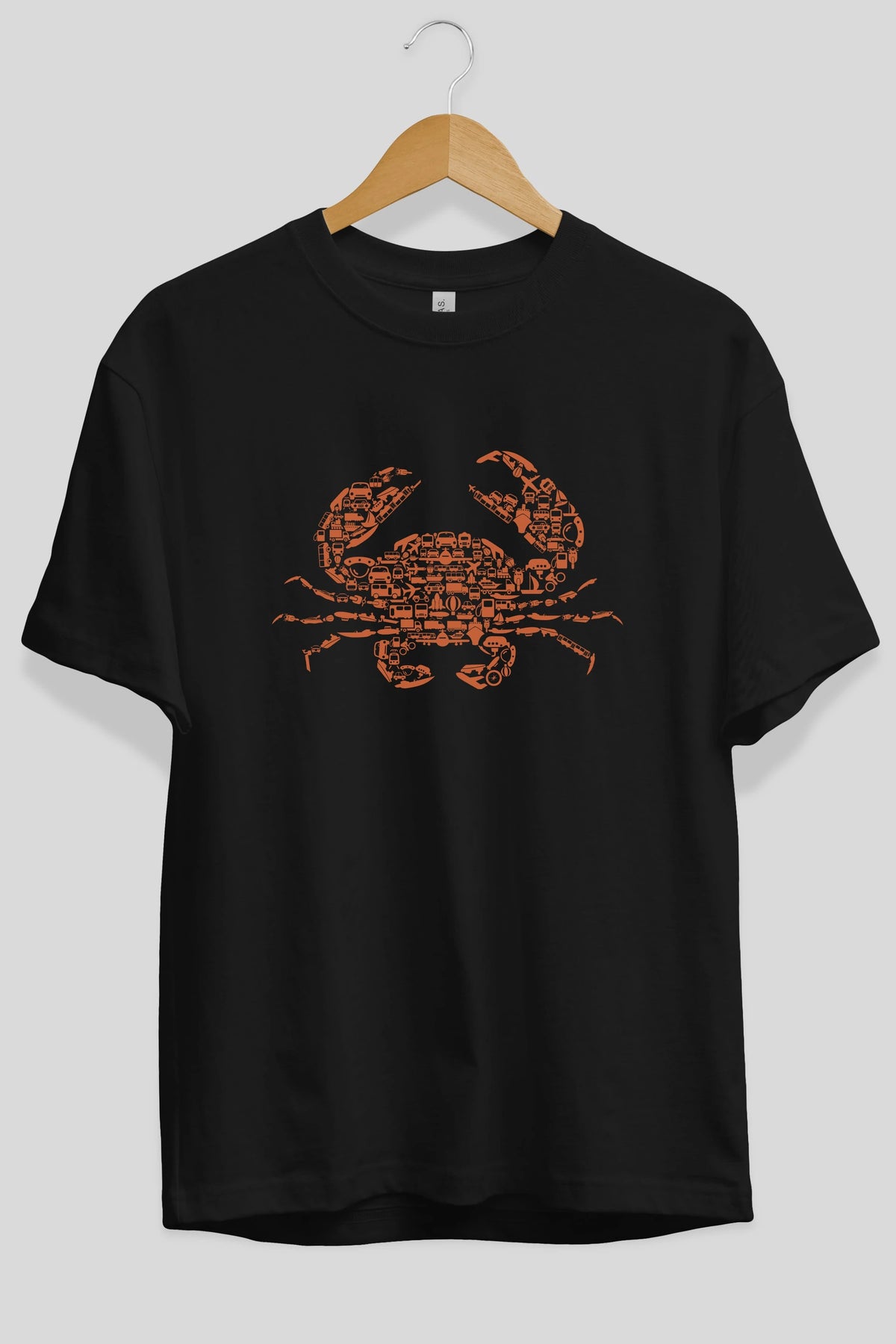 Crab Ön Baskılı Oversize t-shirt %100 pamuk Erkek Kadın Unisex