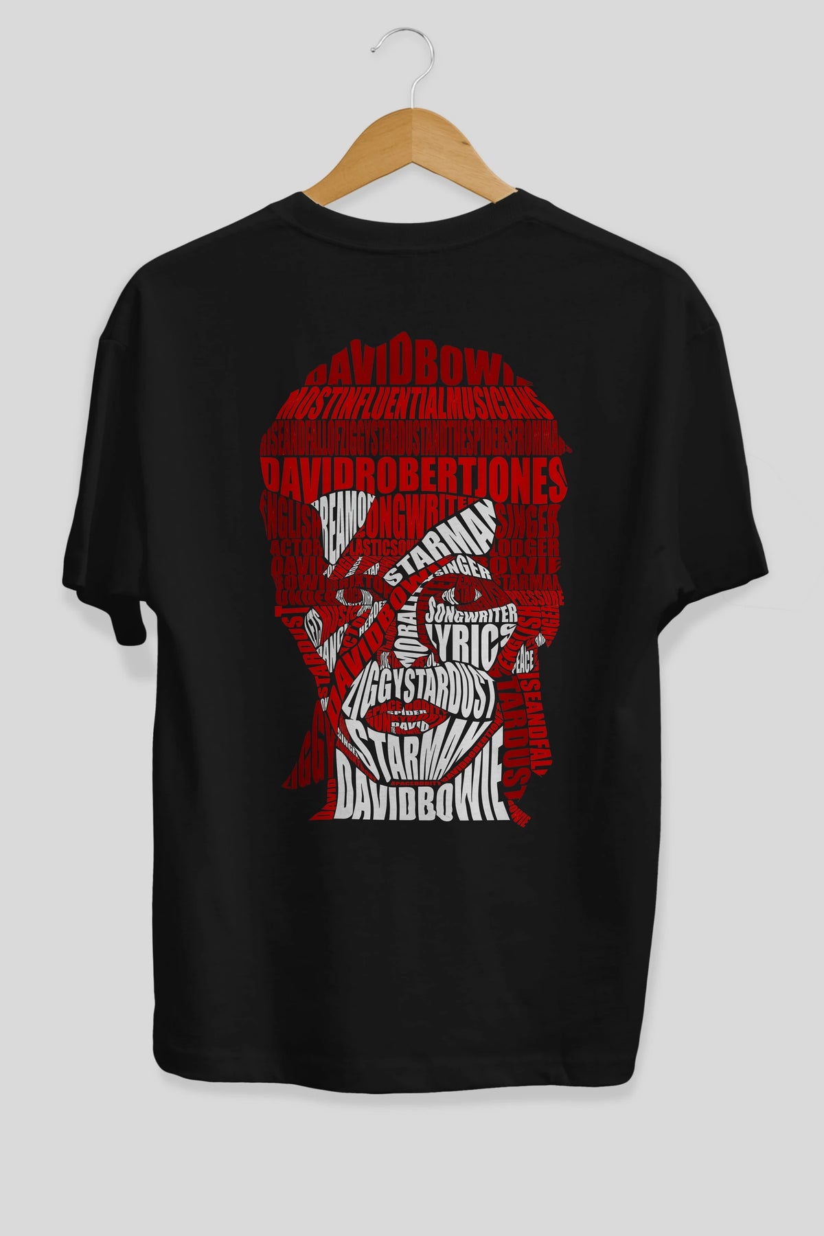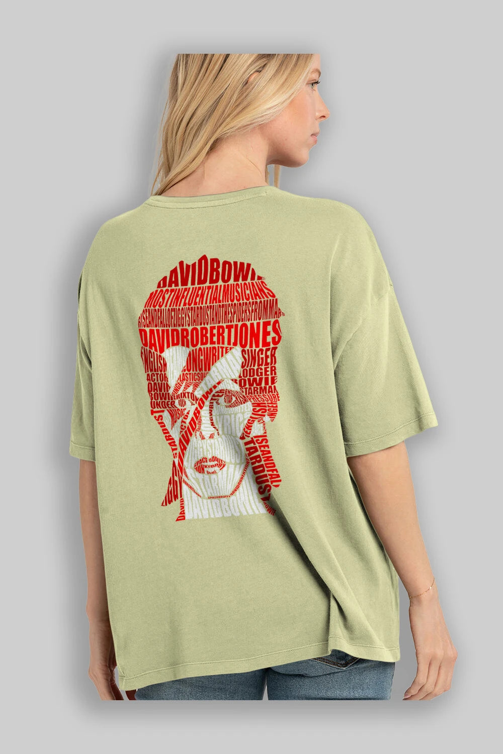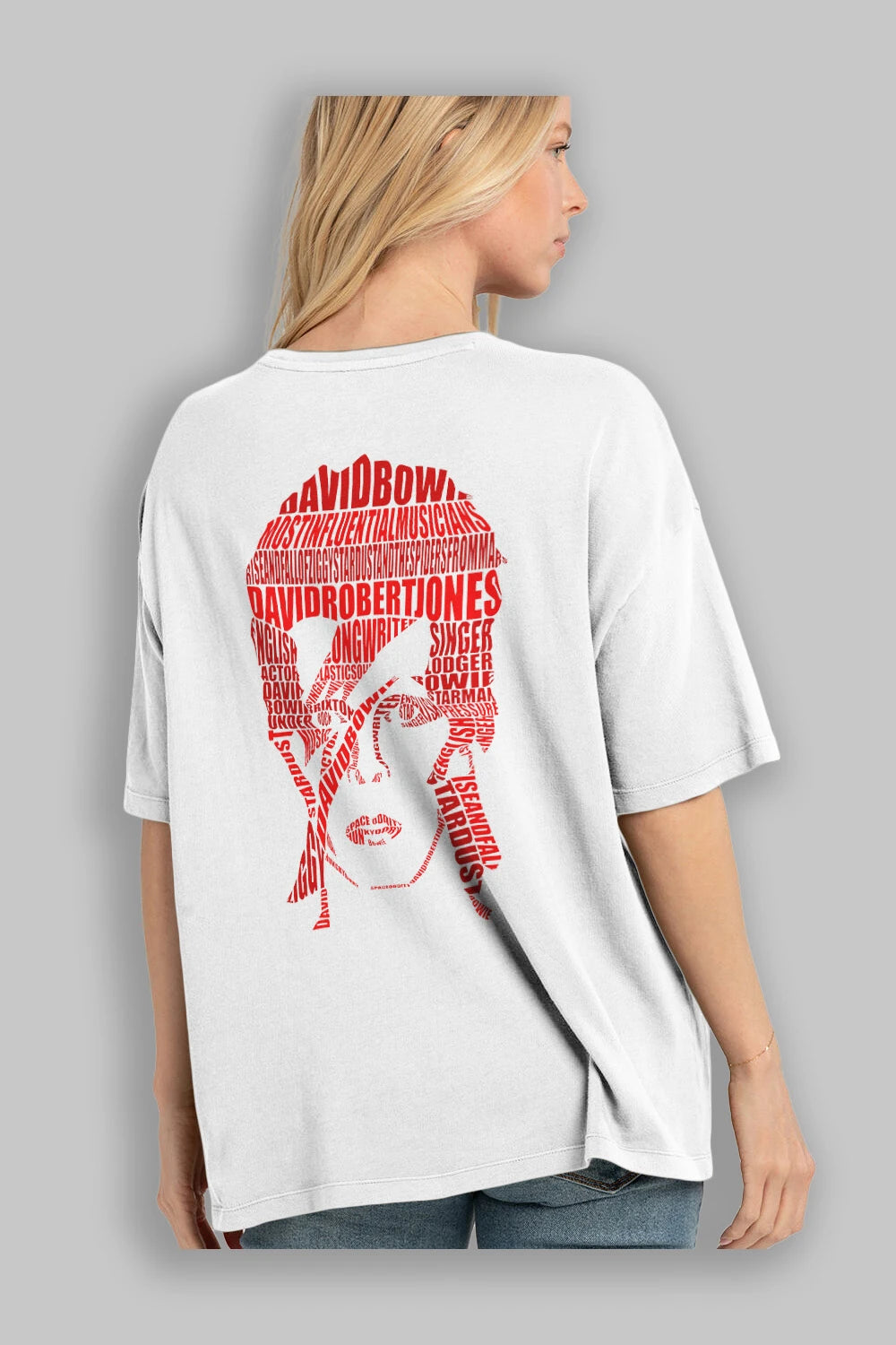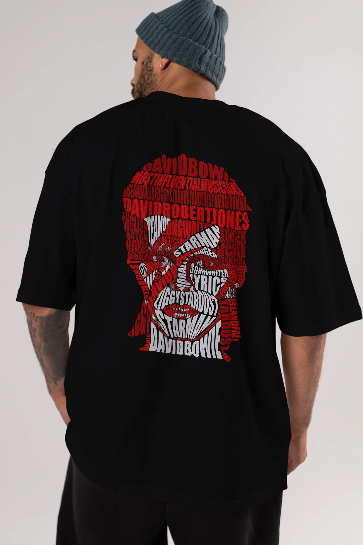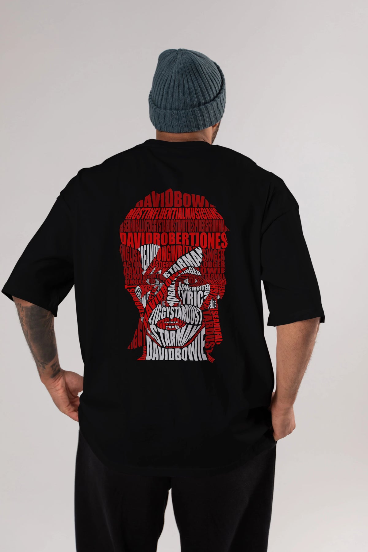 David Bowie Calligram Arka Baskılı Oversize t-shirt %100 pamuk Erkek Kadın Unisex