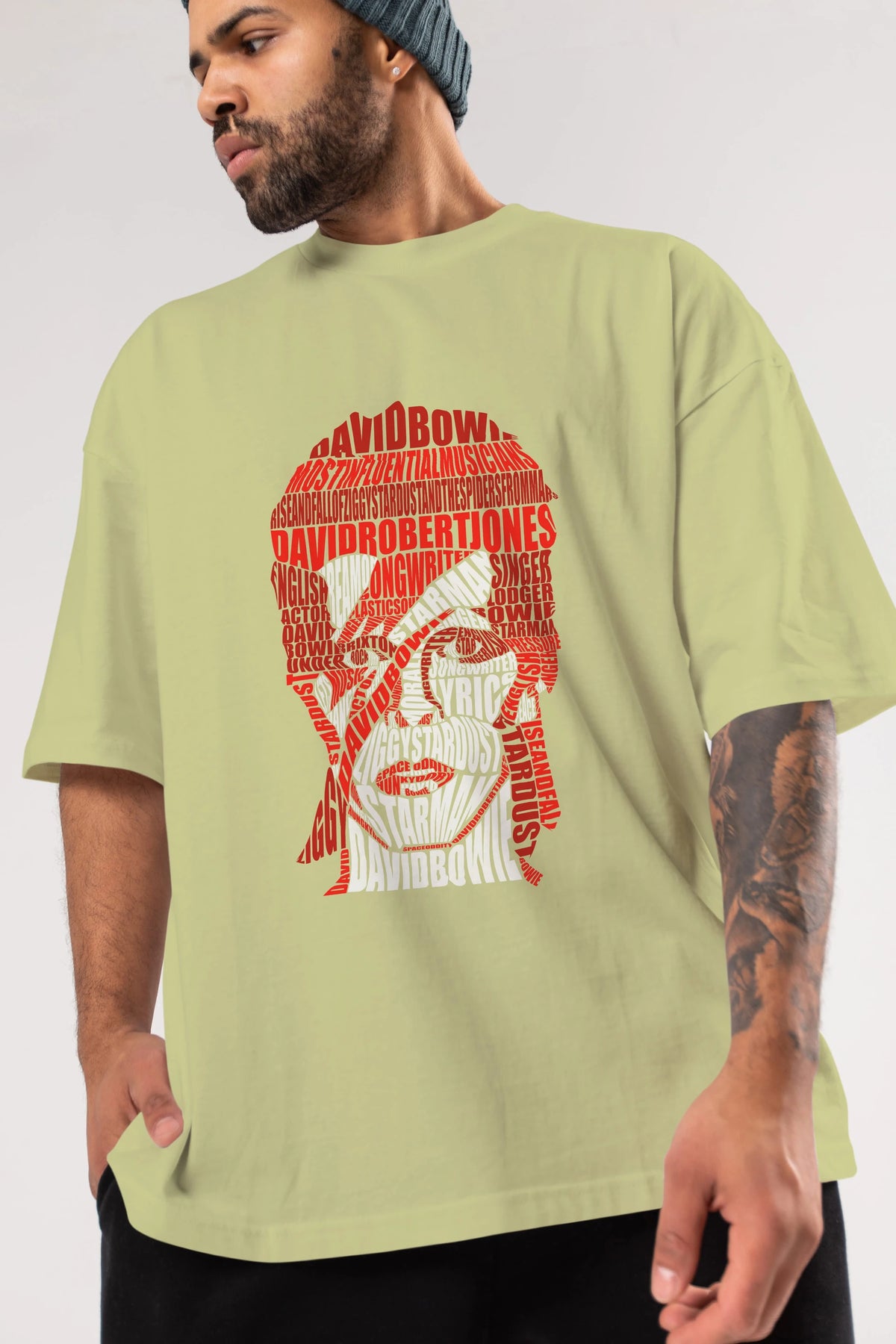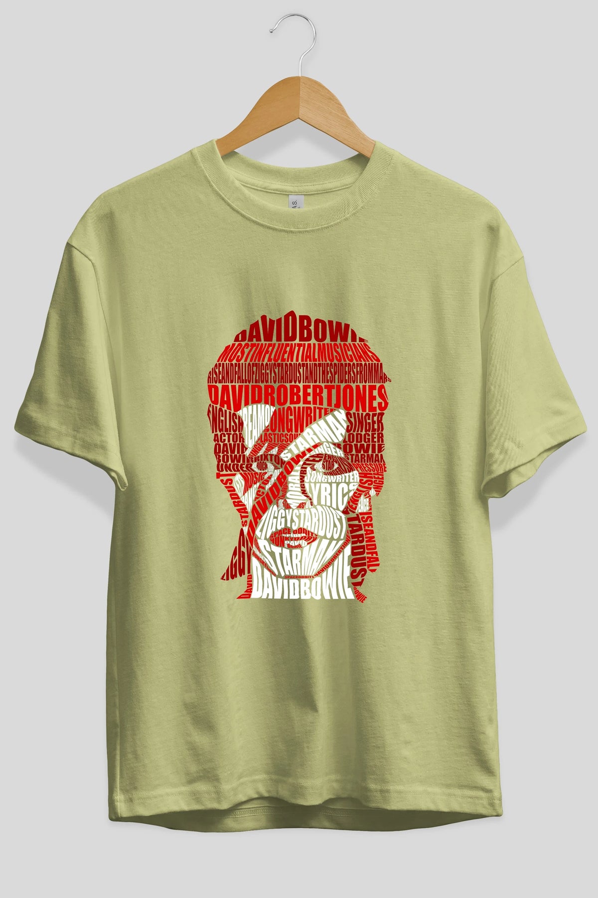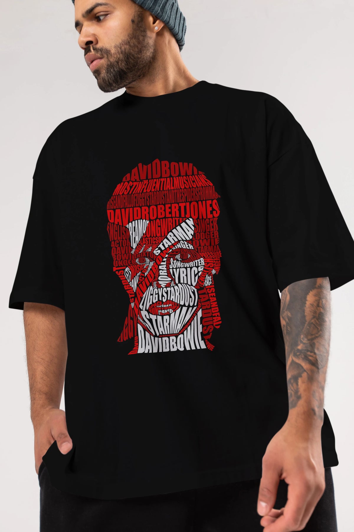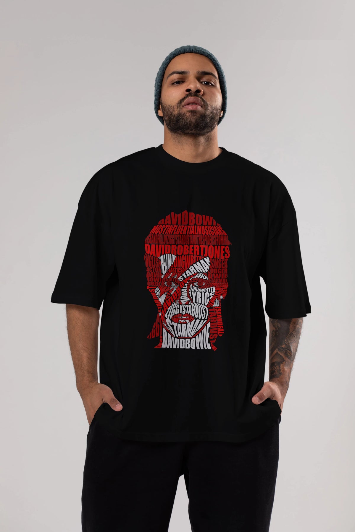 David Bowie Calligram Ön Baskılı Oversize t-shirt %100 pamuk Erkek Kadın Unisex