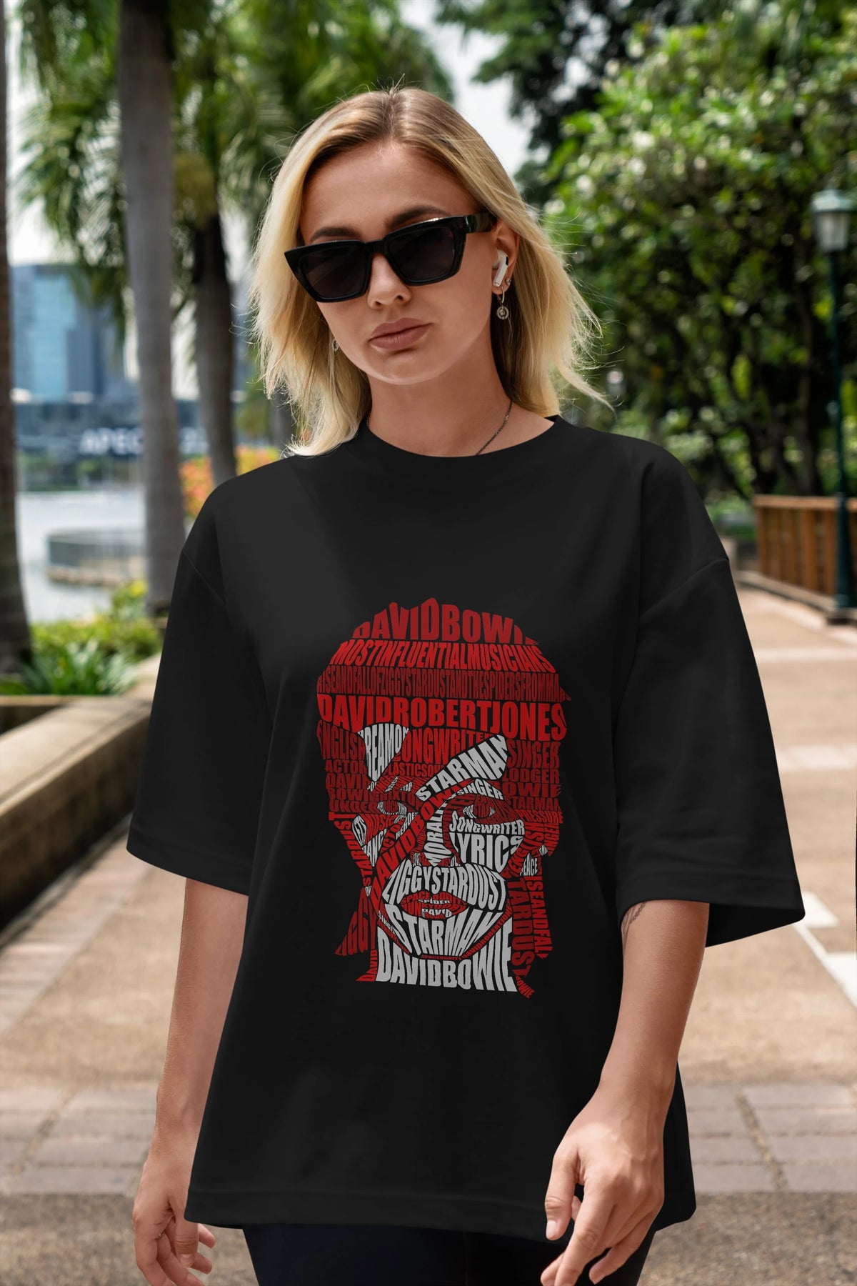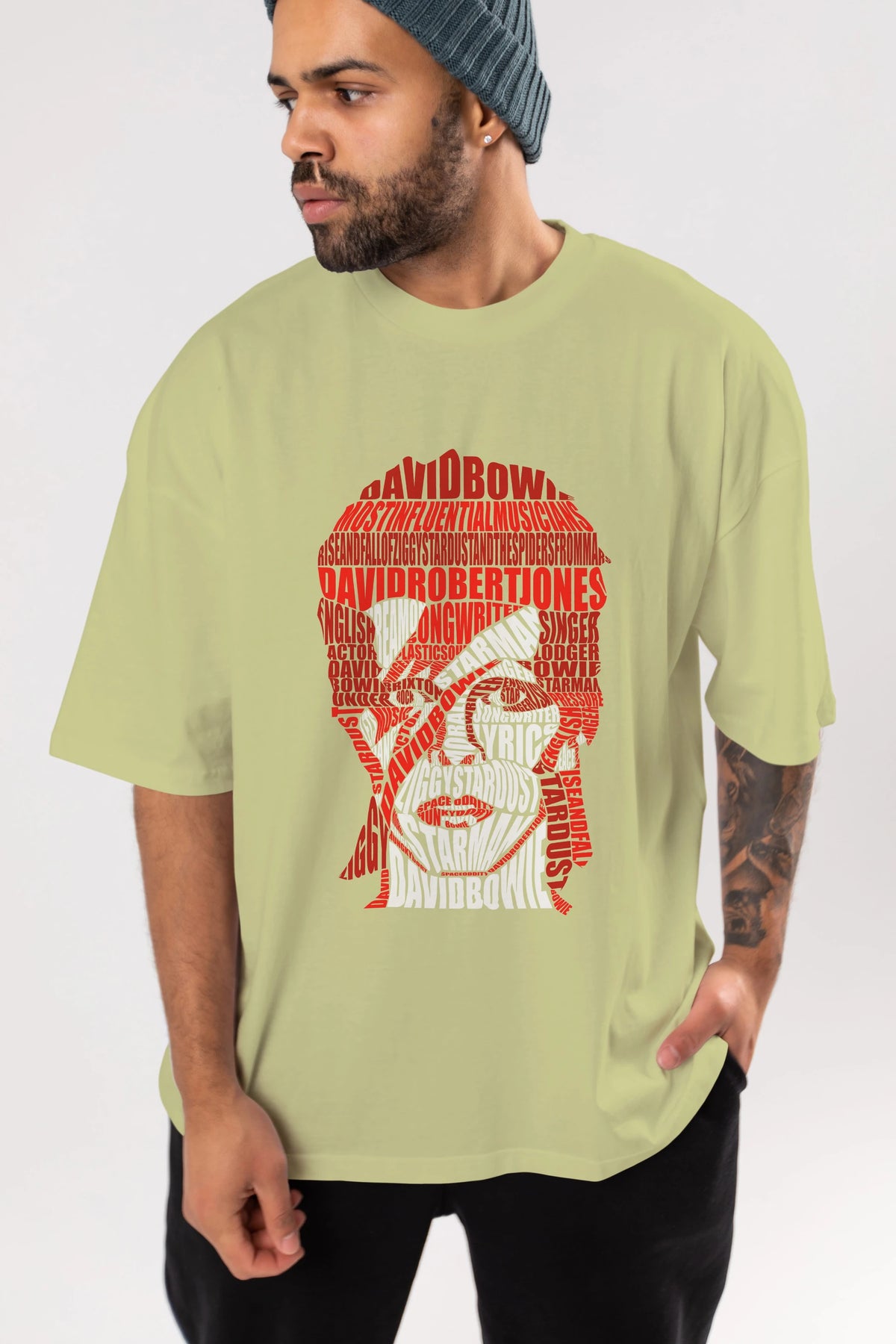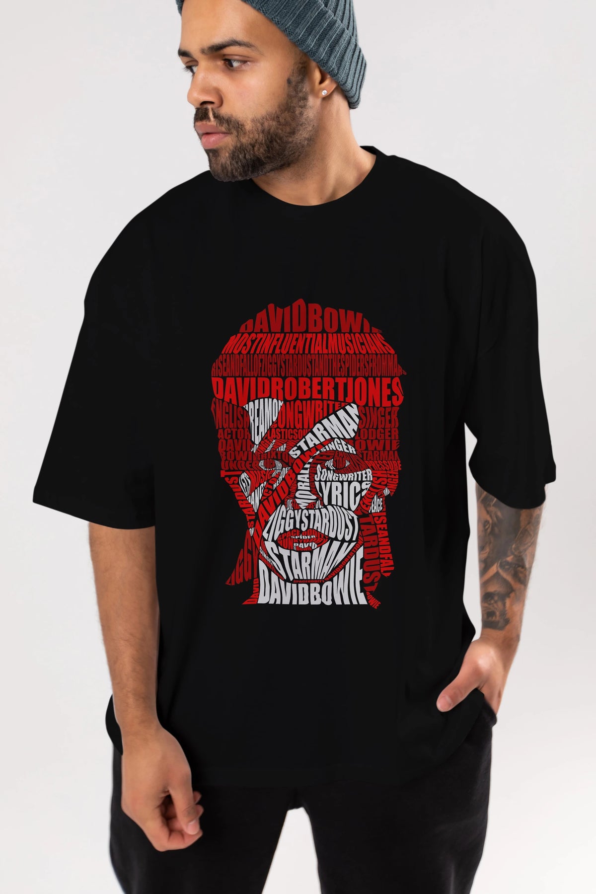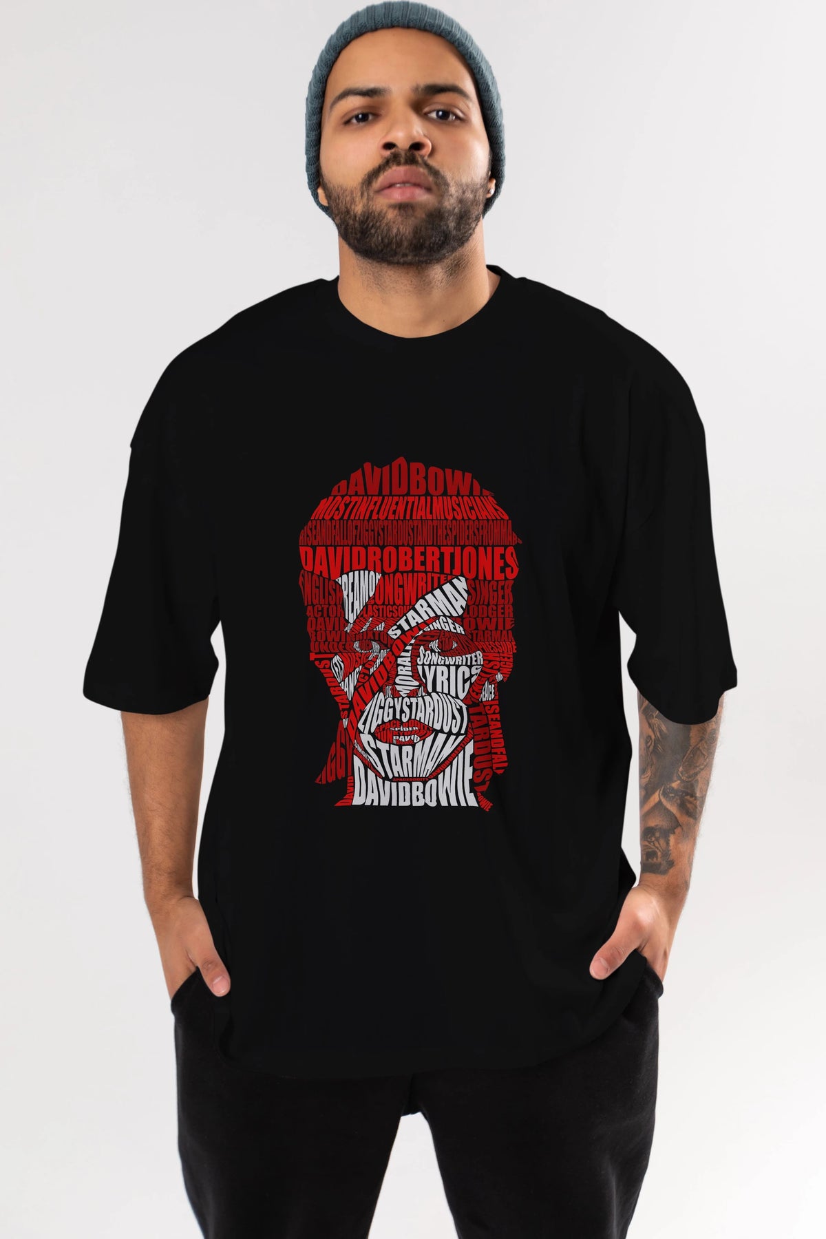 David Bowie Calligram Ön Baskılı Oversize t-shirt %100 pamuk Erkek Kadın Unisex
