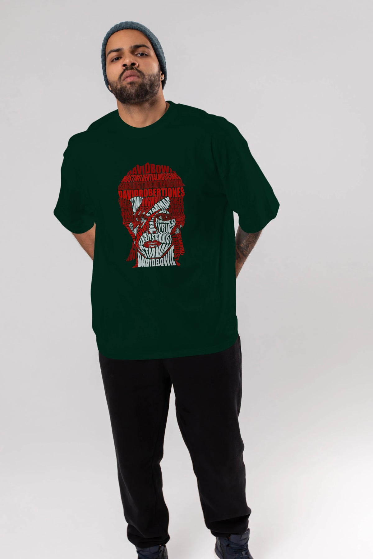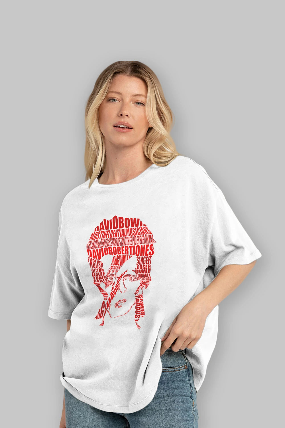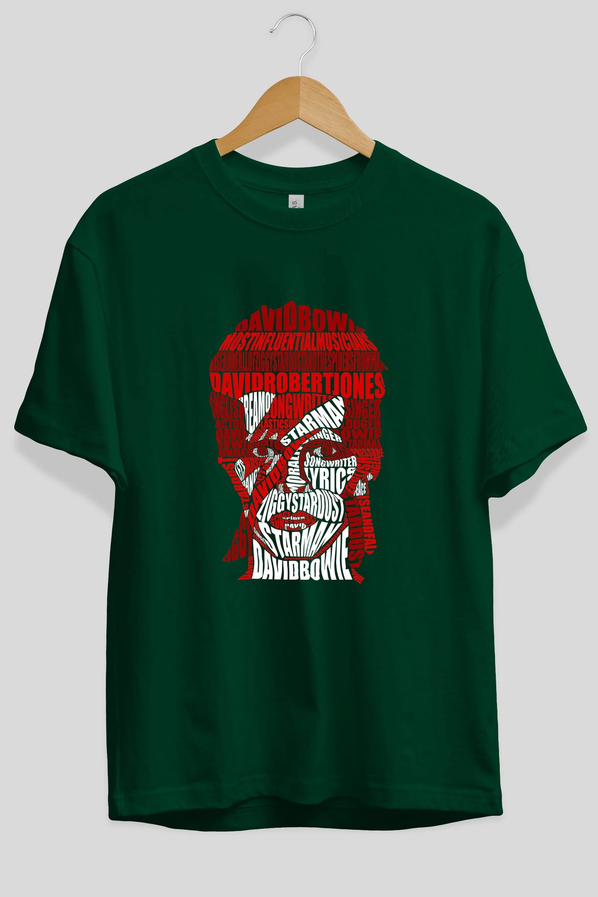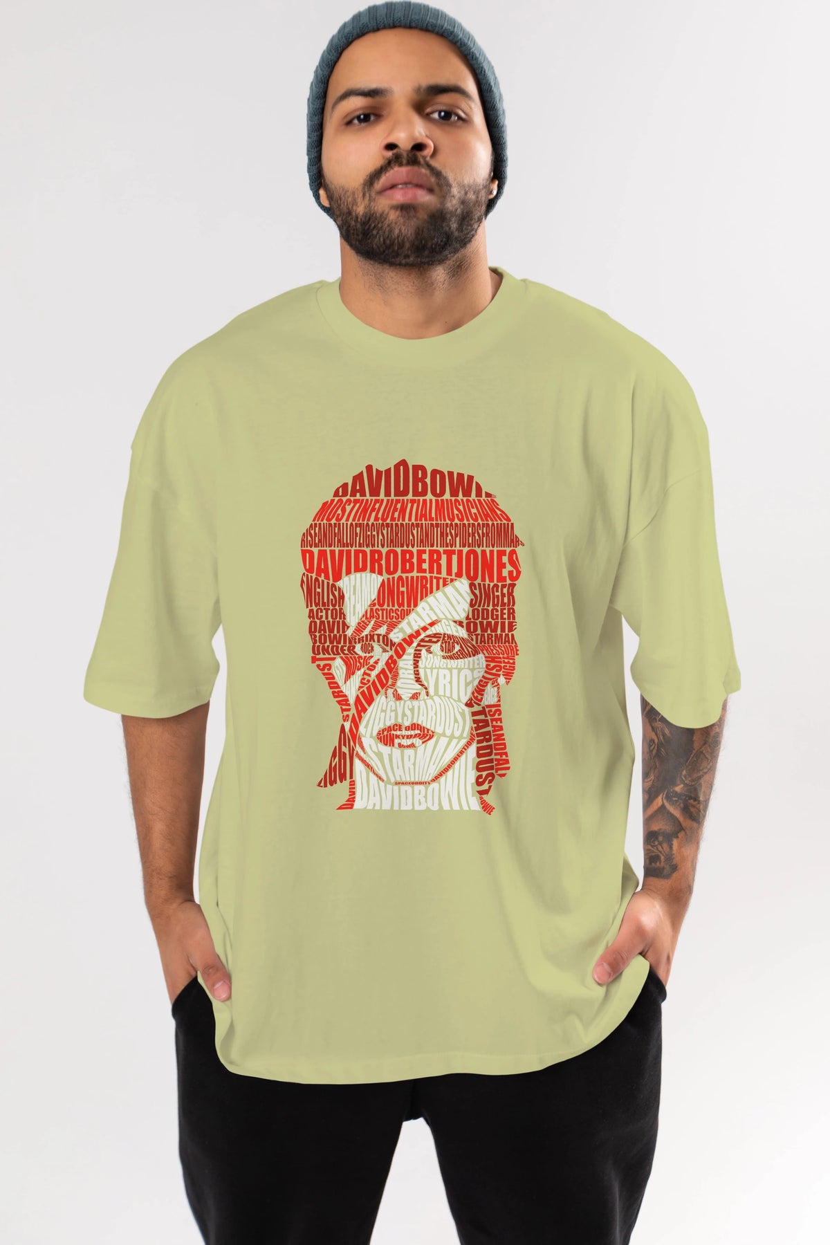 David Bowie Calligram Ön Baskılı Oversize t-shirt %100 pamuk Erkek Kadın Unisex