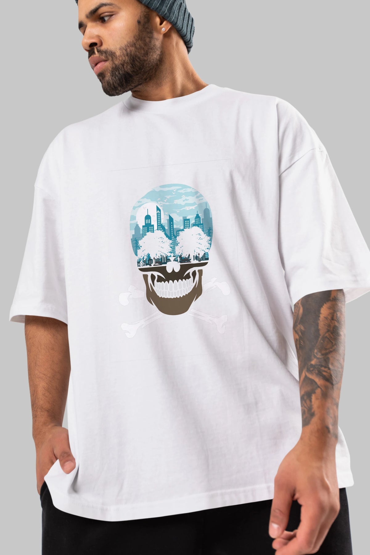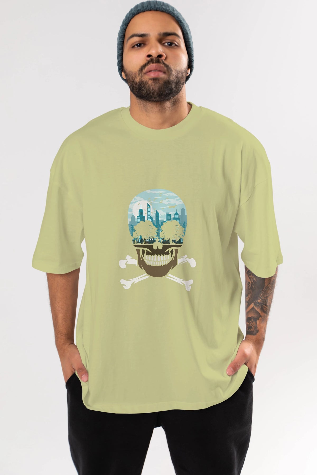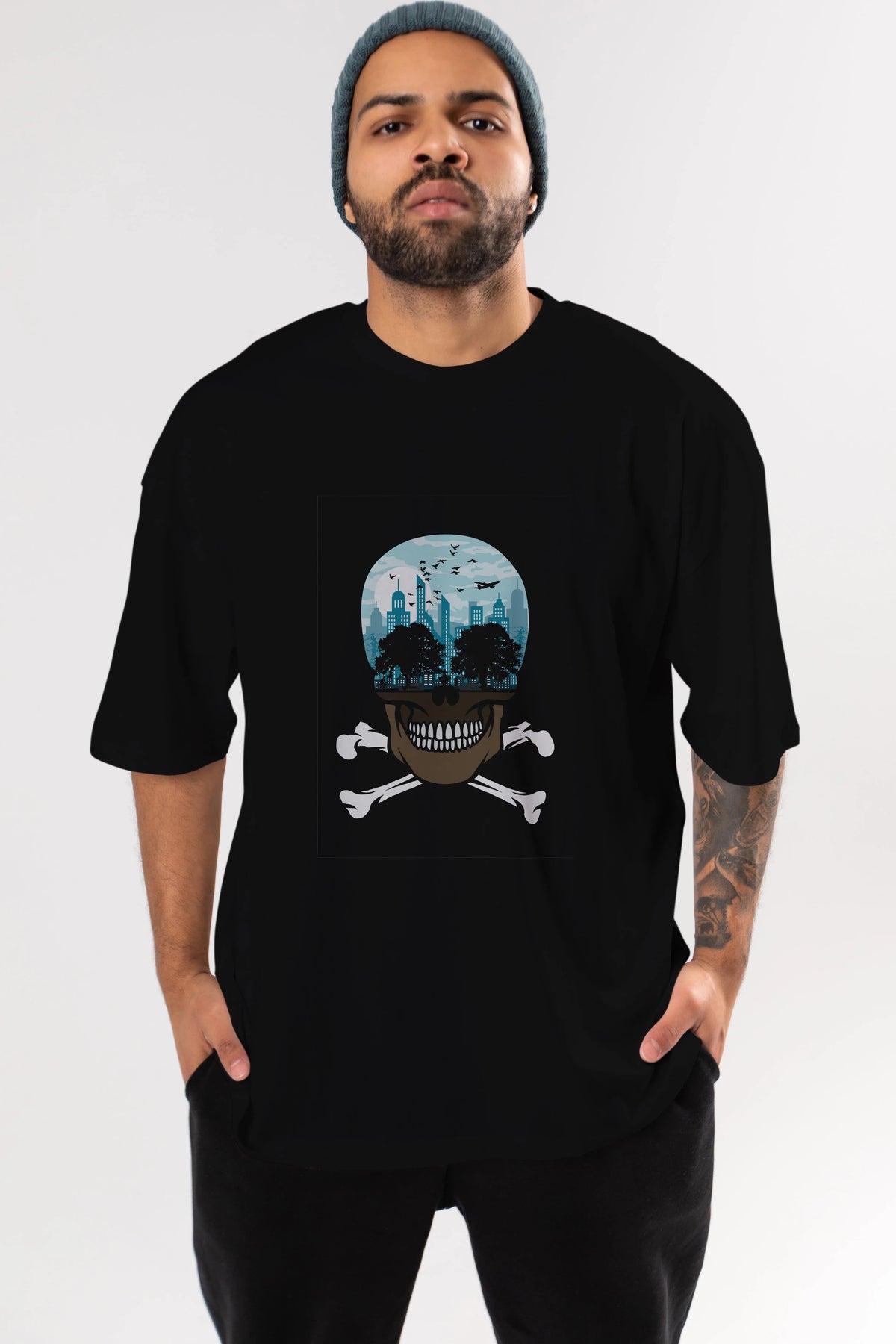 Death City Ön Baskılı Oversize t-shirt %100 pamuk Erkek Kadın Unisex