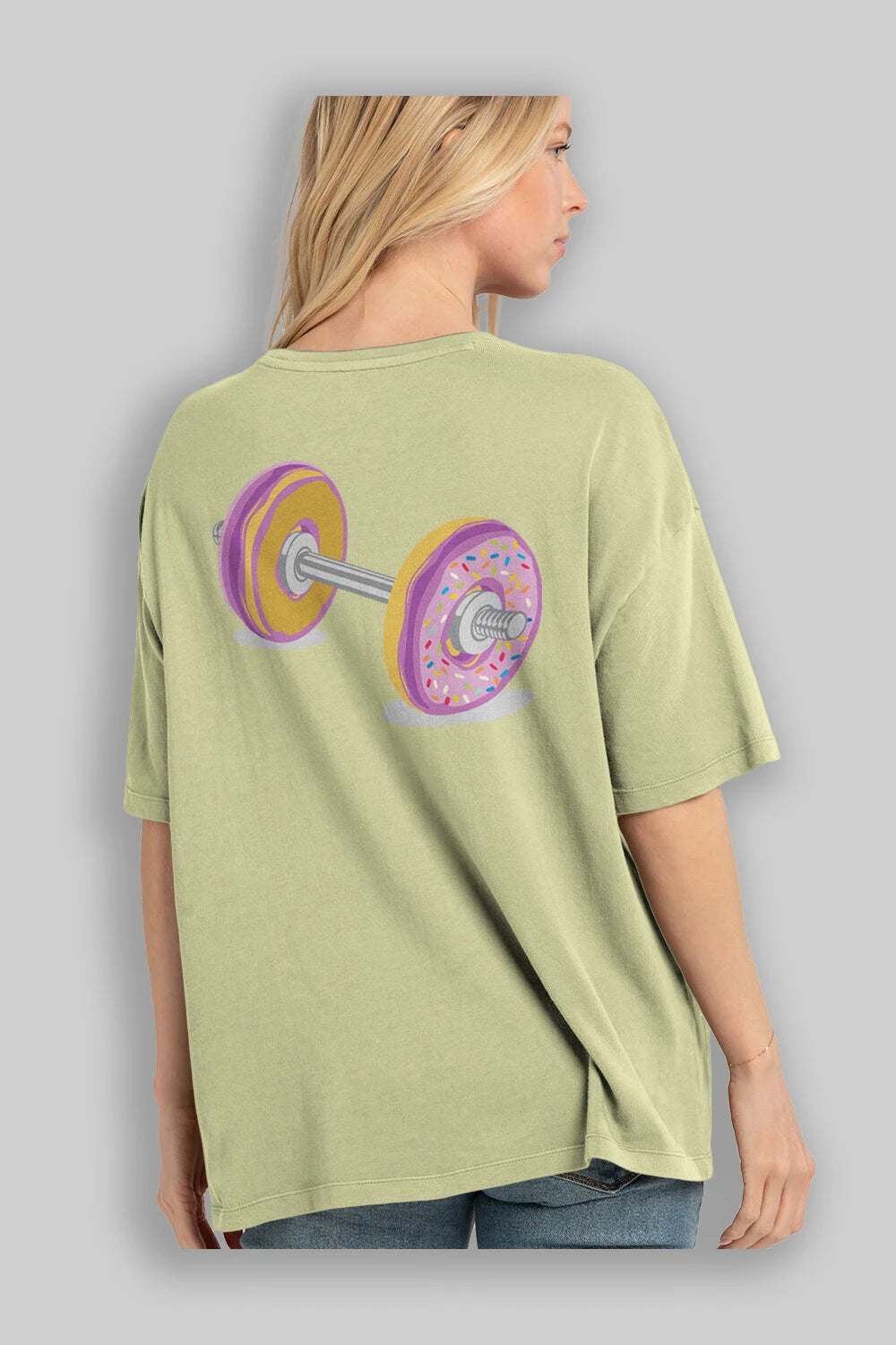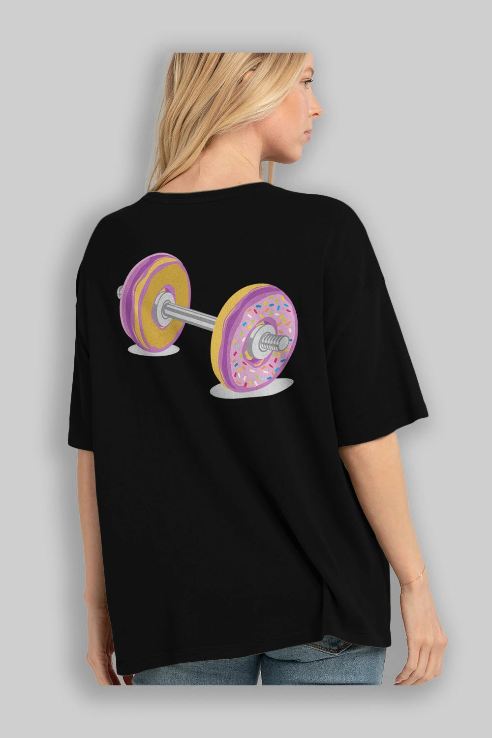 Donut Barbell Arka Baskılı Oversize t-shirt %100 pamuk Erkek Kadın Unisex