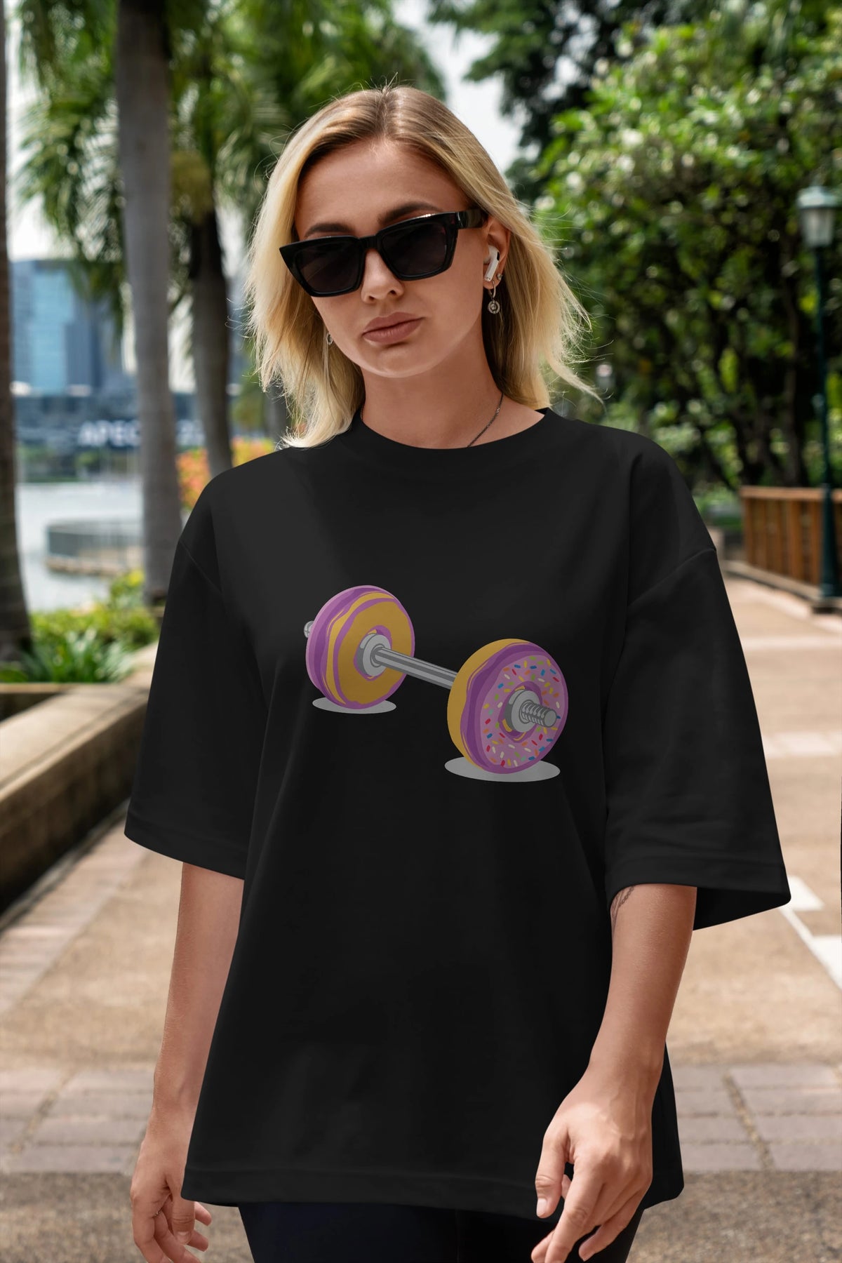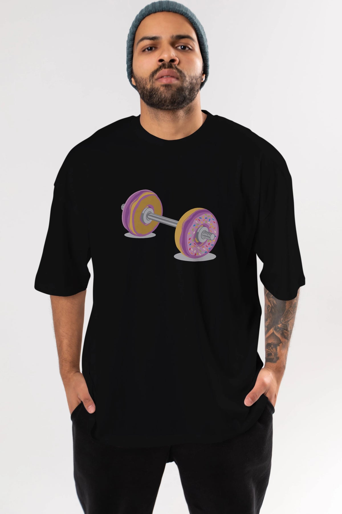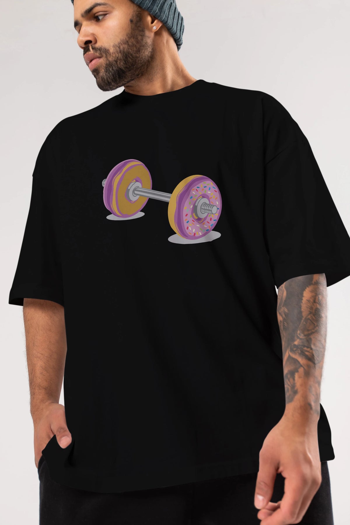 Donut Barbell Ön Baskılı Oversize t-shirt %100 pamuk Erkek Kadın Unisex