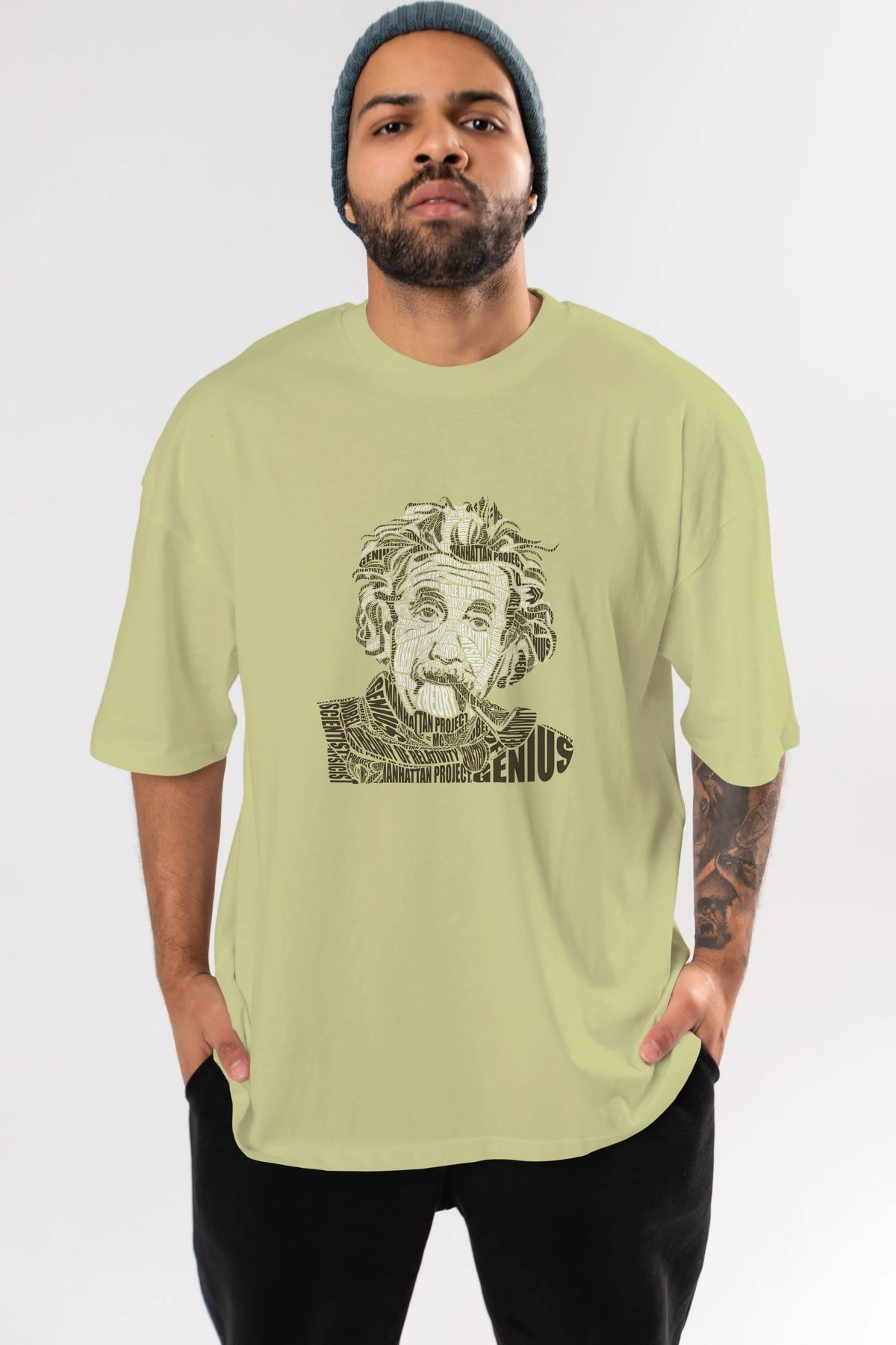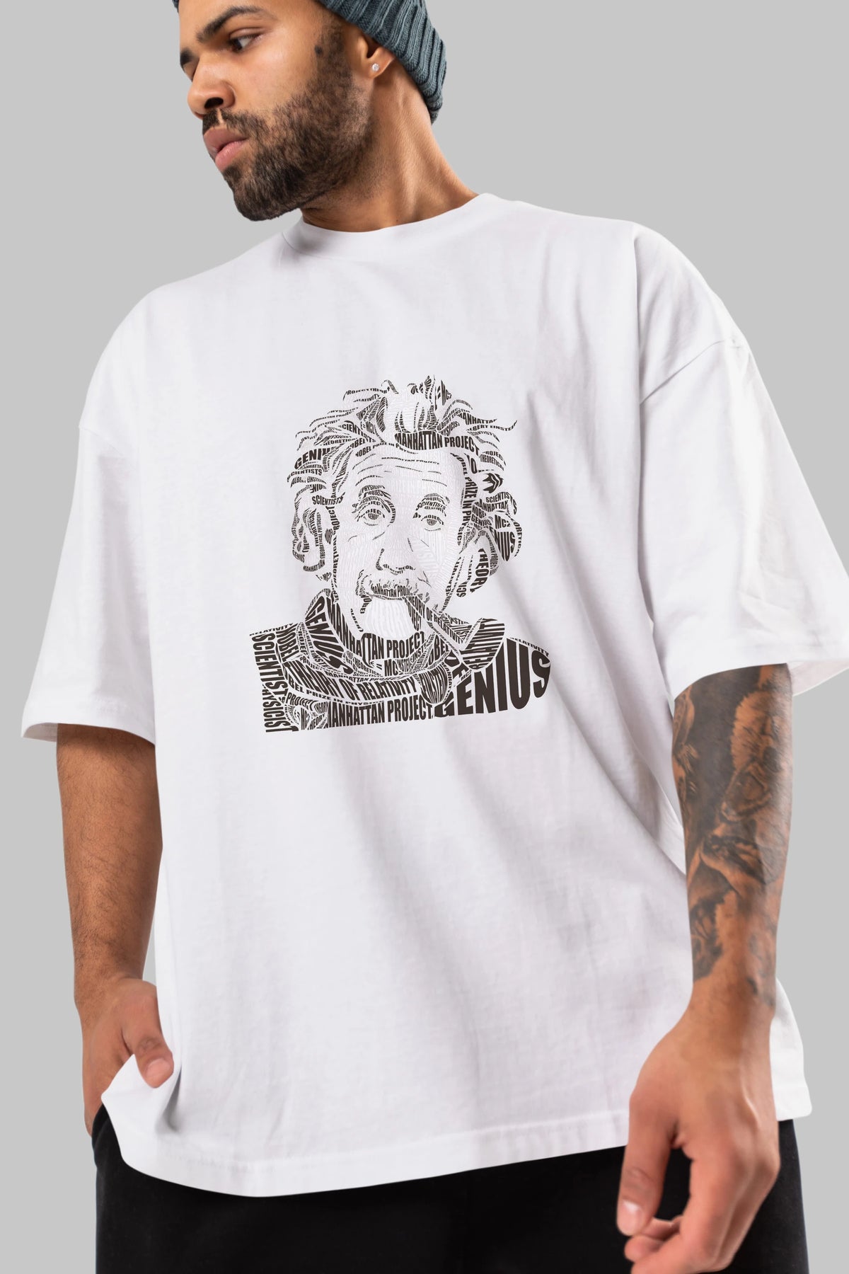 Einstein Calligram Ön Baskılı Oversize t-shirt %100 pamuk Erkek Kadın Unisex
