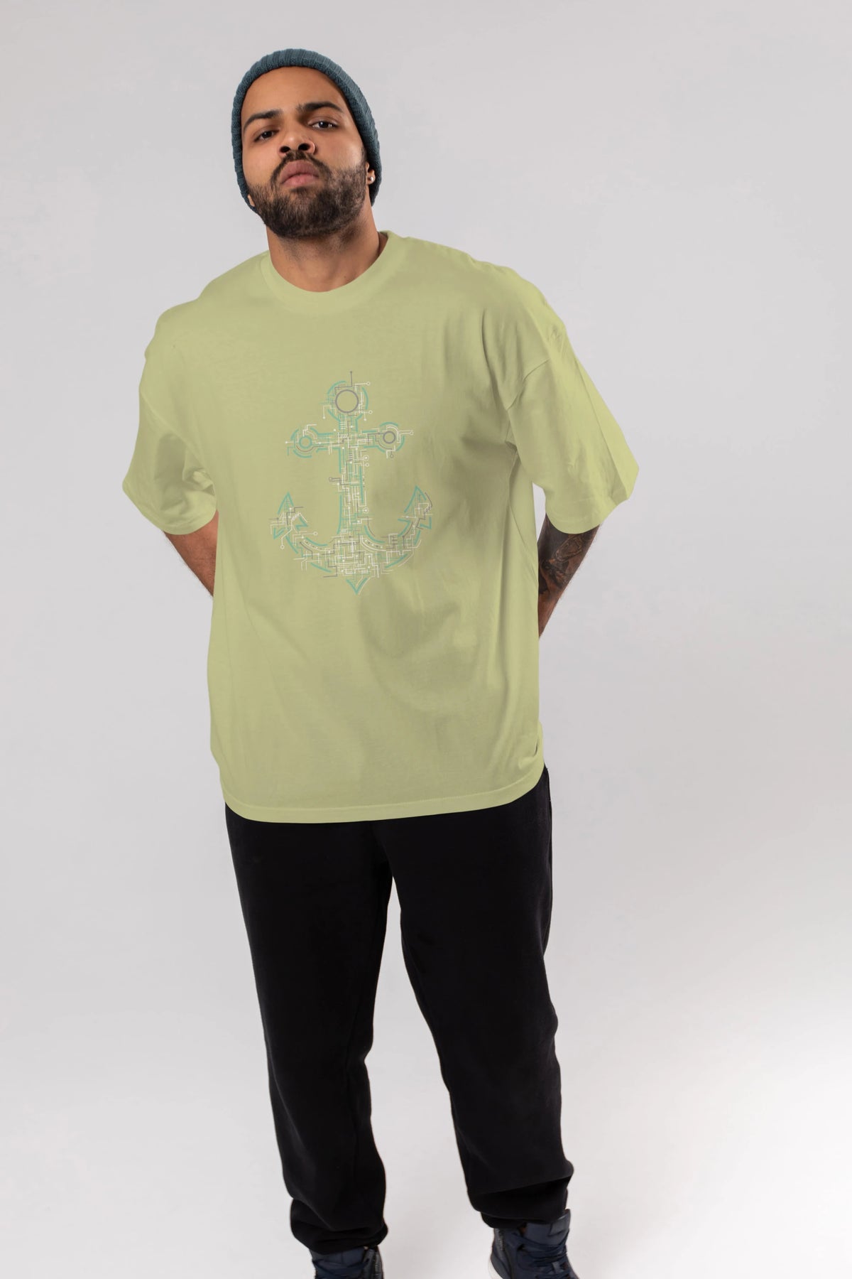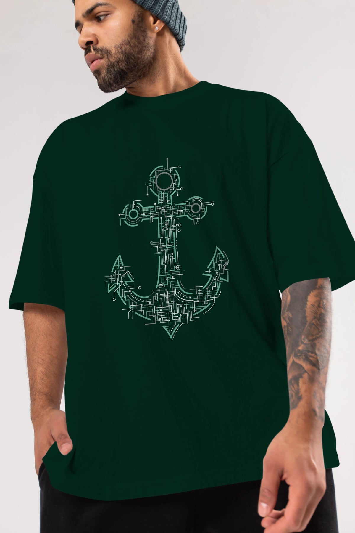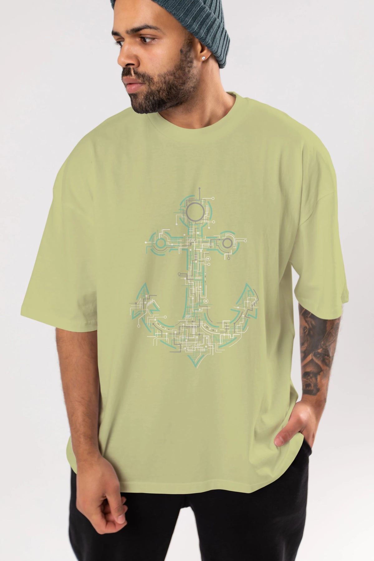 Electric Anchor Ön Baskılı Oversize t-shirt %100 pamuk Erkek Kadın Unisex