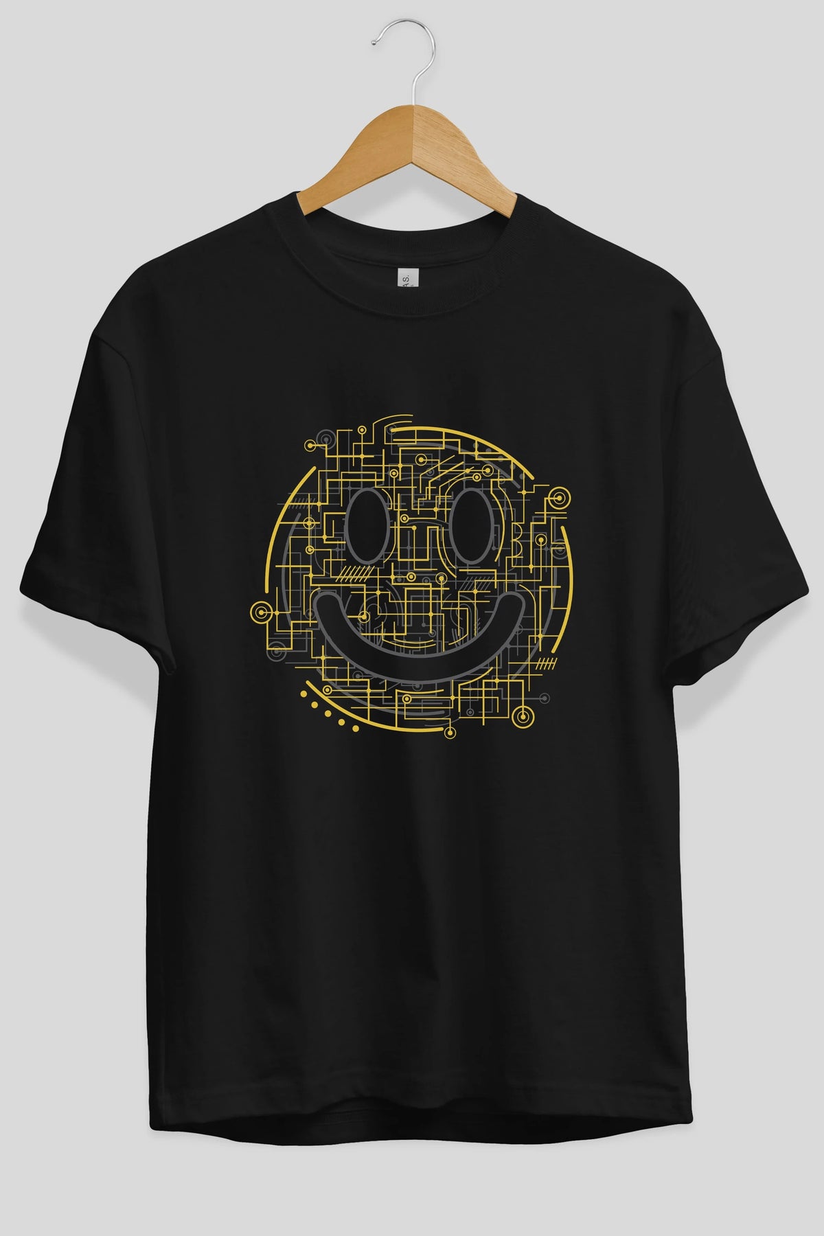 Electric Smiley Ön Baskılı Oversize t-shirt %100 pamuk Erkek Kadın Unisex