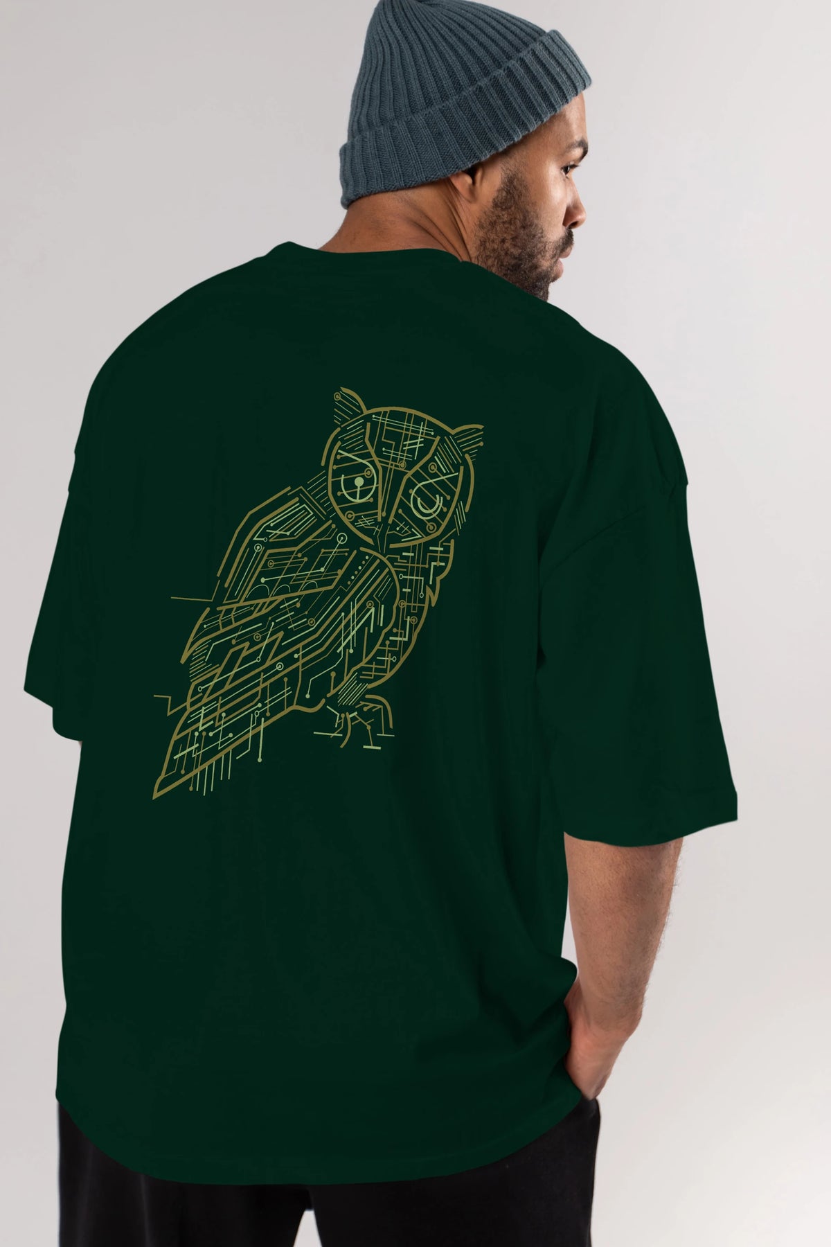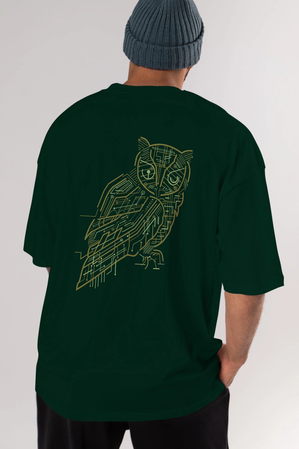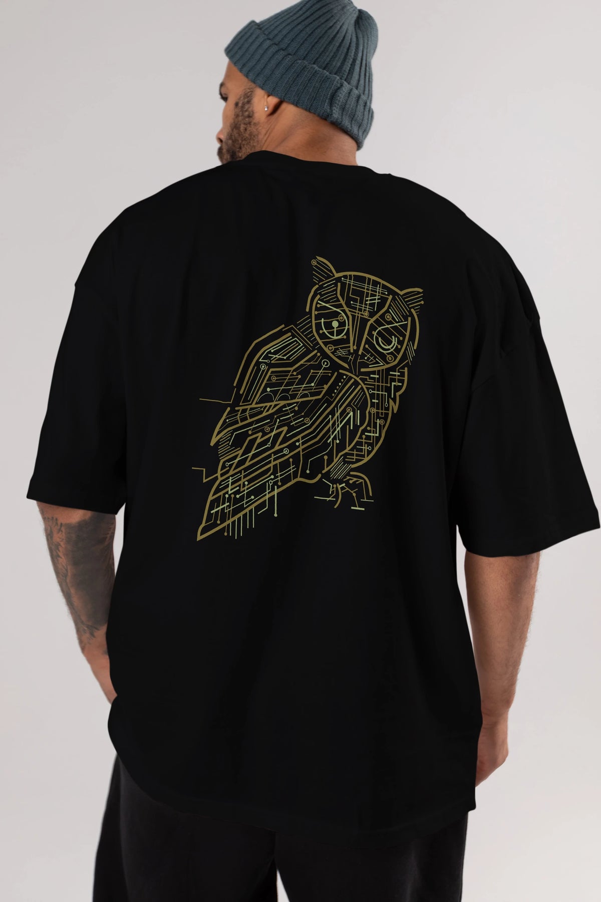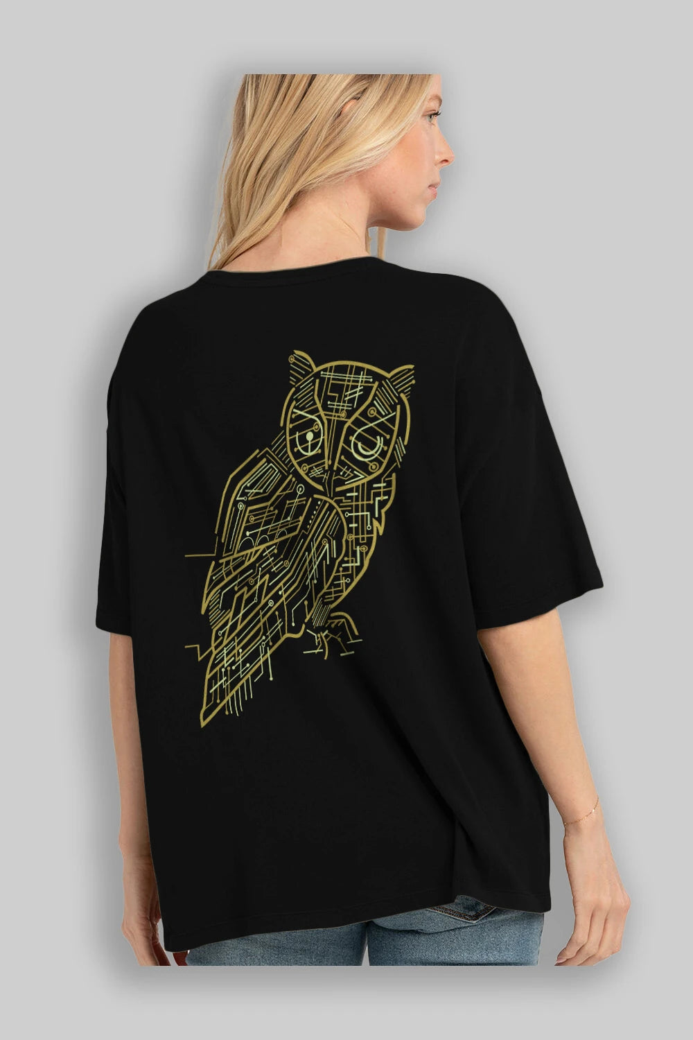 Electrical Owl Arka Baskılı Oversize t-shirt %100 pamuk Erkek Kadın Unisex