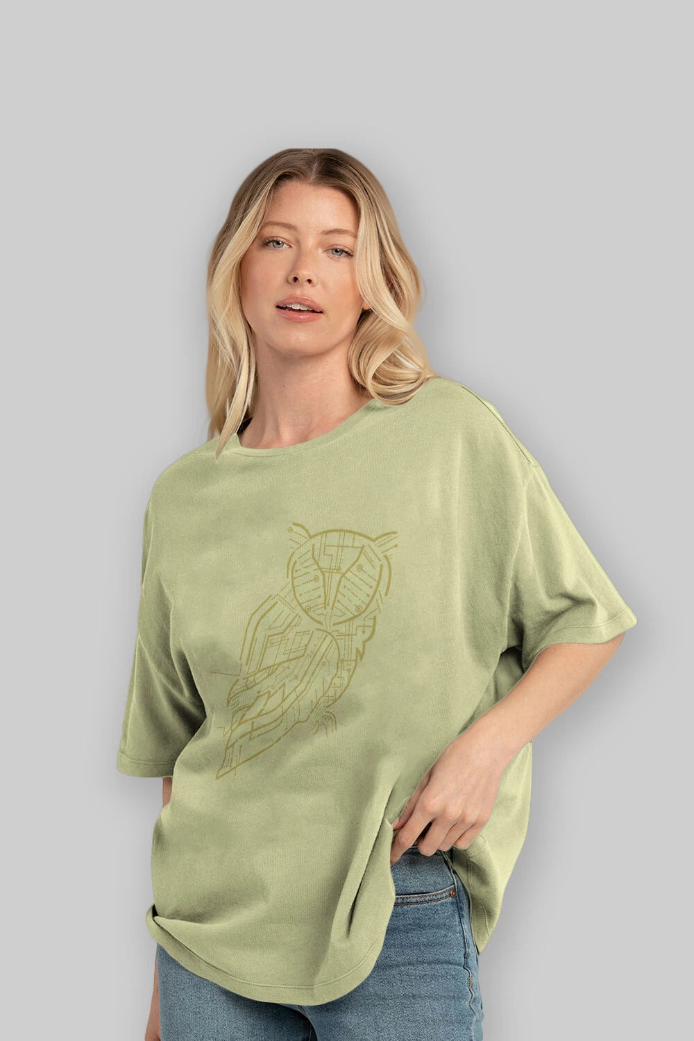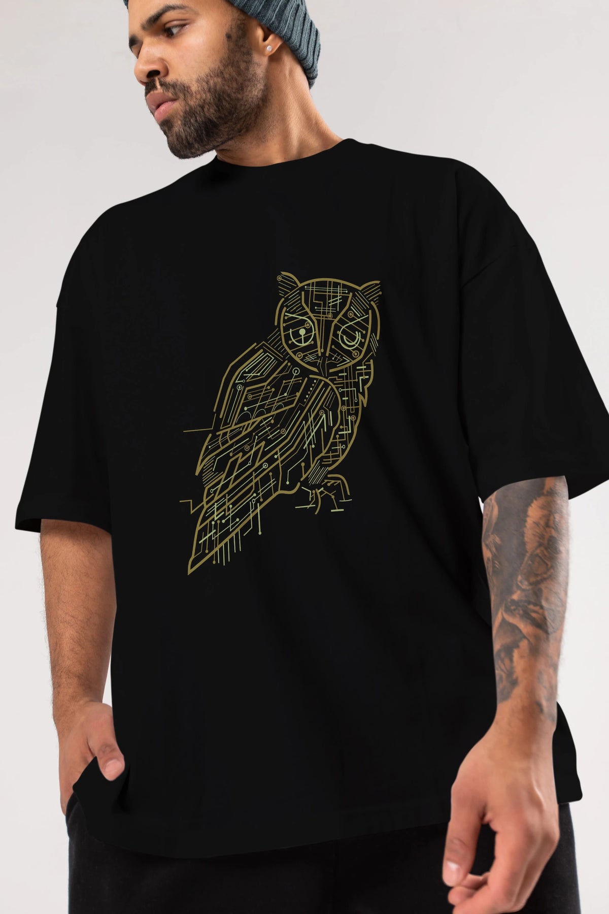 Electrical Owl Ön Baskılı Oversize t-shirt %100 pamuk Erkek Kadın Unisex