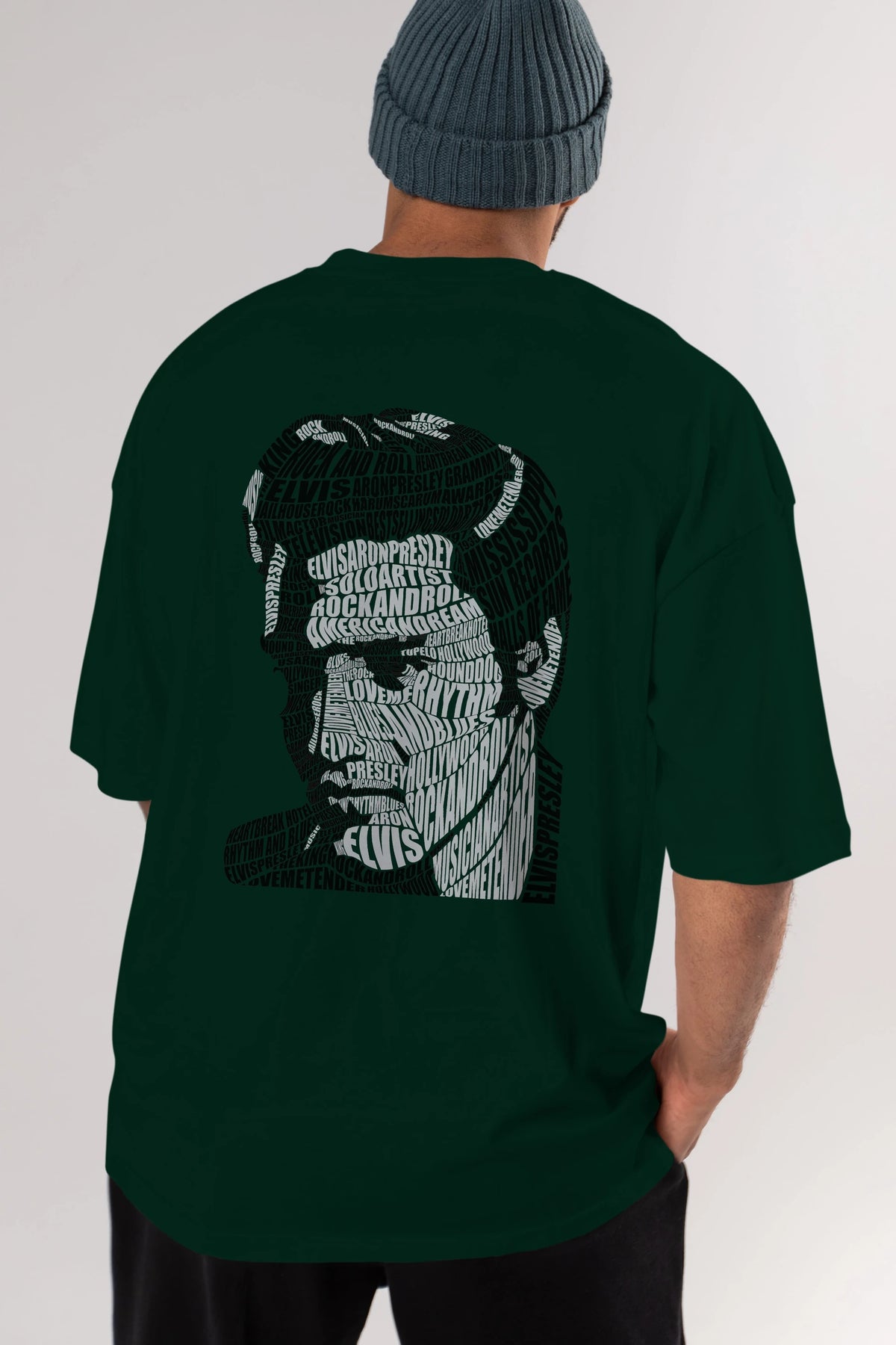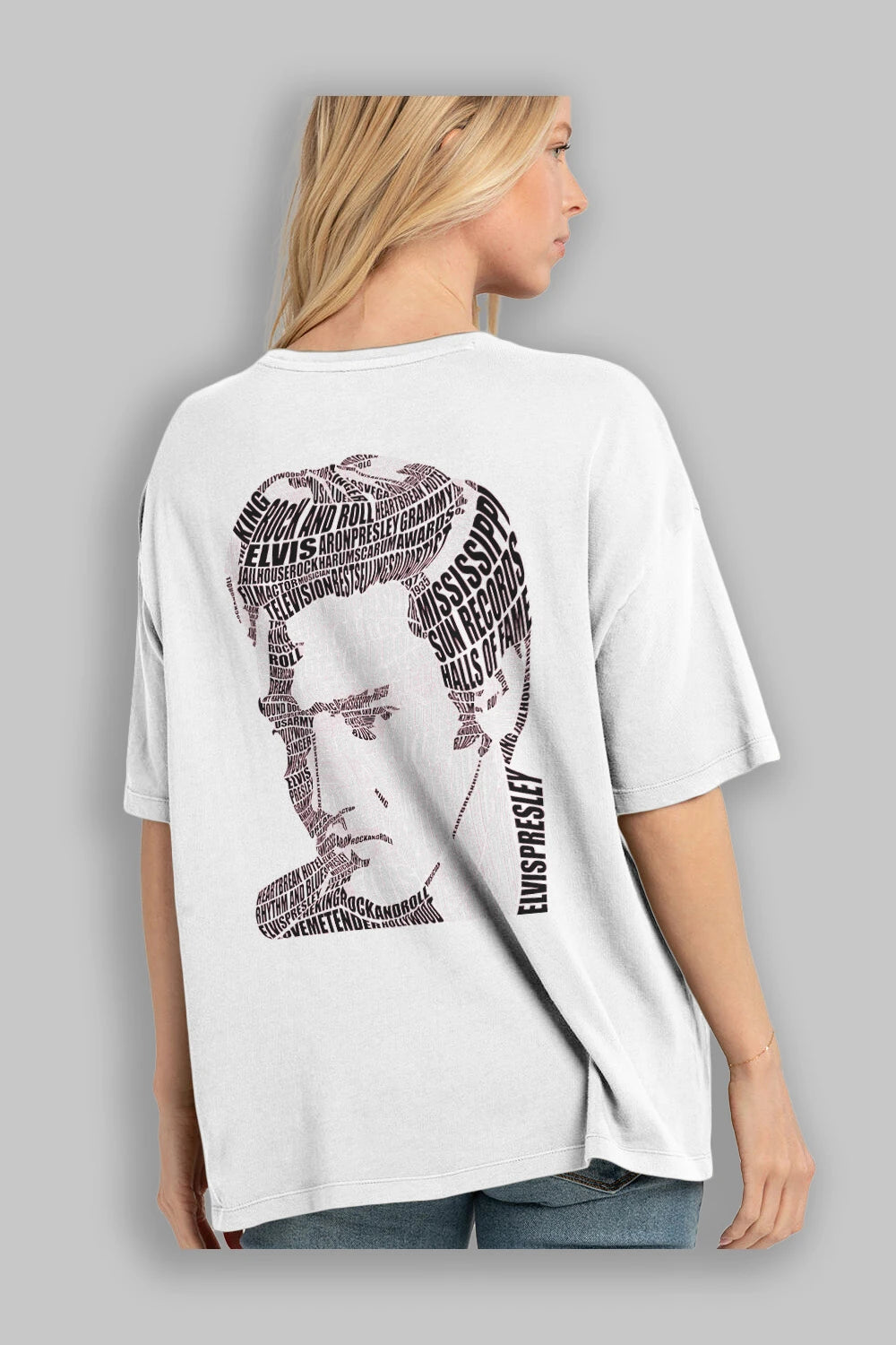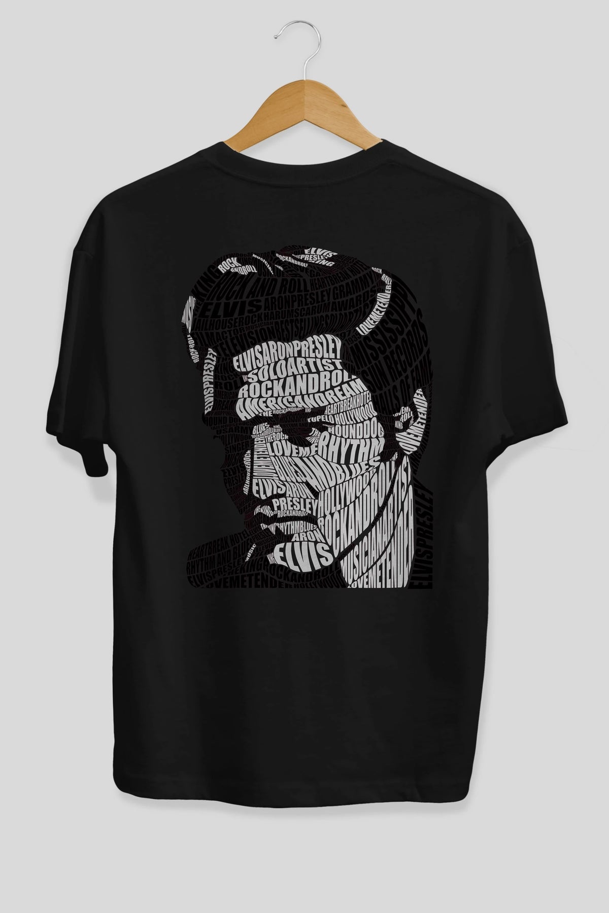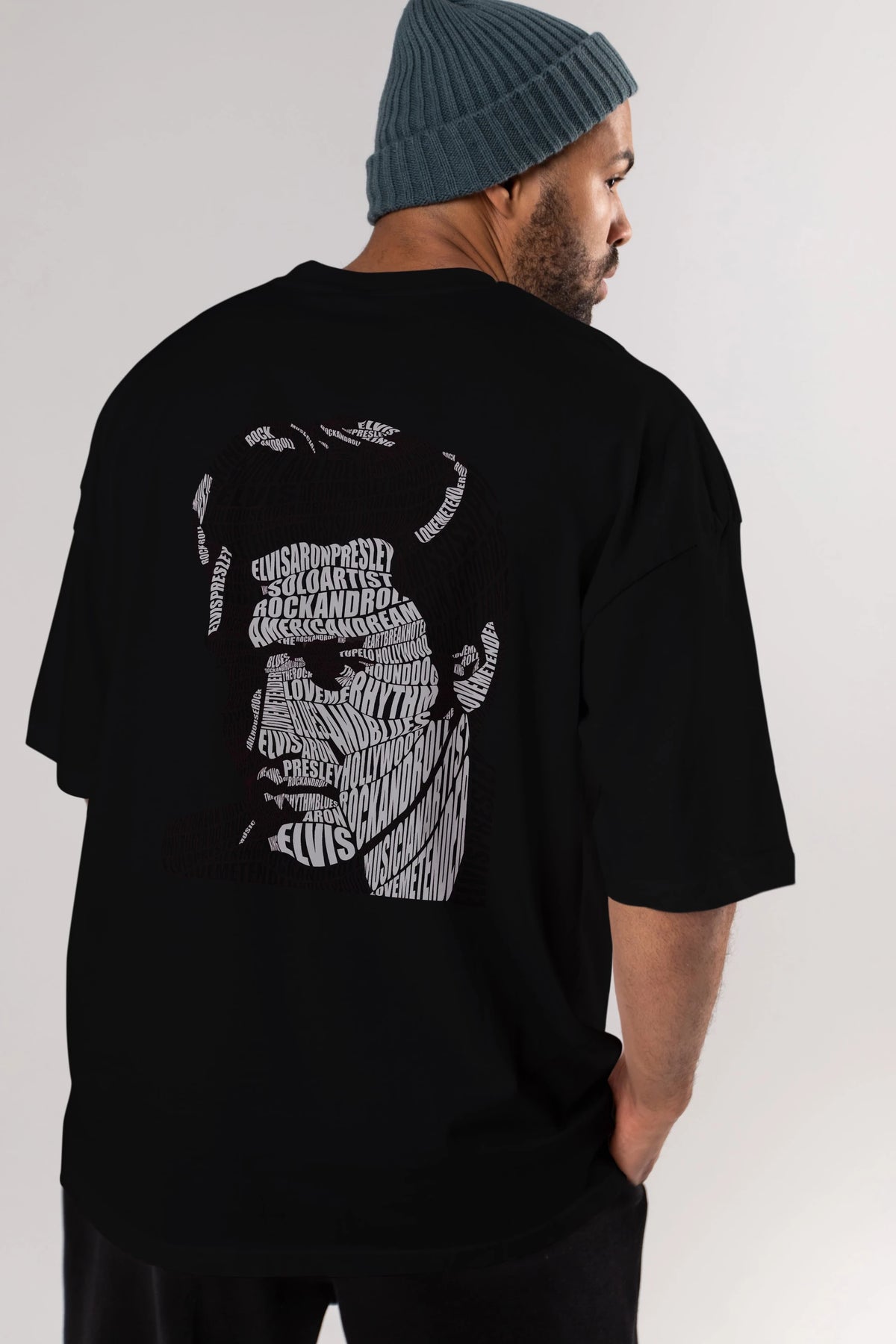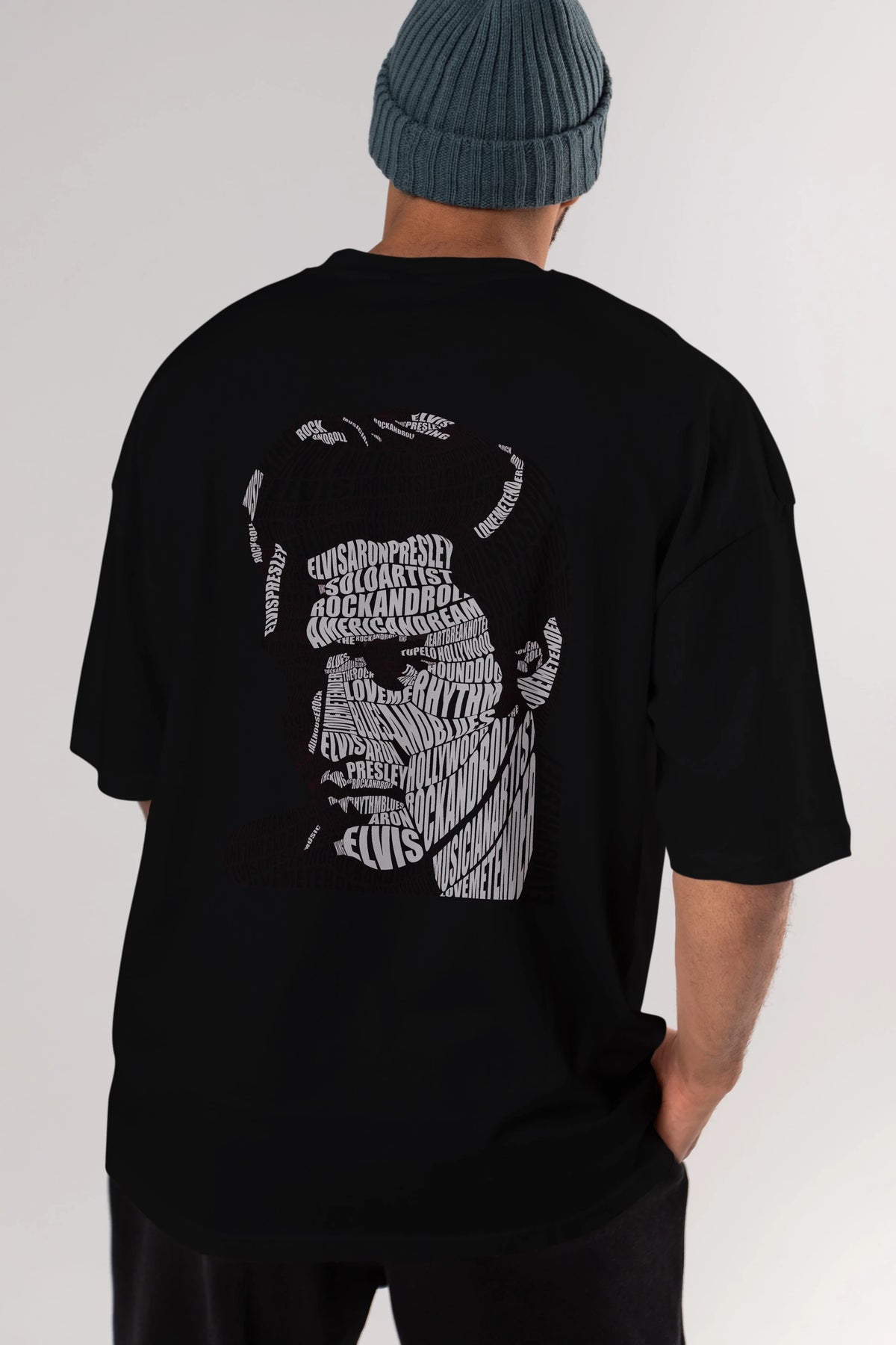 Elvis Presley Calligram Arka Baskılı Oversize t-shirt %100 pamuk Erkek Kadın Unisex