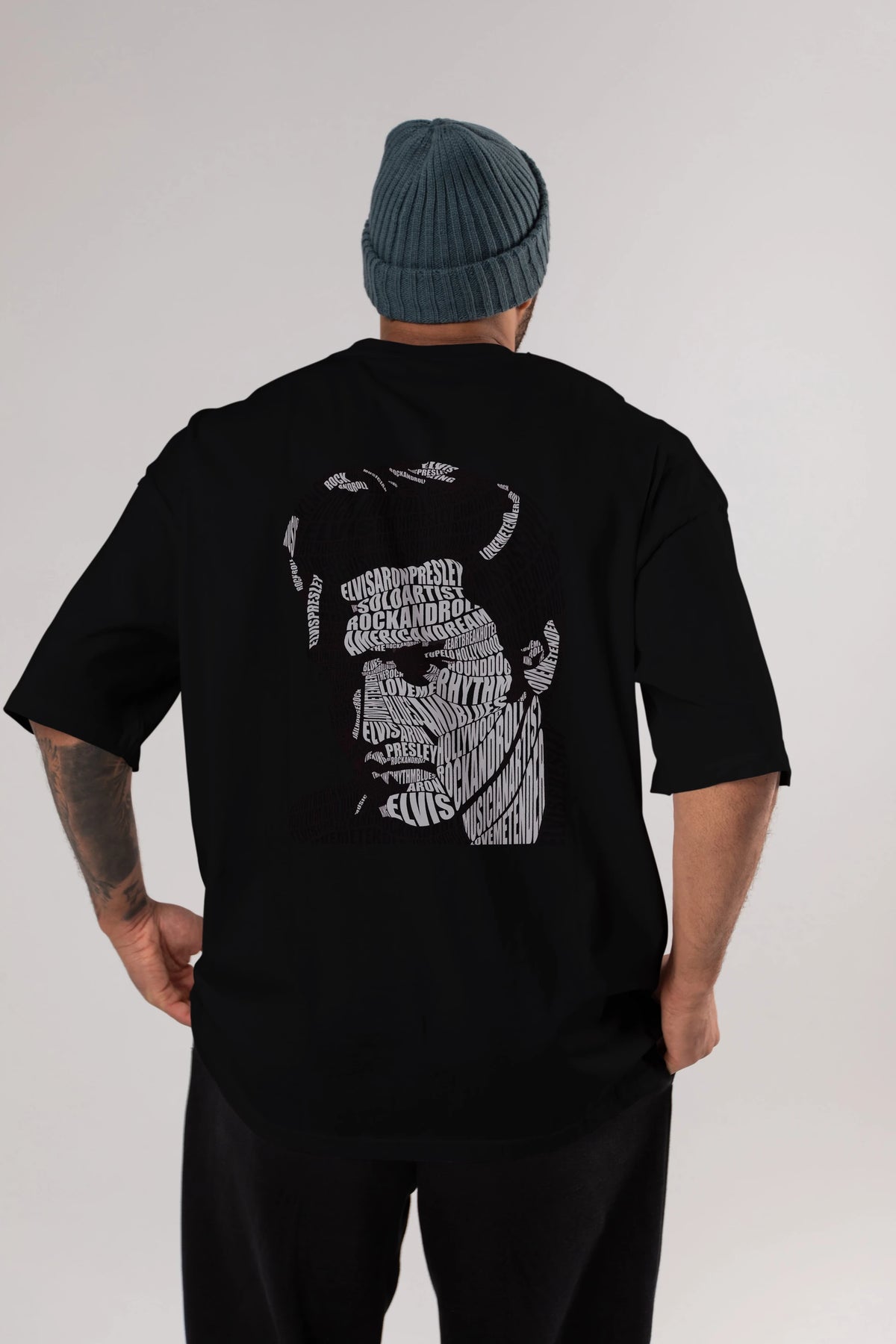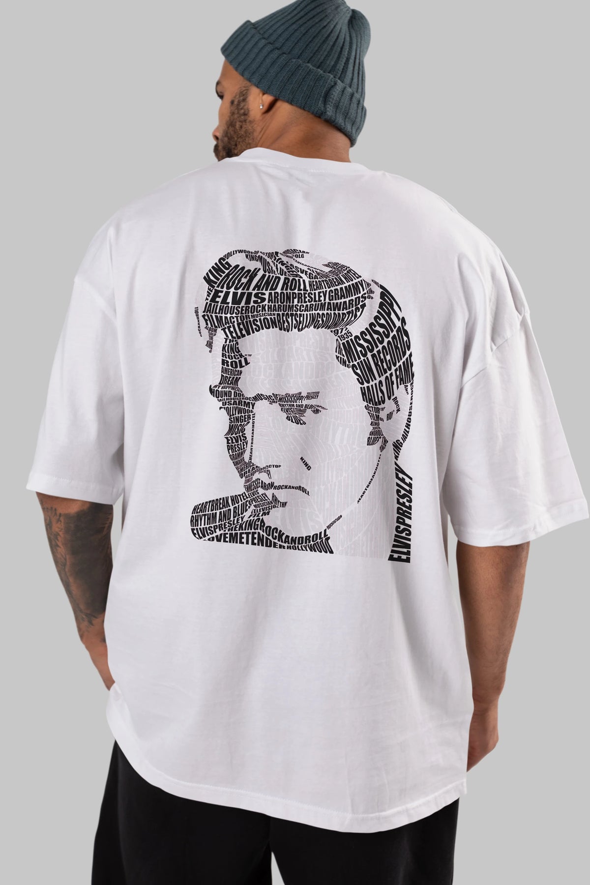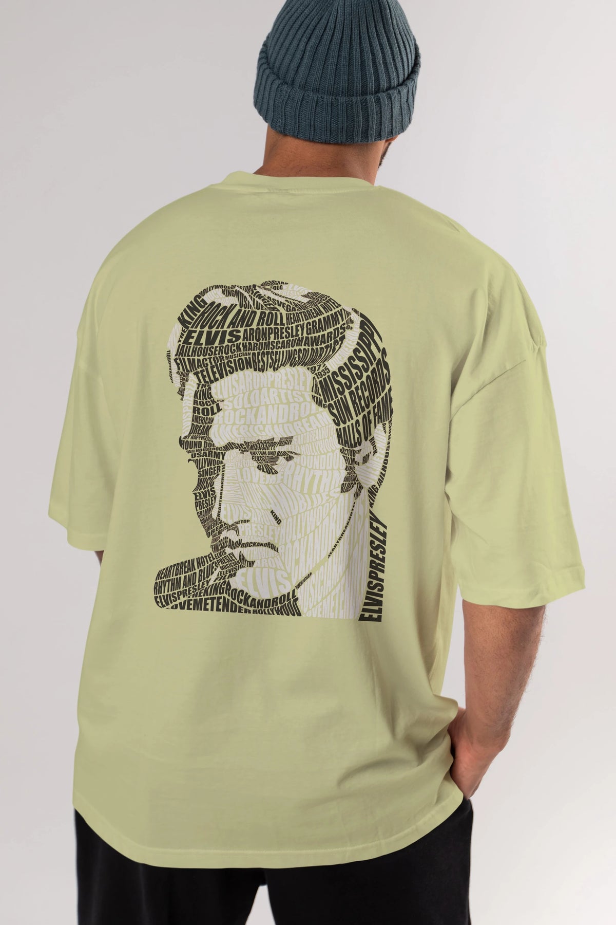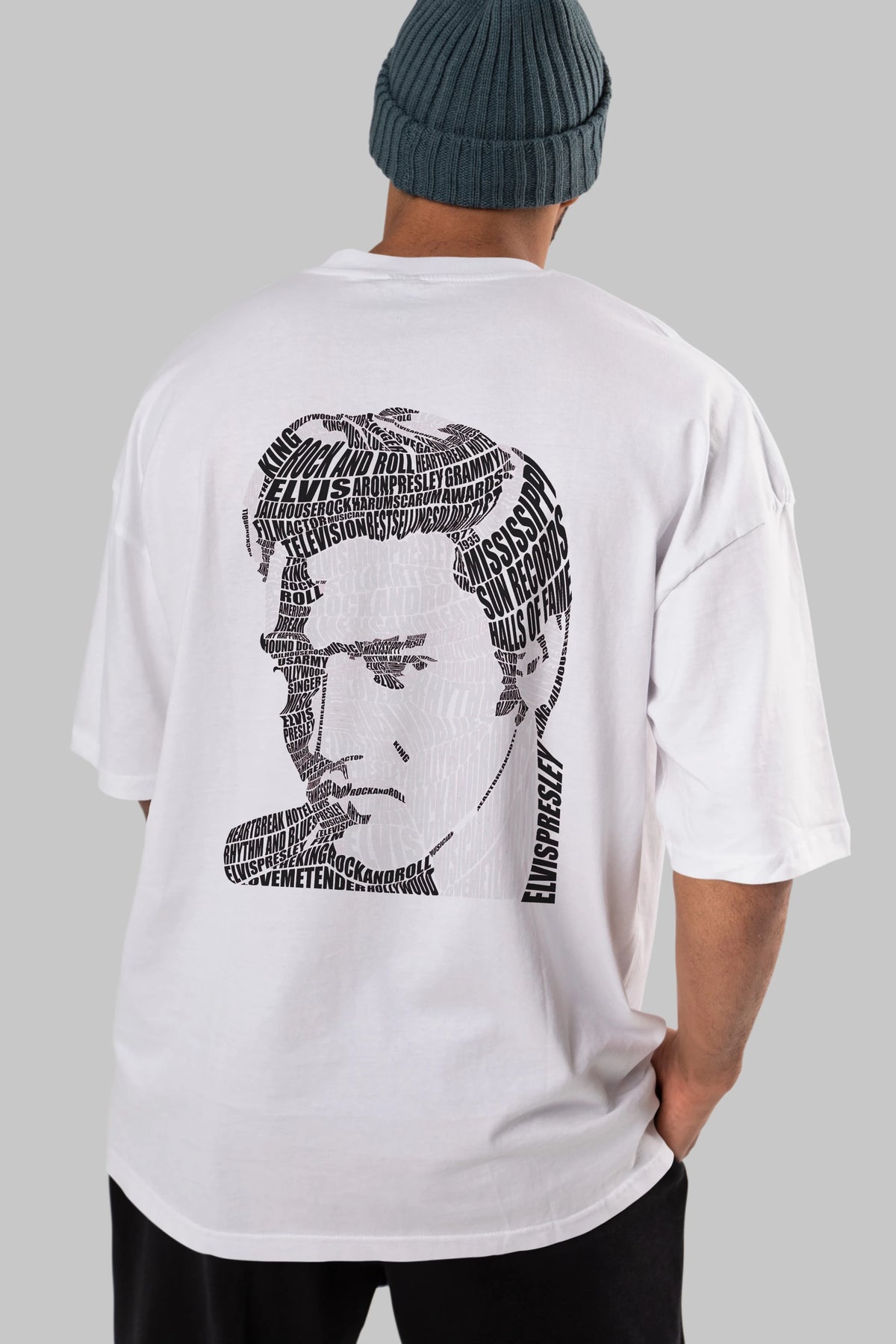 Elvis Presley Calligram Arka Baskılı Oversize t-shirt %100 pamuk Erkek Kadın Unisex