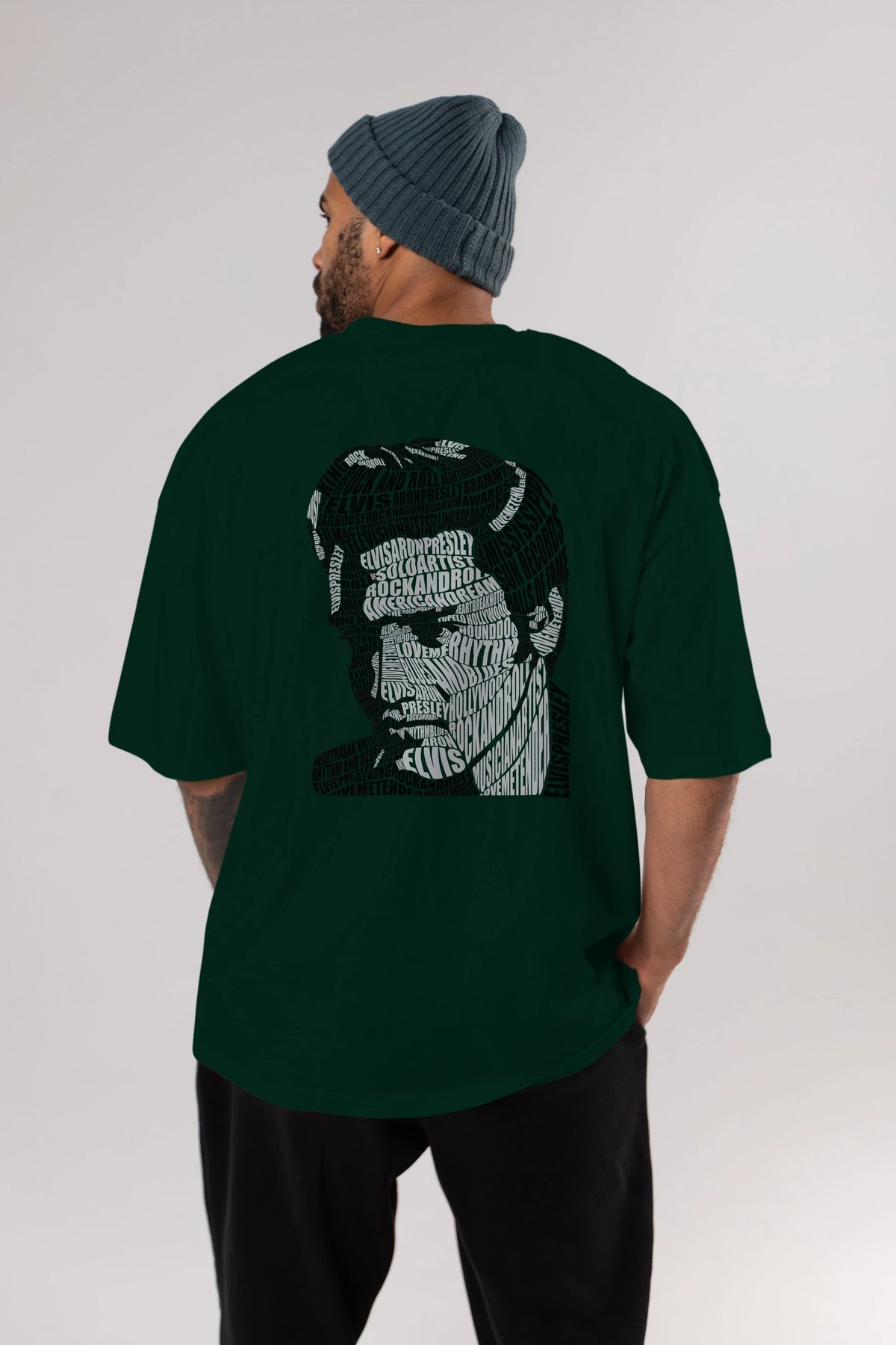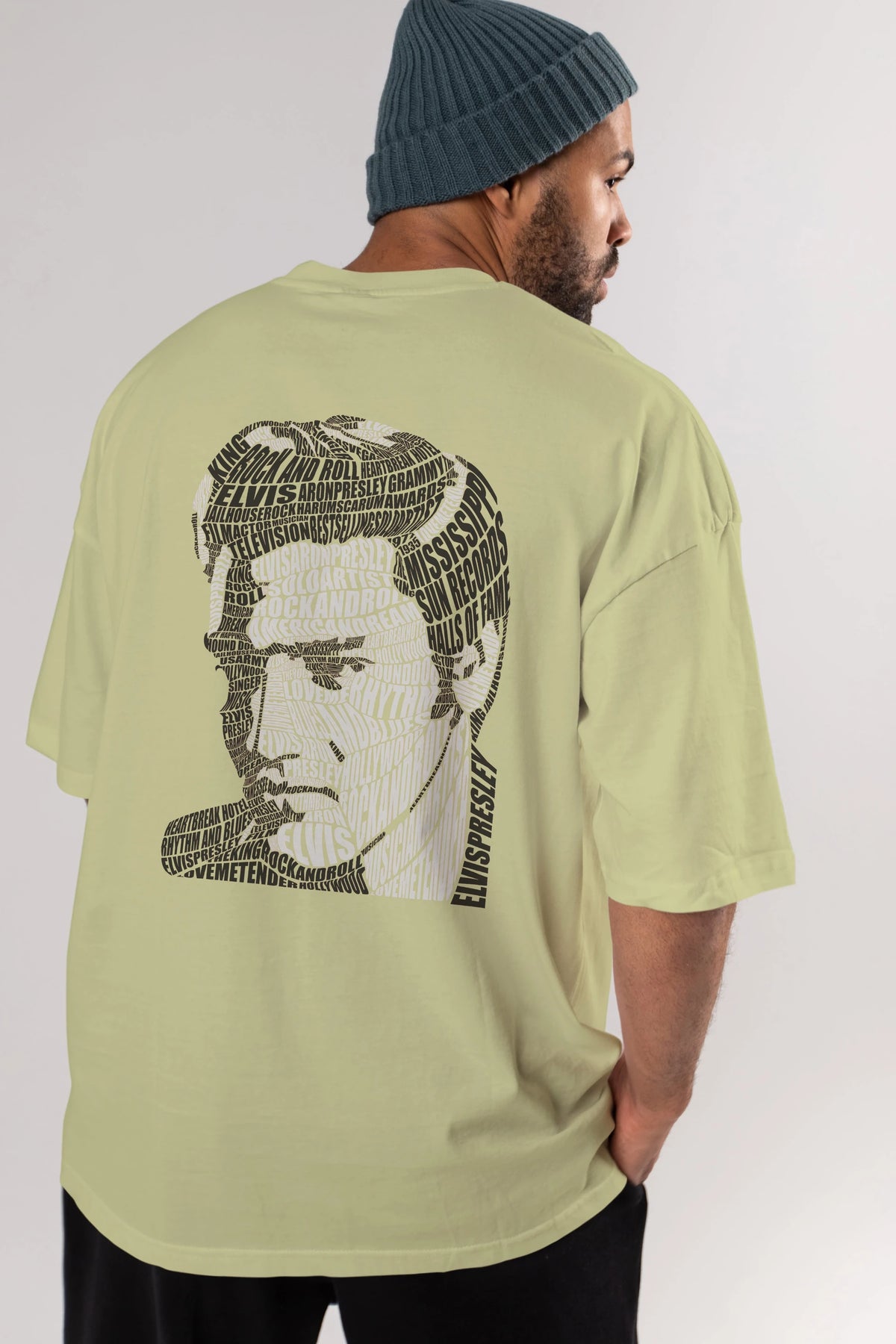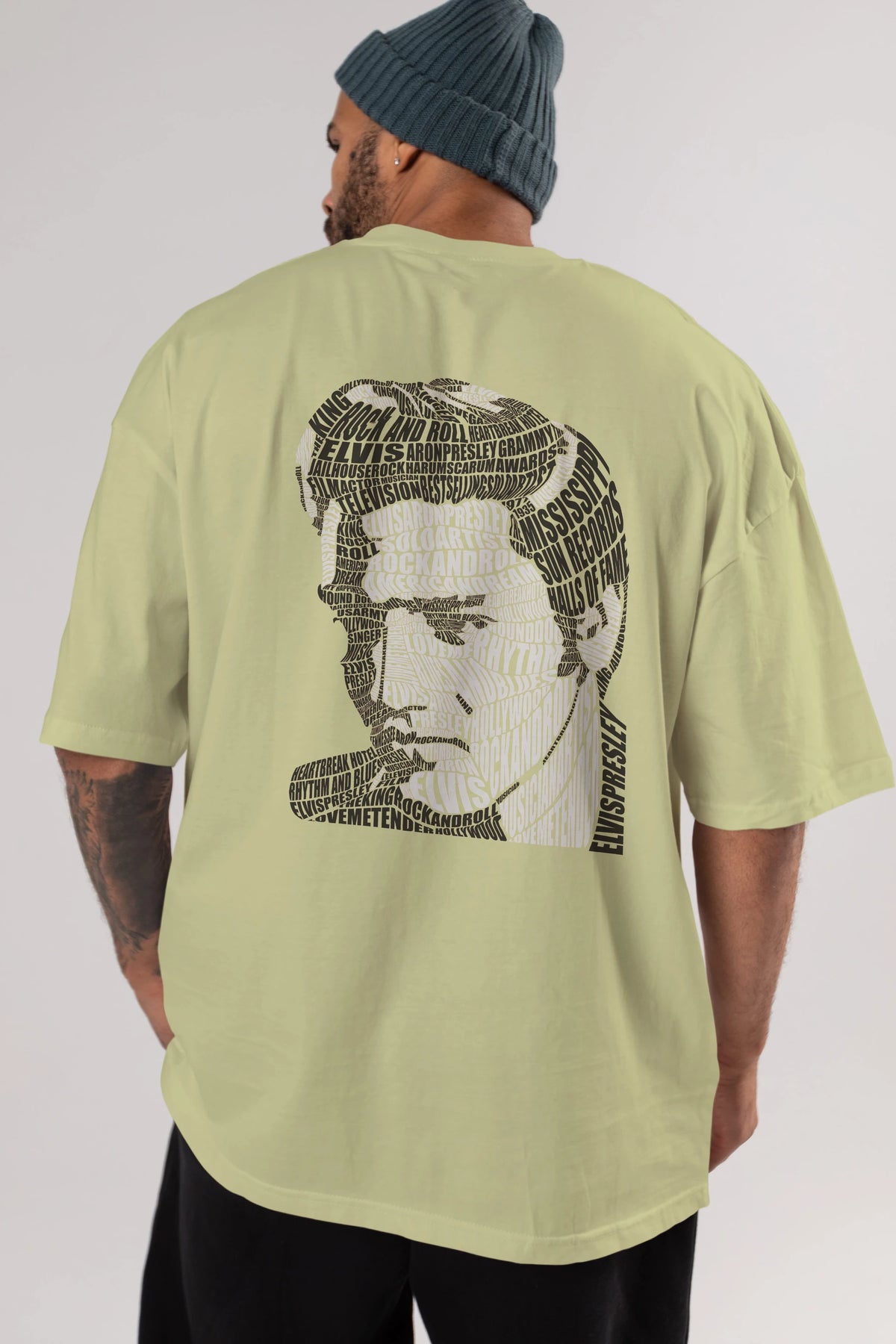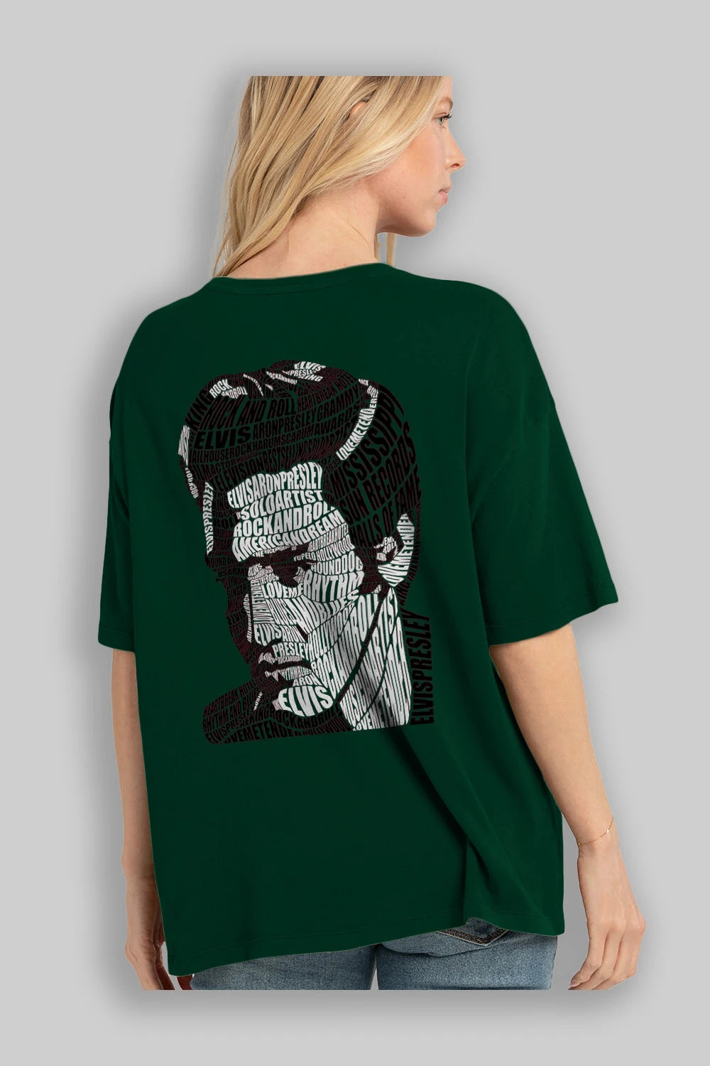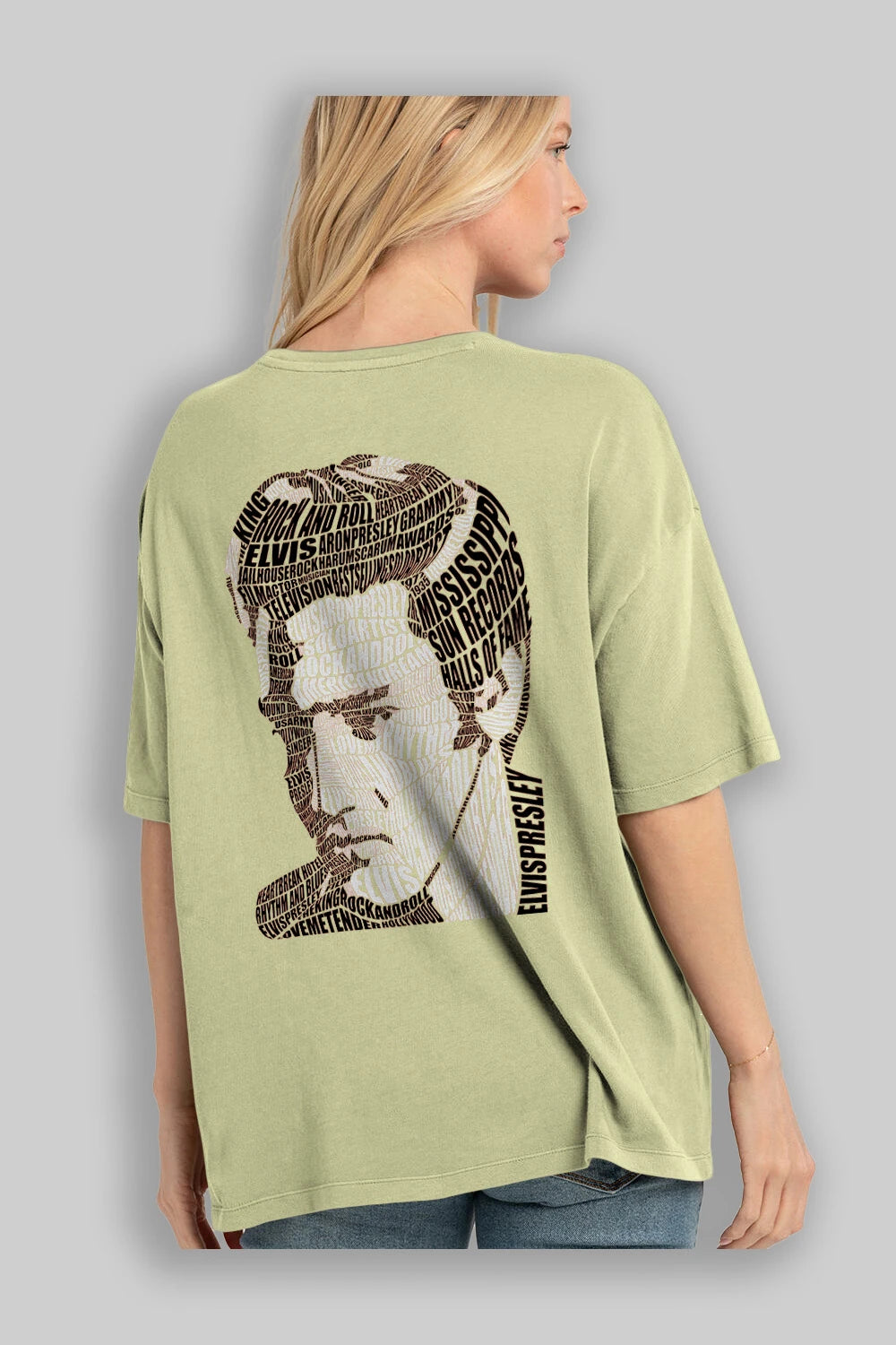 Elvis Presley Calligram Arka Baskılı Oversize t-shirt %100 pamuk Erkek Kadın Unisex