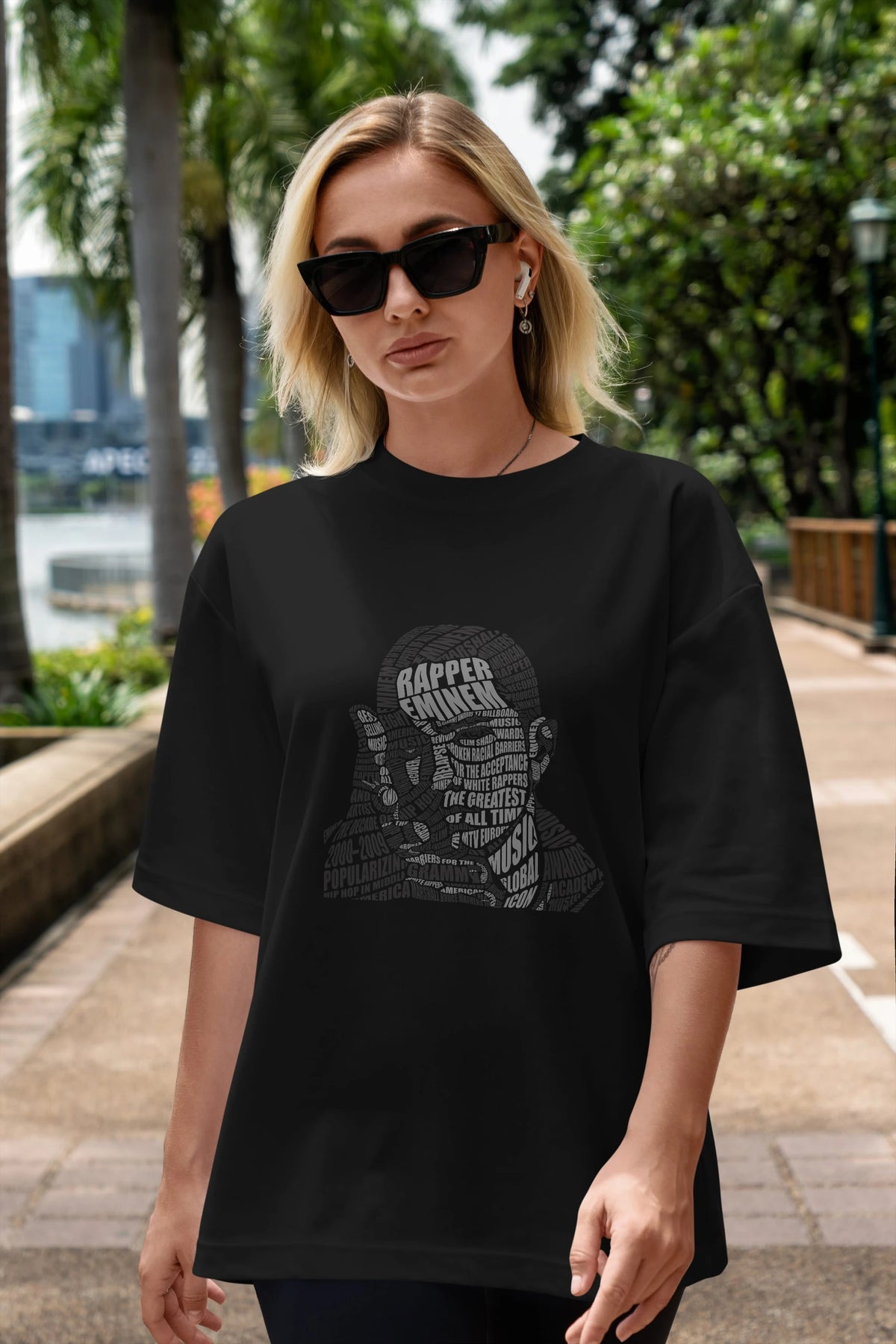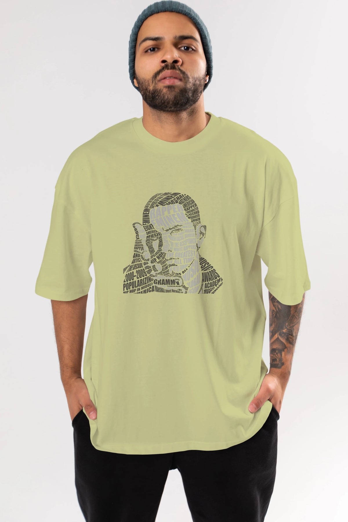 Eminem Calligram Ön Baskılı Oversize t-shirt %100 pamuk Erkek Kadın Unisex