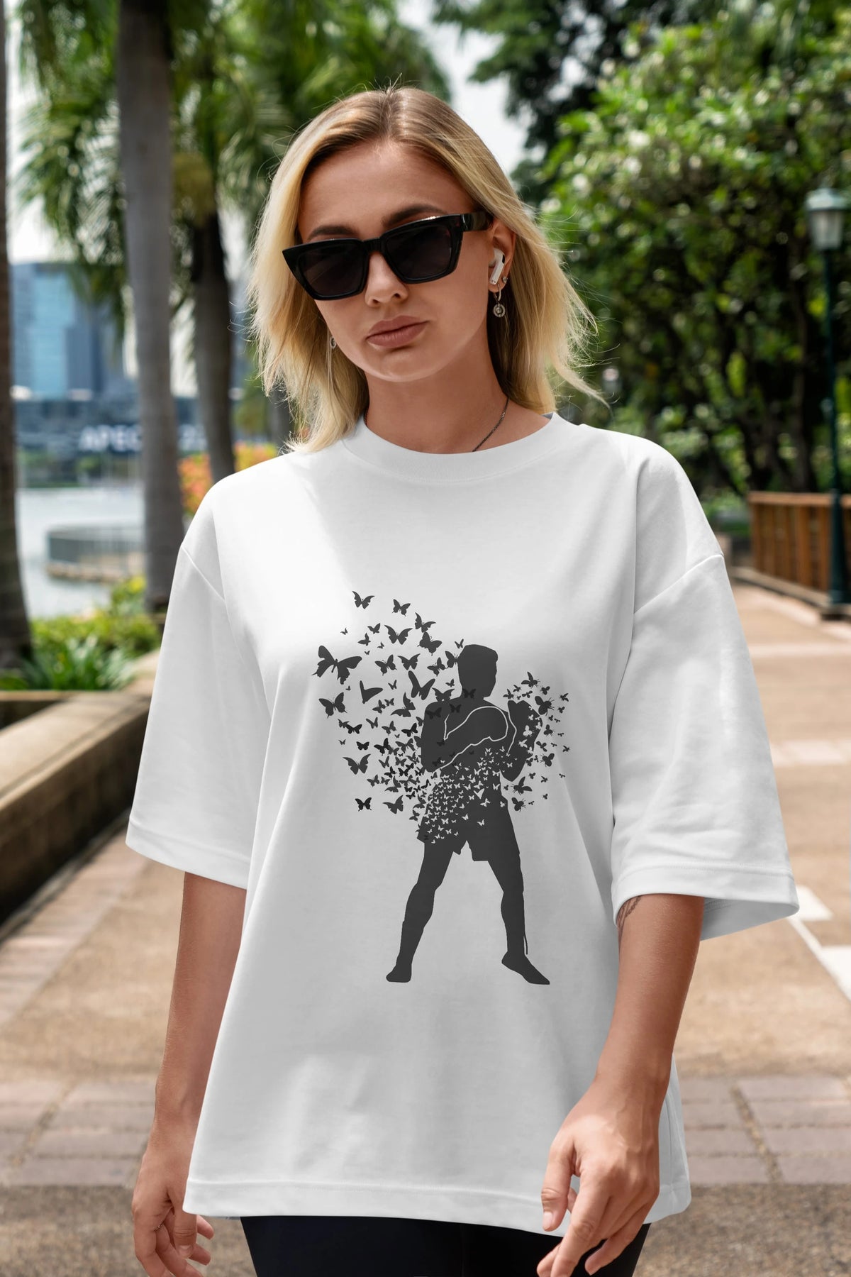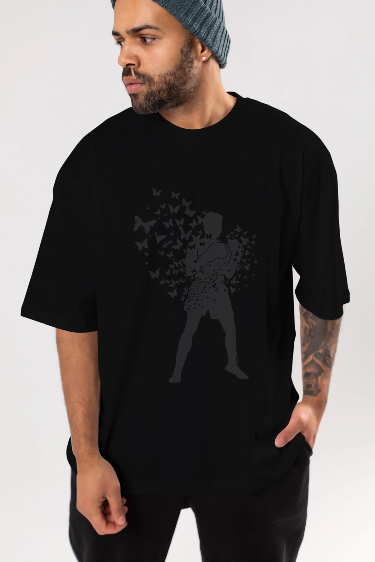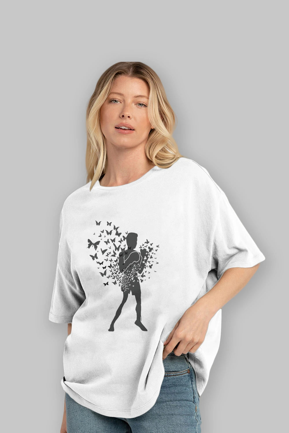 Float Like Butterfly Sting Like Bee Ön Baskılı Oversize t-shirt %100 pamuk Erkek Kadın Unisex